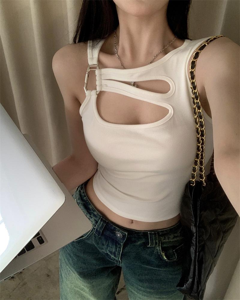 Camisola blanca hueca para mujer, estilo puro de verano, sexy, ajustada, adelgazante, interior, corta, para uso exterior