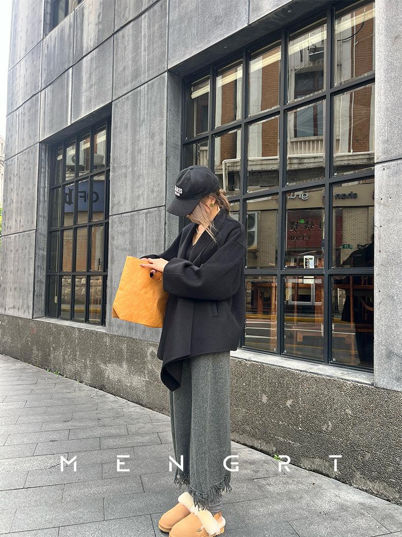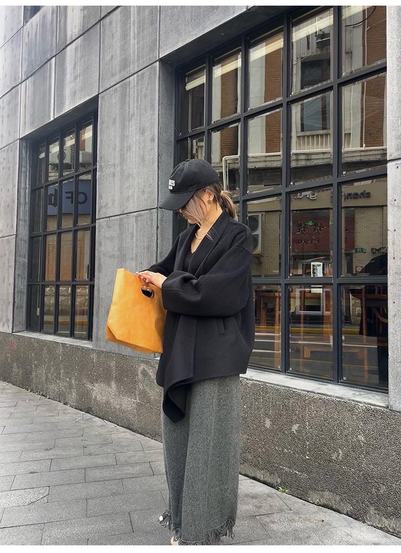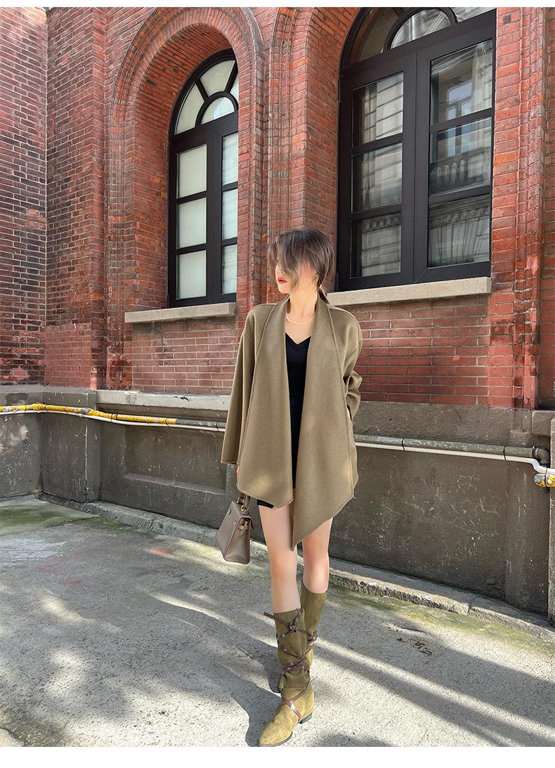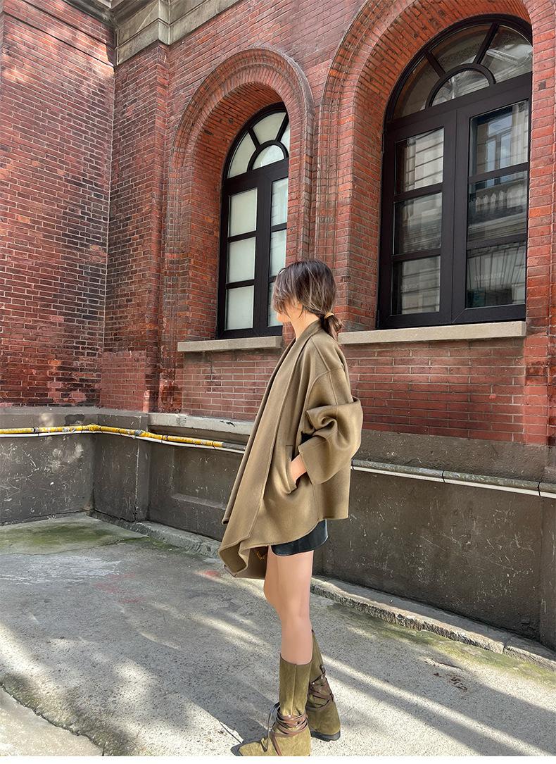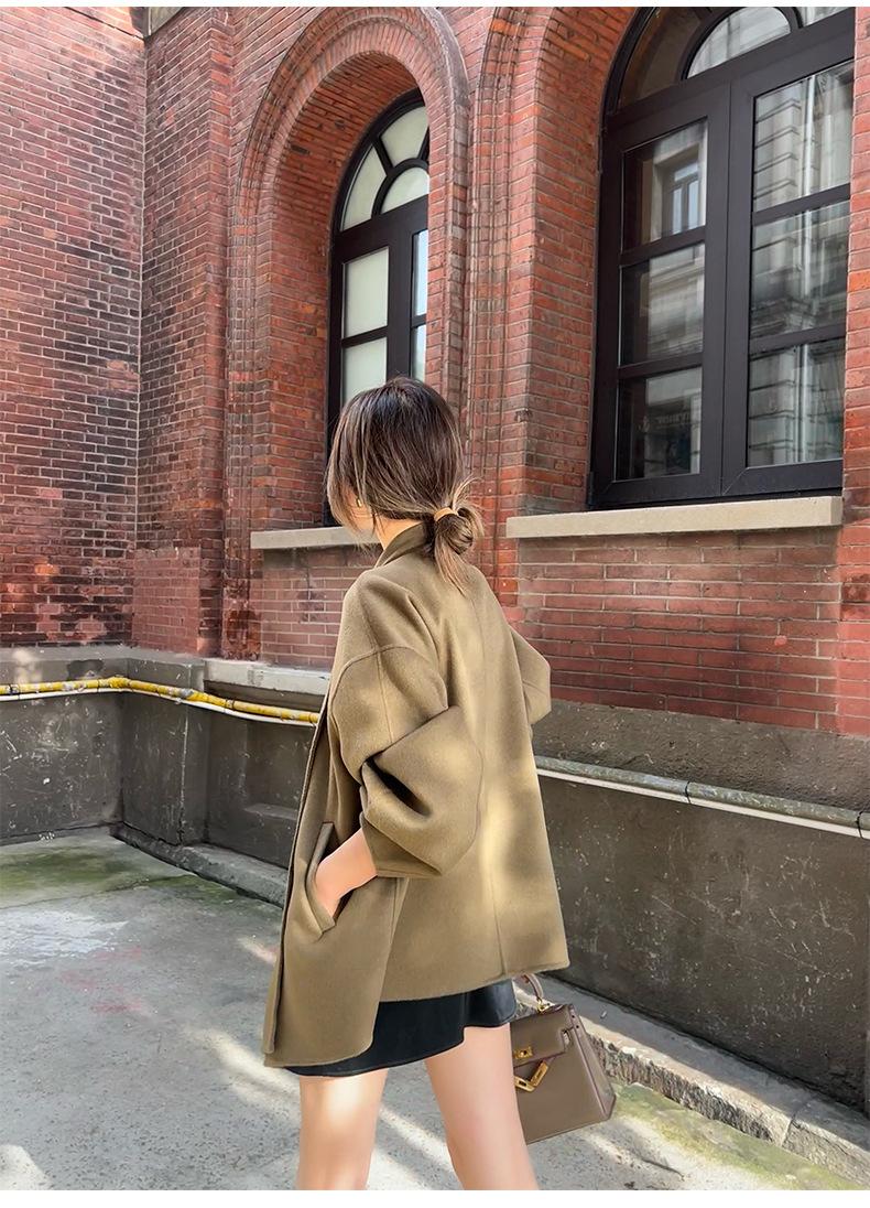 Abrigo de Lana de Doble Cara para Mujer Invierno Nuevo Estilo Coreano Suelto Casual Corto Grueso Abrigo de Lana para Petite Combinable