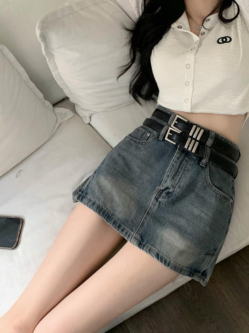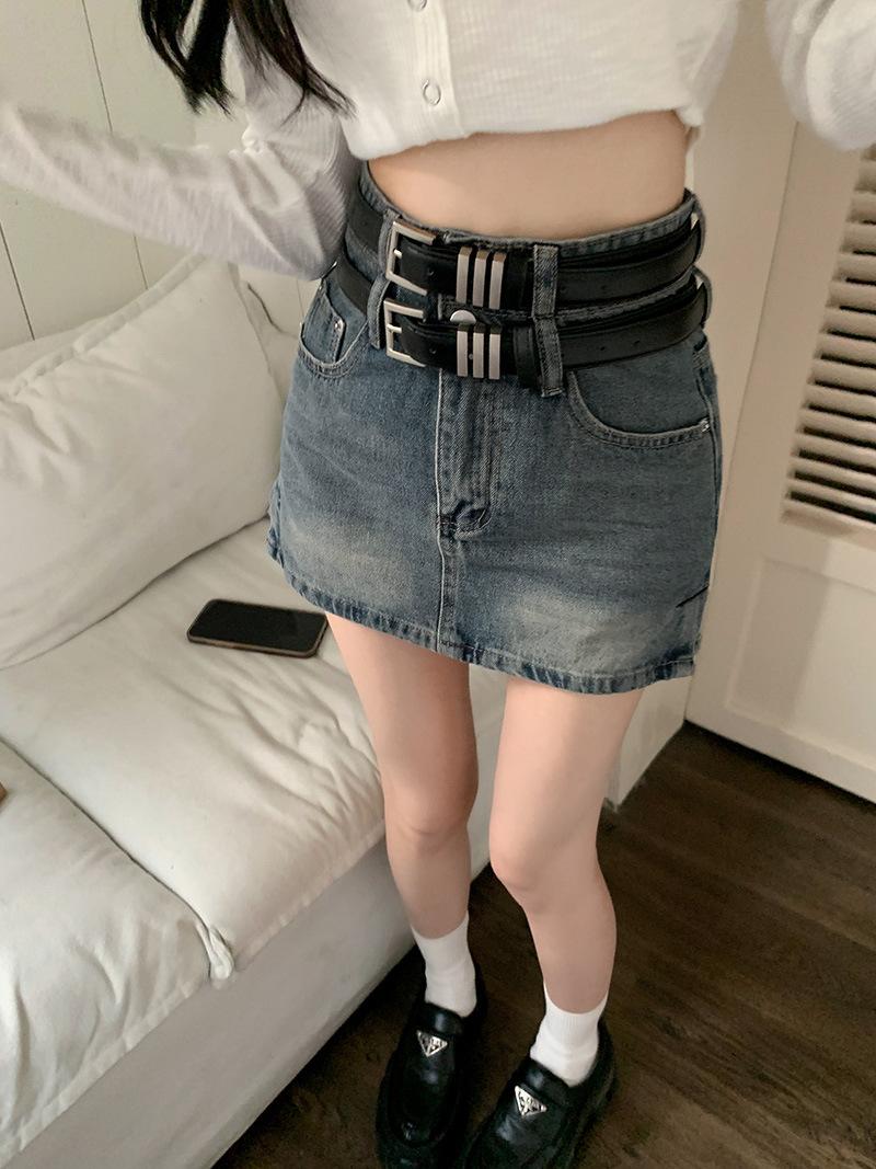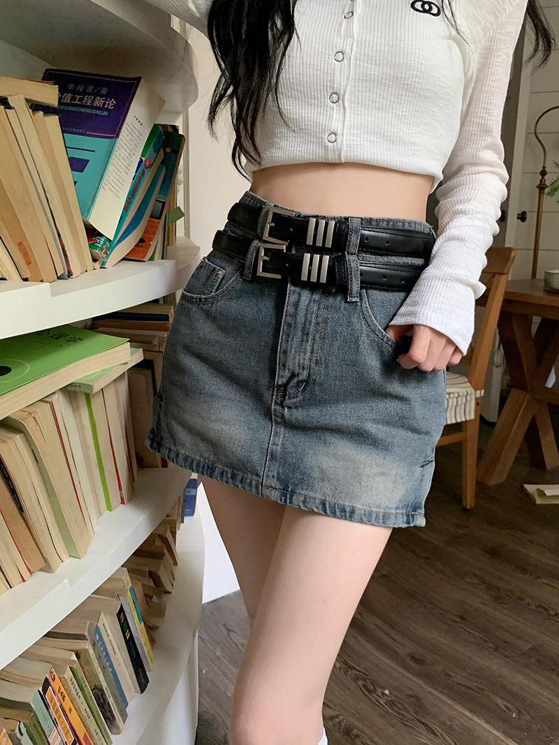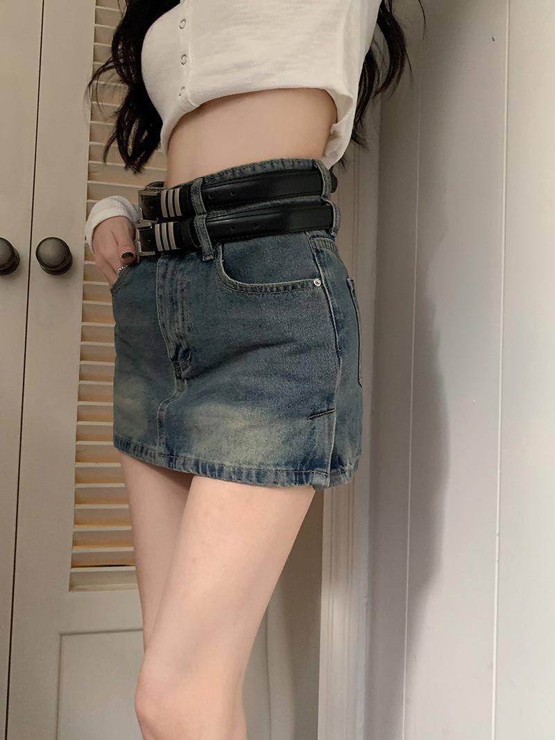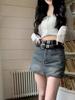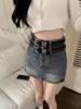 2024 nueva falda corta de mezclilla combinable cinturón ajustable verano para mujer retro ins vaina A línea anti-exposición falda corta