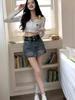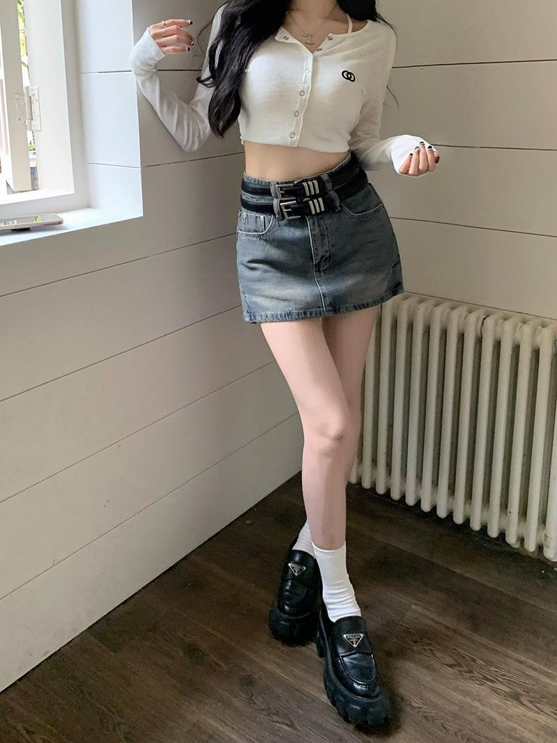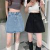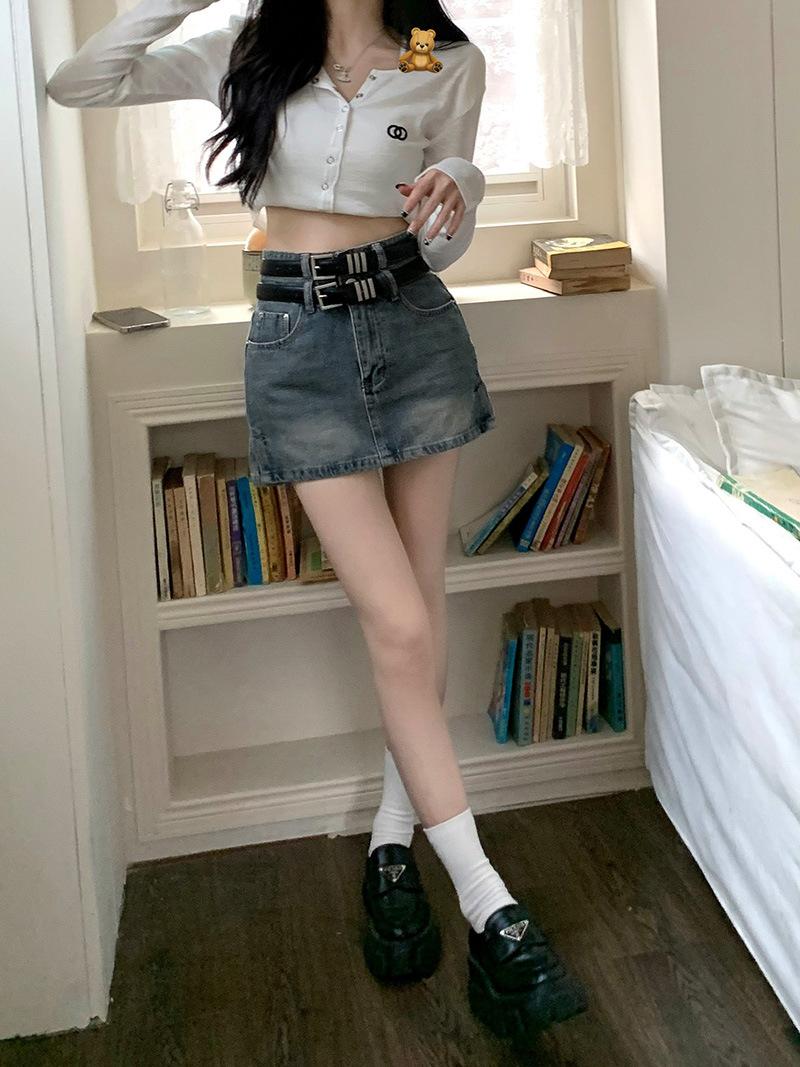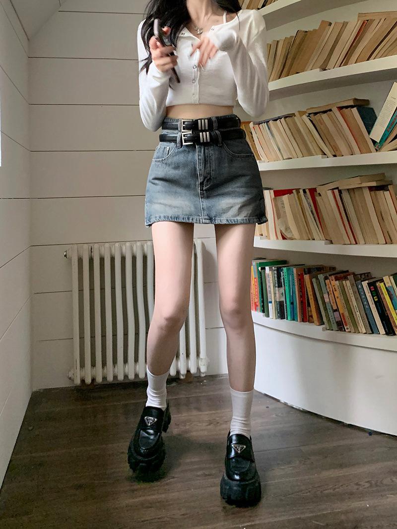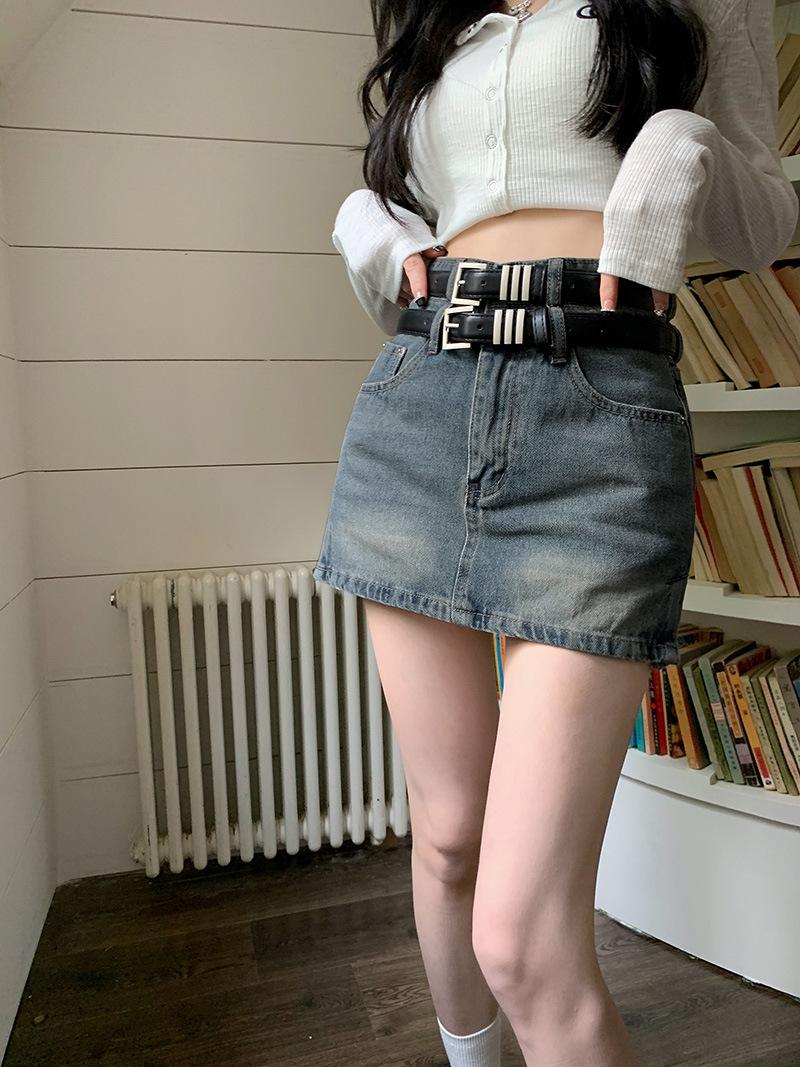 2024 nueva falda corta de mezclilla combinable cinturón ajustable verano para mujer retro ins vaina A línea anti-exposición falda corta