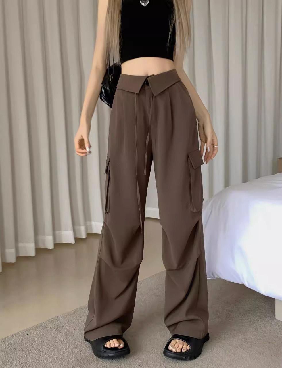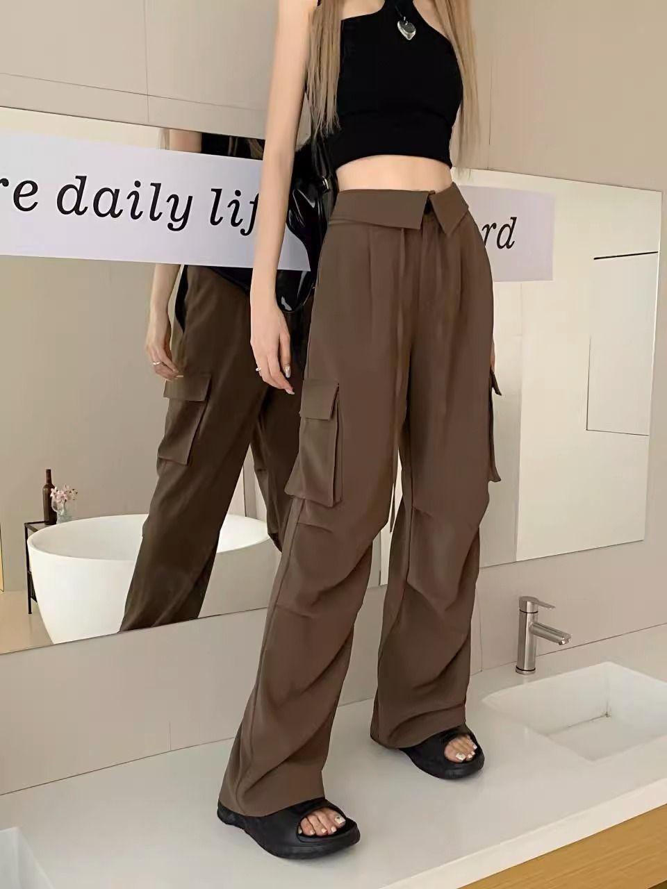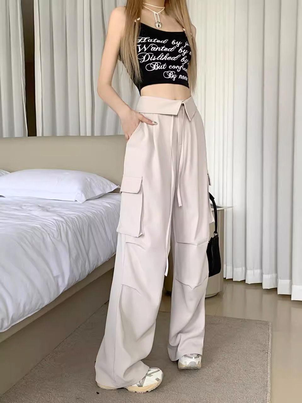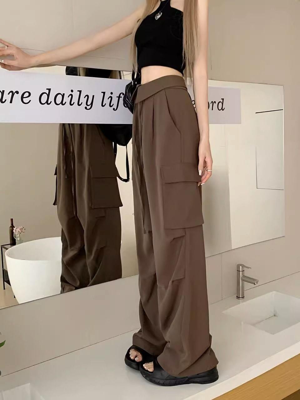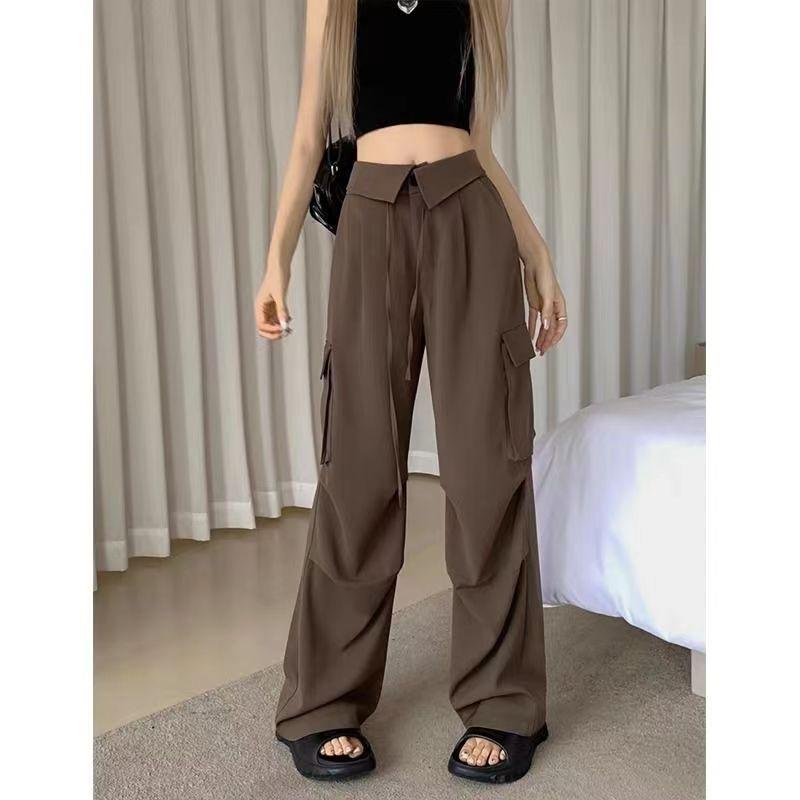 Mono retro multibolsillos de nicho para mujer, nuevo diseño 2023, pantalones casuales holgados de pierna ancha