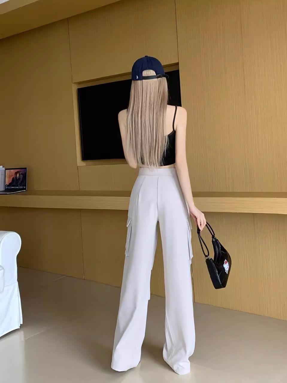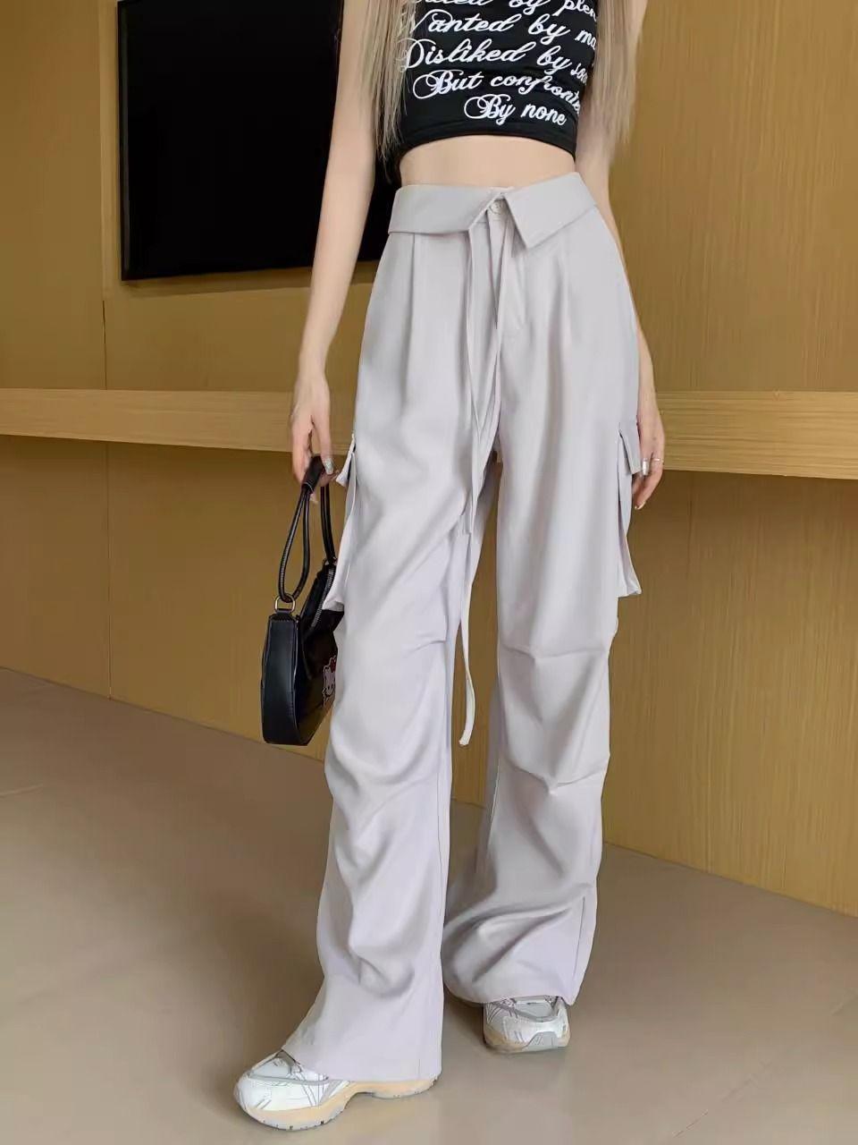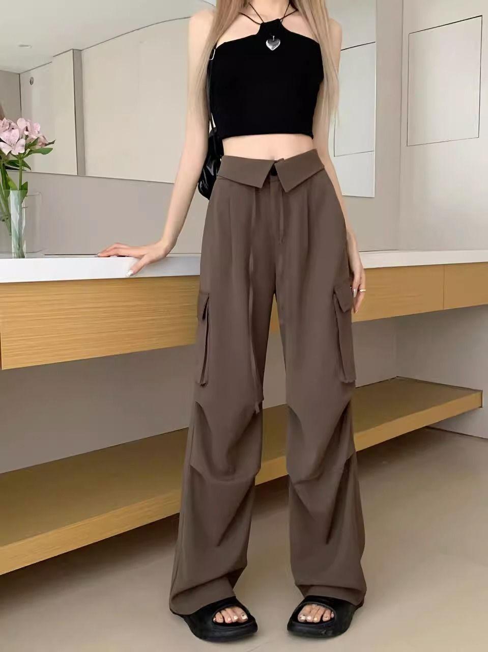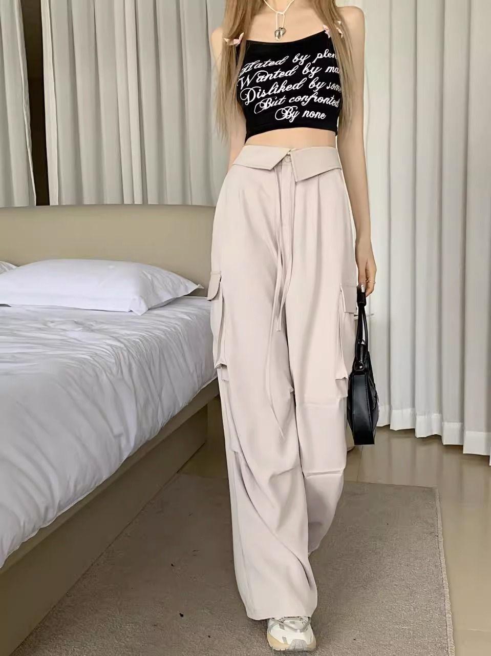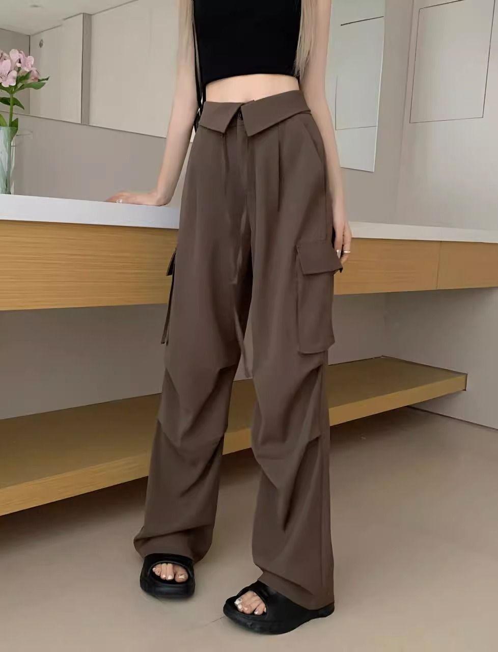 Mono retro multibolsillos de nicho para mujer, nuevo diseño 2023, pantalones casuales holgados de pierna ancha