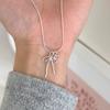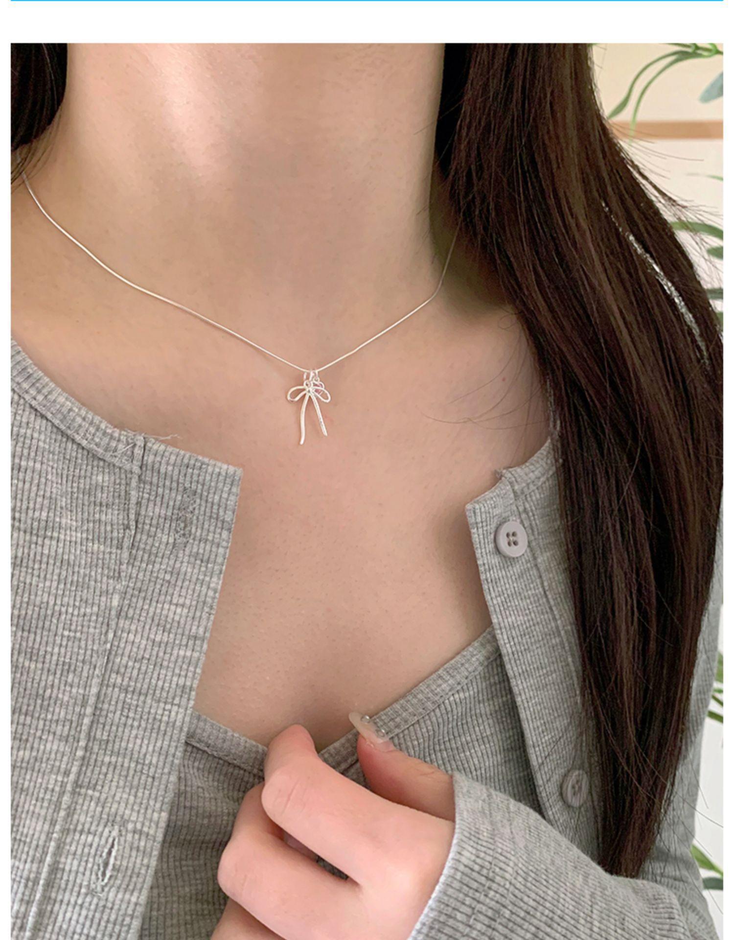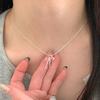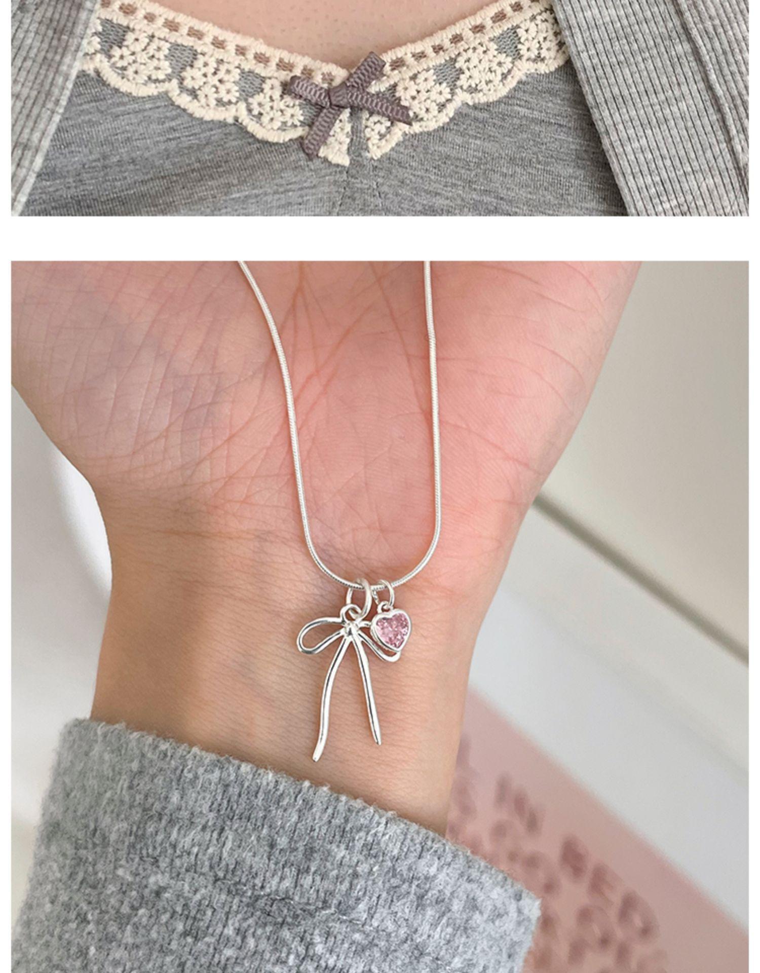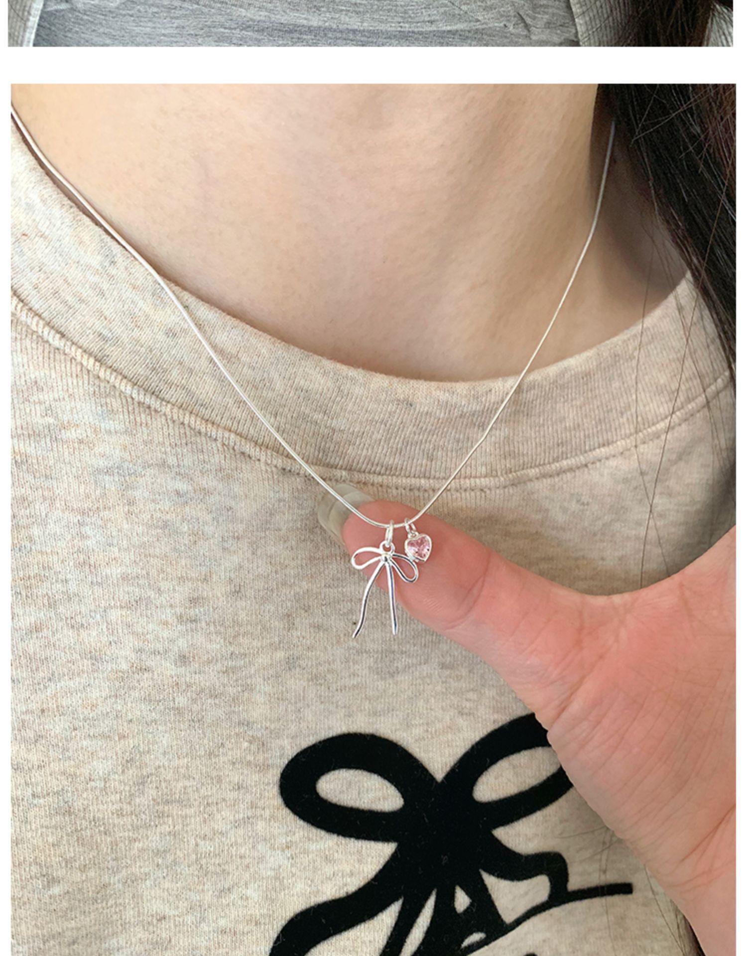 Collar de amor rosa para mujer con lazo geométrico dulce S925, cadena de clavícula chapada en plata, cadena de cuello de moda
