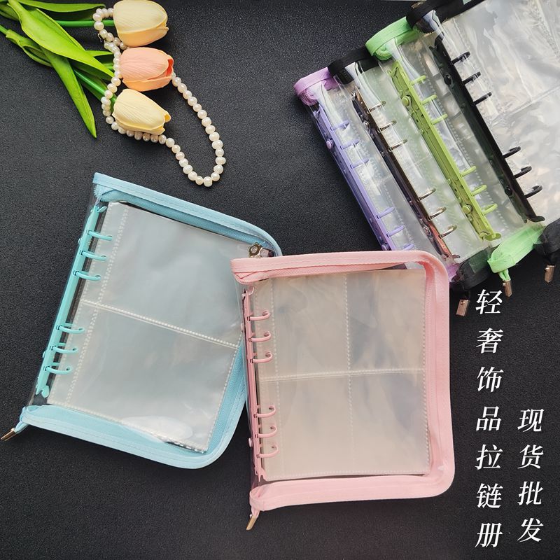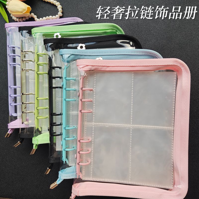 Libro de Almacenamiento con Cremallera de Alta Gama para Aretes, Caja de Almacenamiento Portátil Transparente de Gran Capacidad, Joyero Multicapa, Bolsa para Joyas