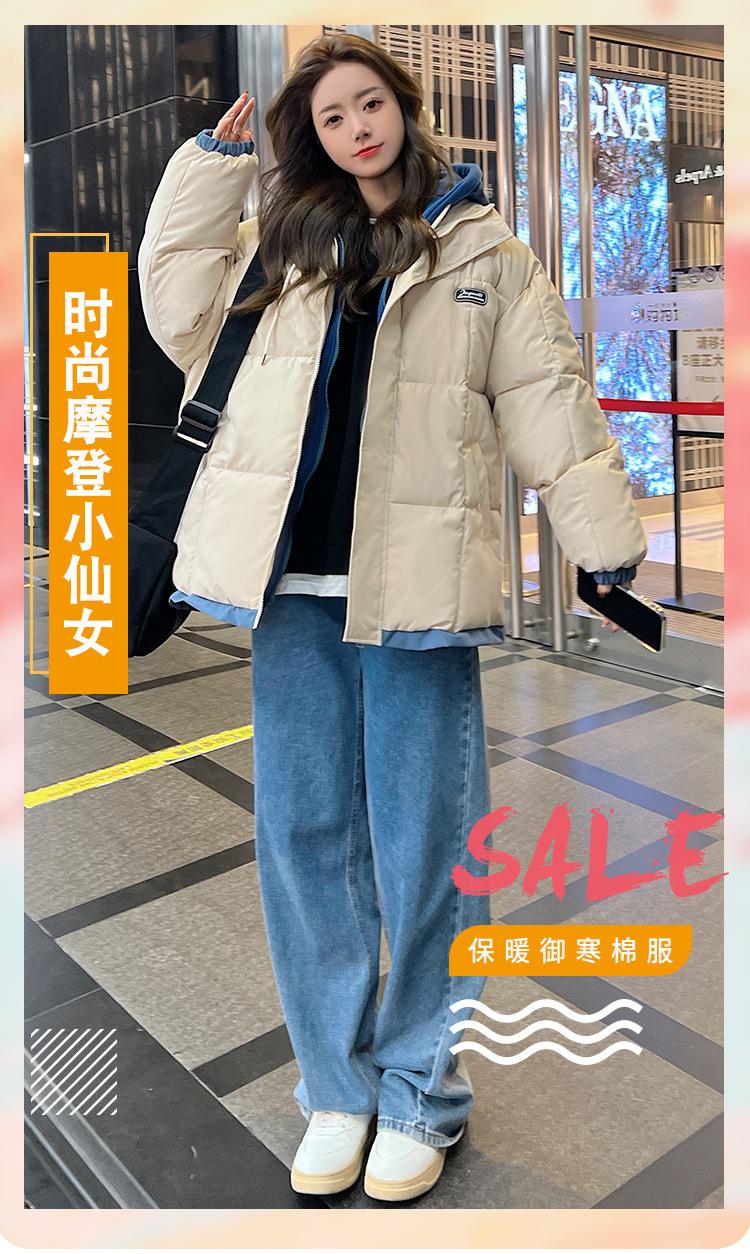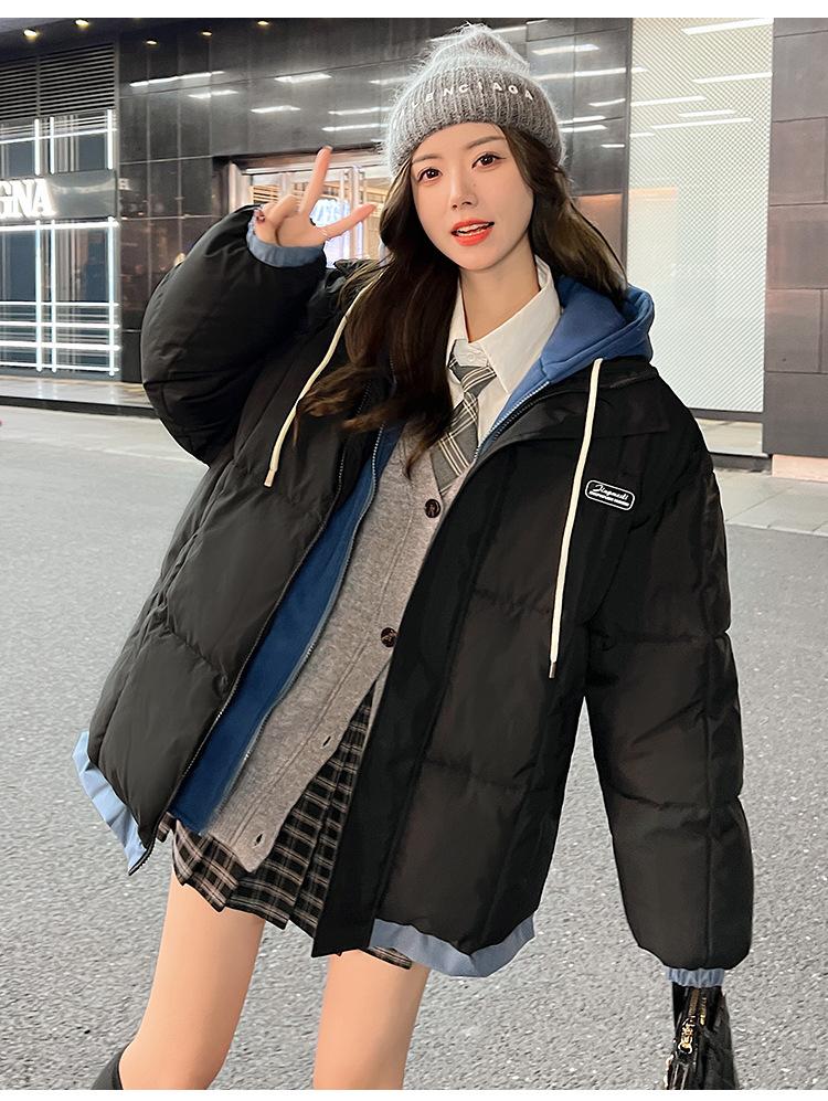 Sudadera corta con capucha y costuras gruesas para mujer, abrigo informal de algodón acolchado de dos piezas, abrigo de moda, novedad de invierno de 2024