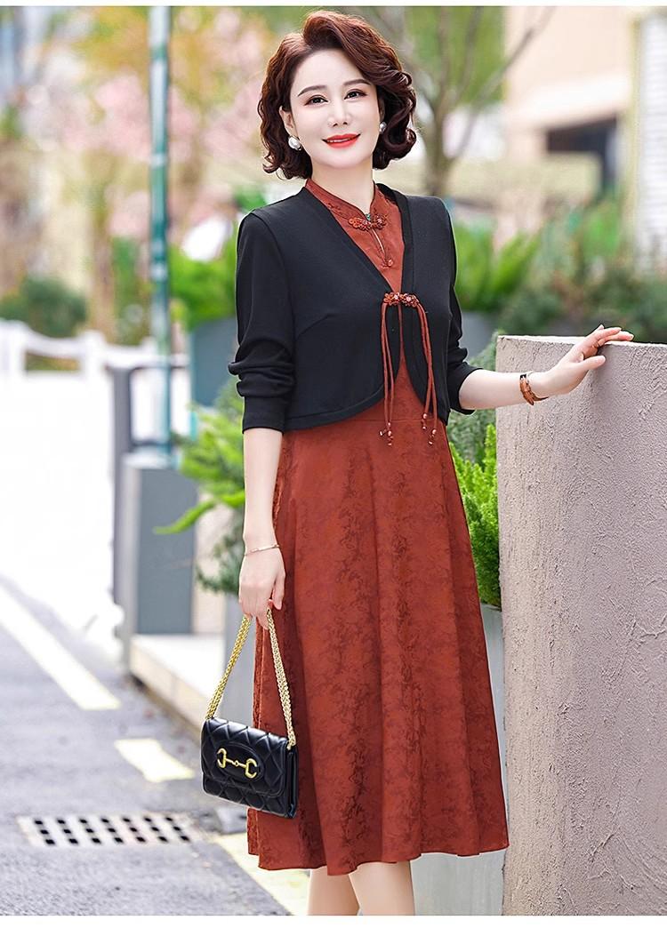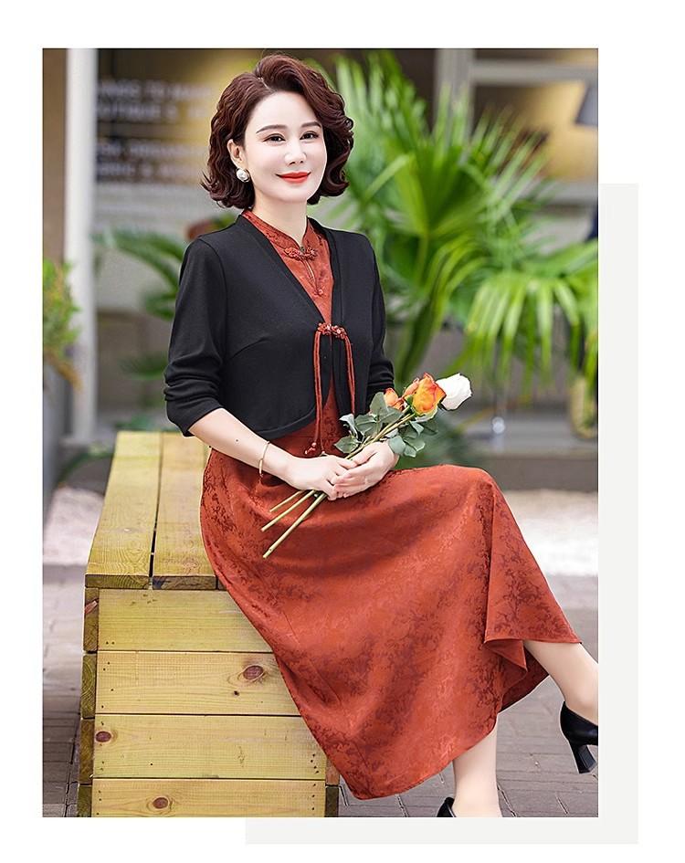 Madre de mediana edad primavera elegante nuevo estilo chino traje falda nuevo vestido de moda para mujeres de mediana edad conjunto de dos piezas