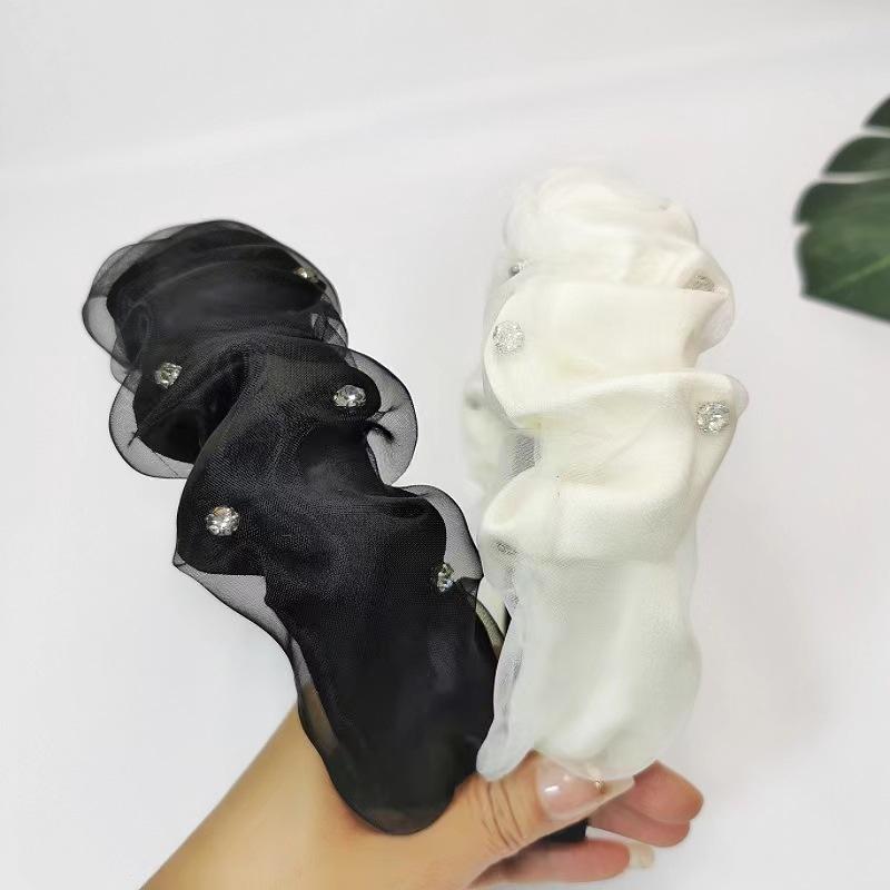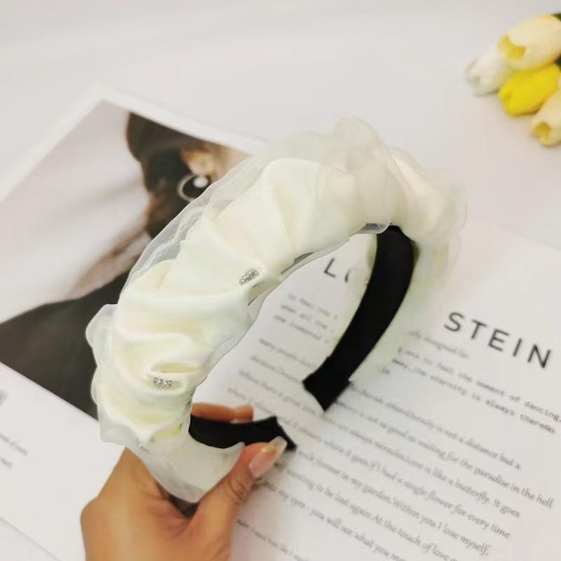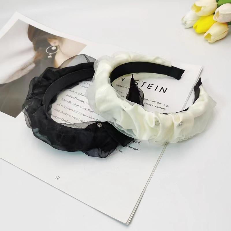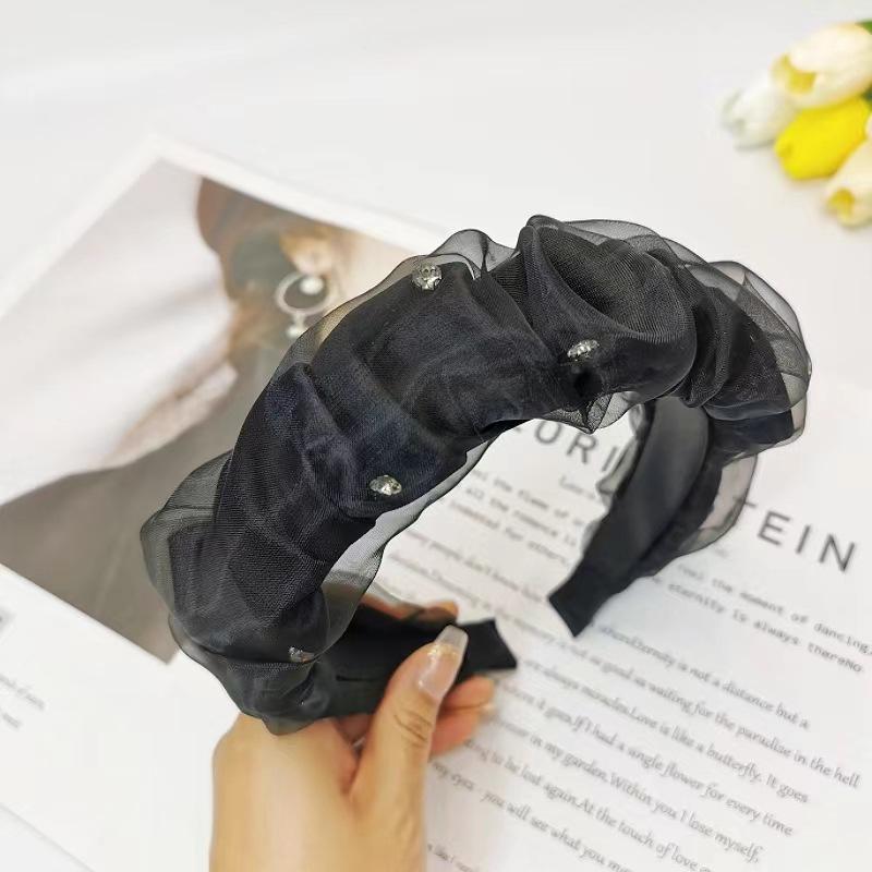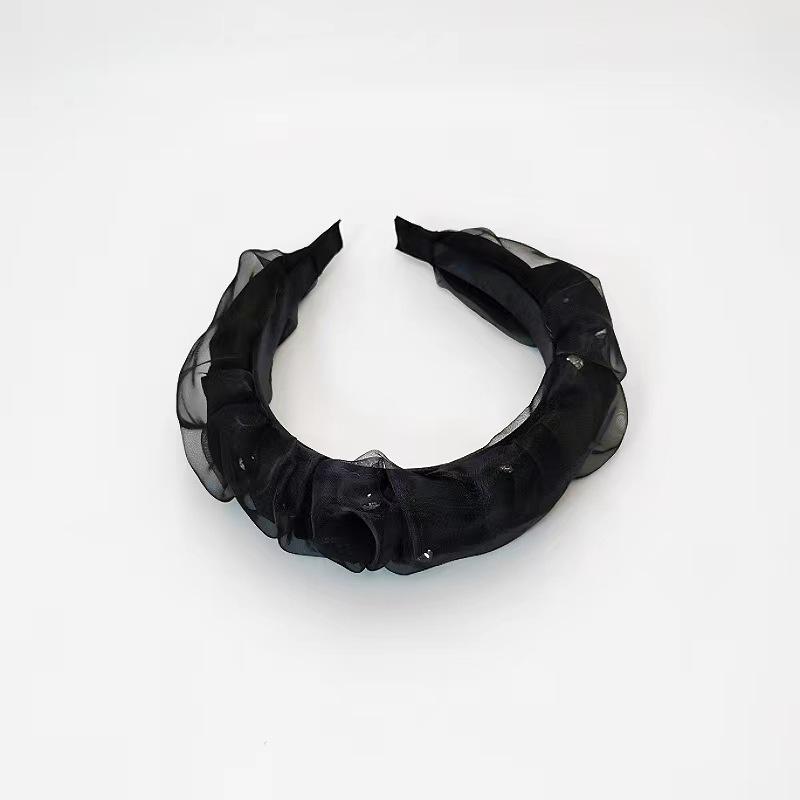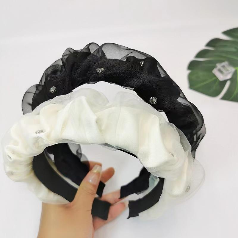Diadema Diamante Superior Craneal Alto de Hilo Puff Plisado Negro Nuevo 2024 Tocado de Celebridad Cibernética de Color Sólido de Alta Gama Diadema para Mujer