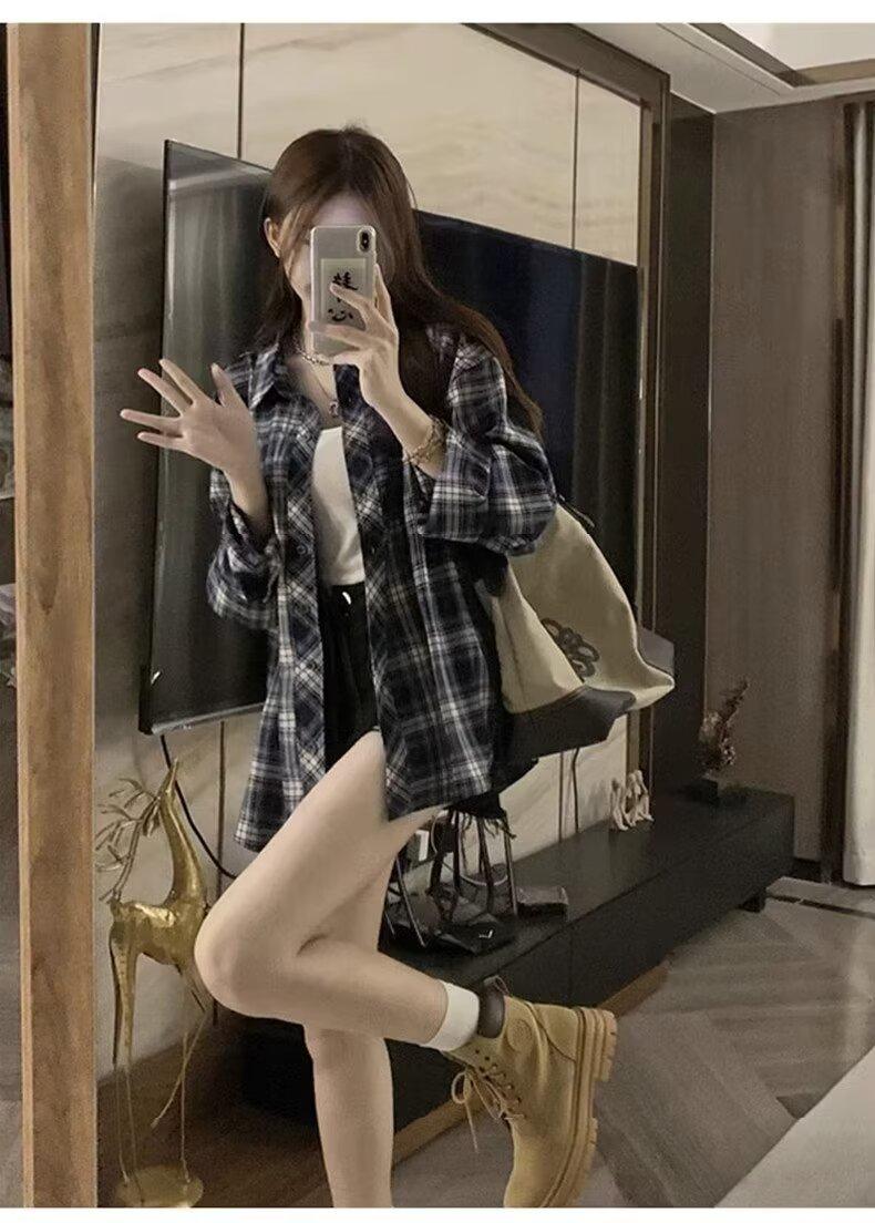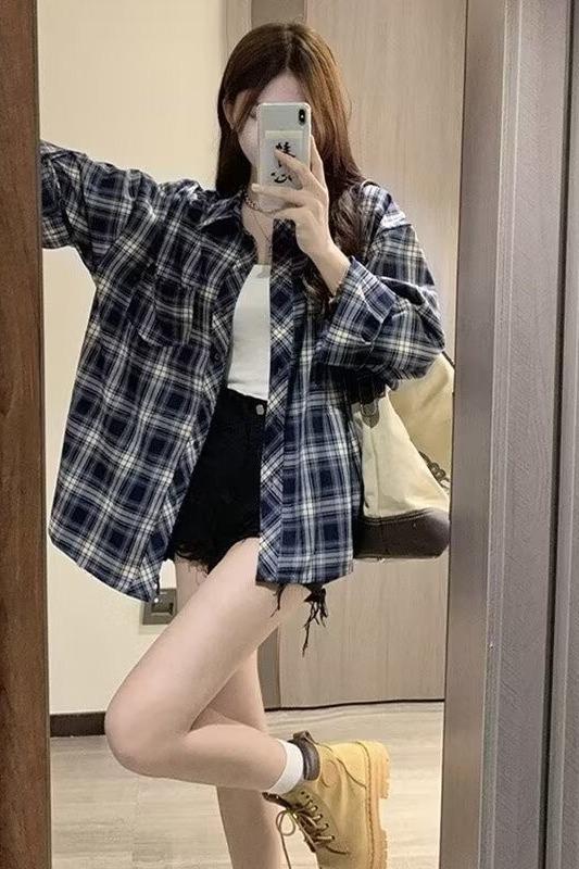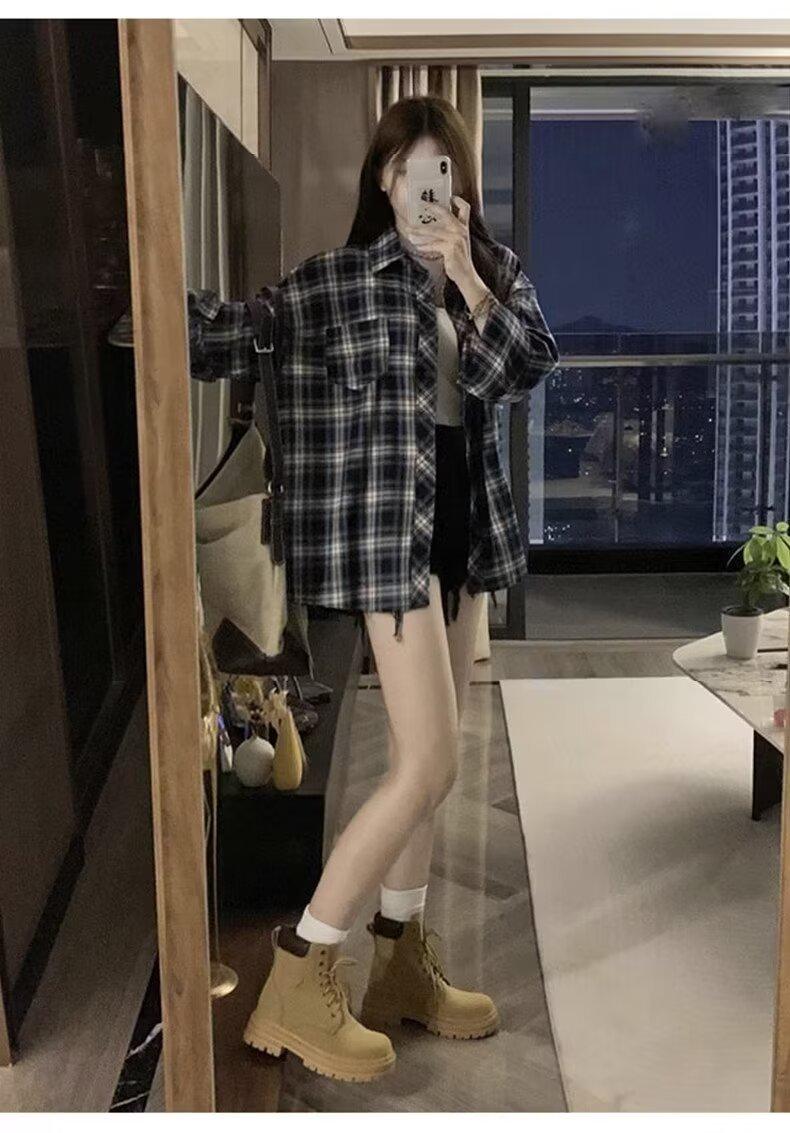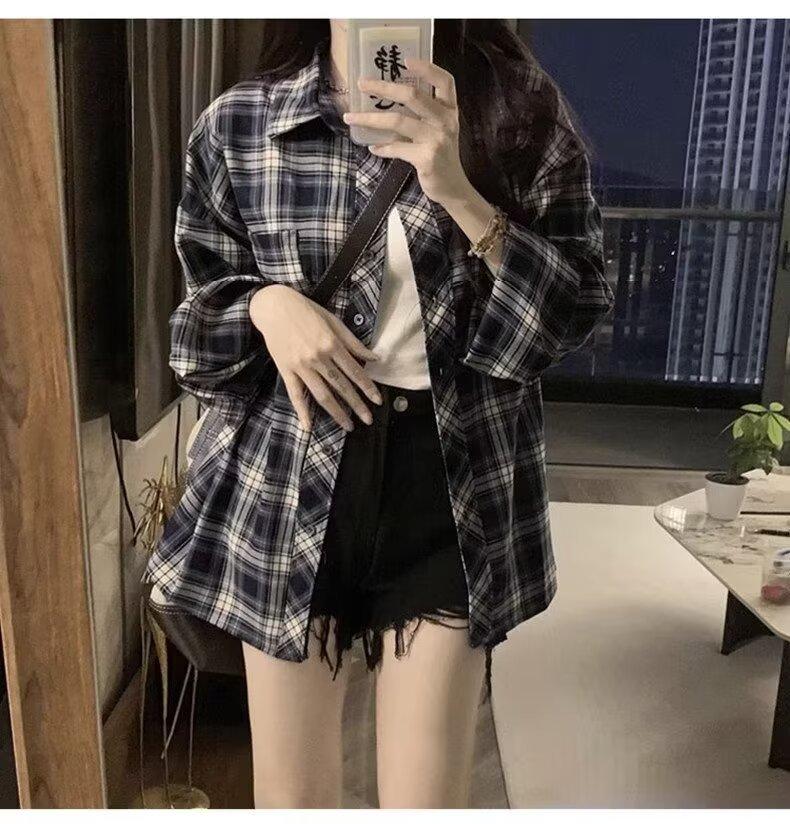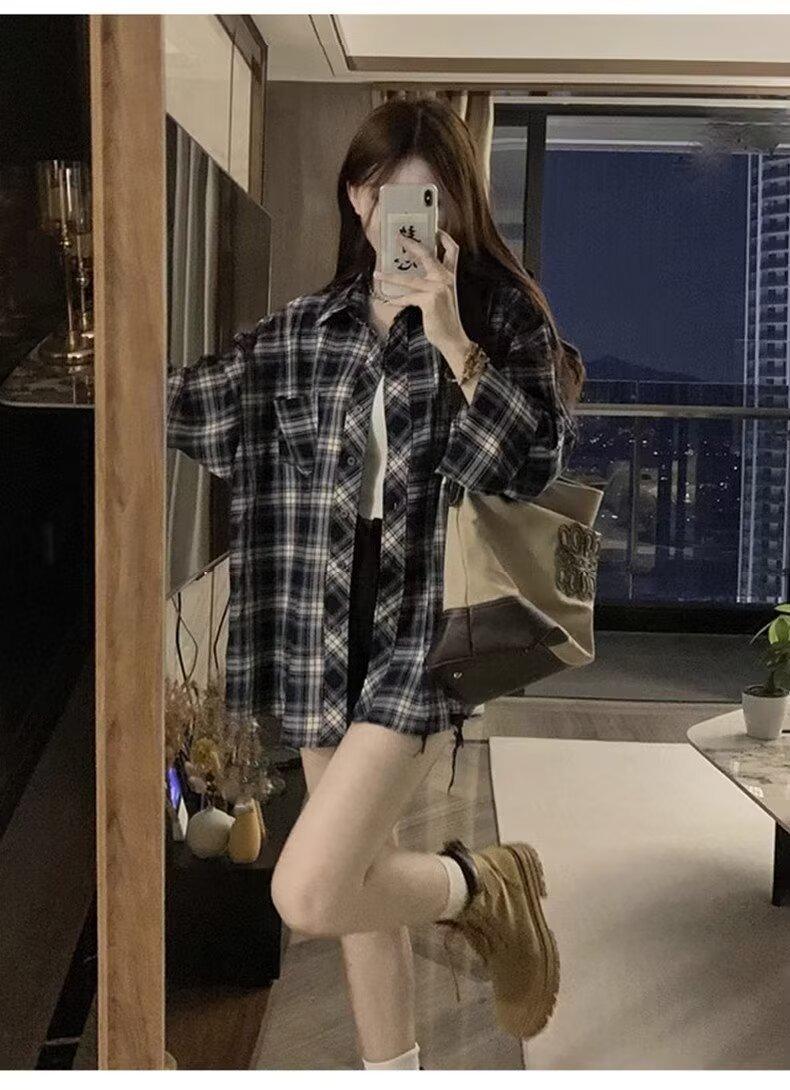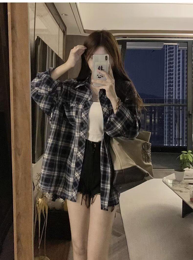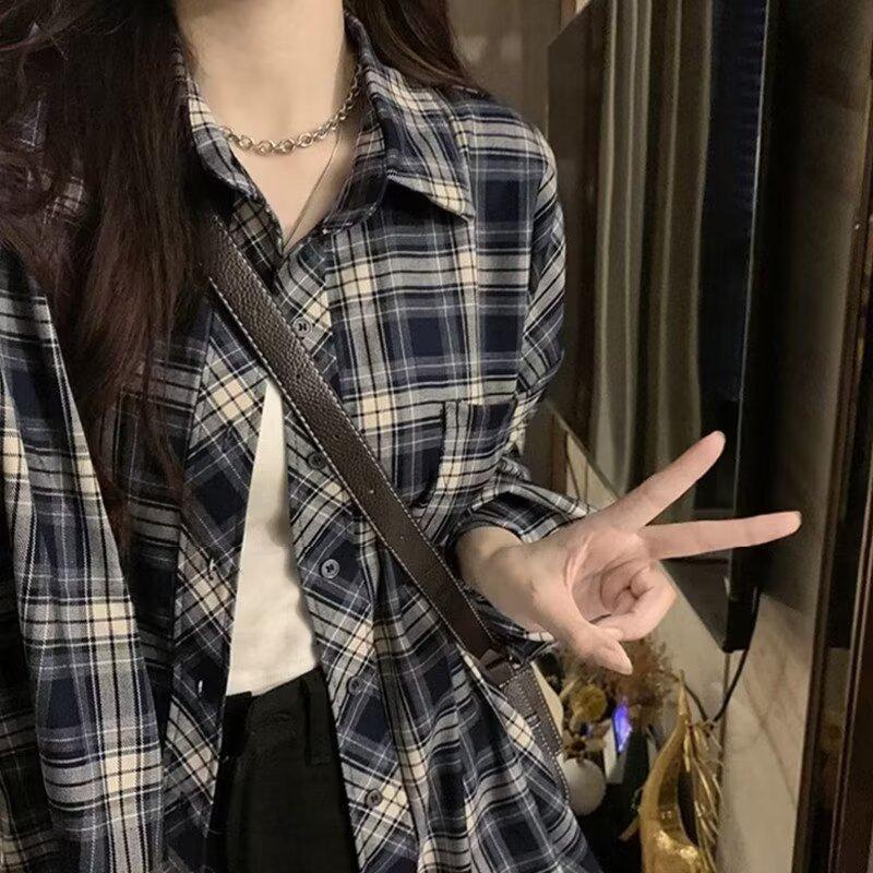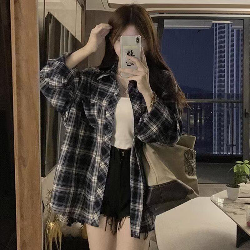 Camisa a cuadros retro informal estilo Hong Kong para mujer, nuevo diseño de verano 2024, abrigo de nicho Sense, primavera y verano