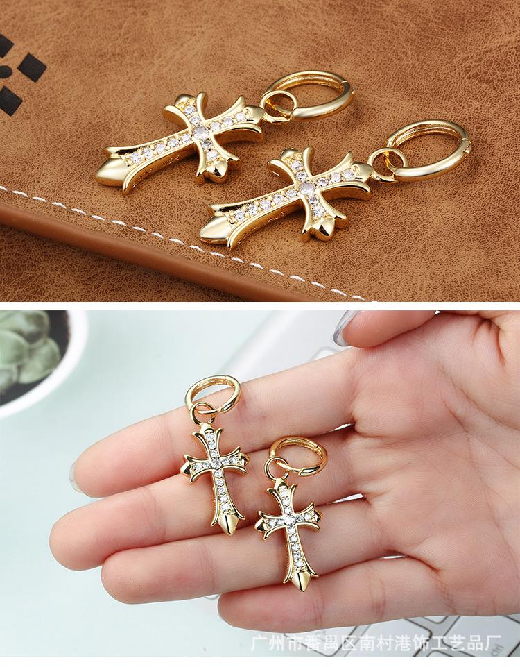 Suministro transfronterizo de Europa y Estados Unidos, pendientes de diamantes en forma de cruz caliente, pendientes de botón con forma de cuervo, al por mayor.