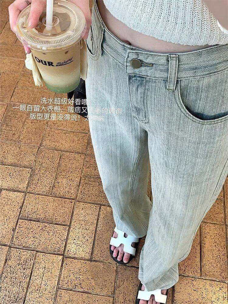 Primavera Nuevo Estilo Americano Jeans de Pierna Recta para Hombre Marca de Moda Holgados Retro Pantalones