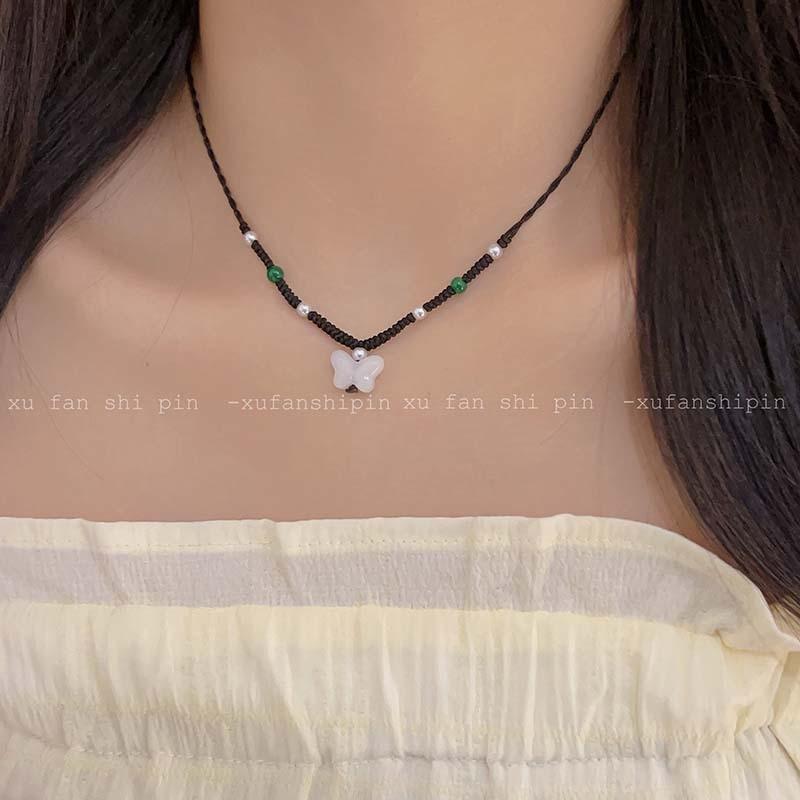 Compra Collar de mariposa de jade de imitación de estilo chino para mujer, nuevo estilo 2024, cadena de clavícula de cuerda blanca de alta calidad hecha a mano, accesorios al por mayor en Joom.pro