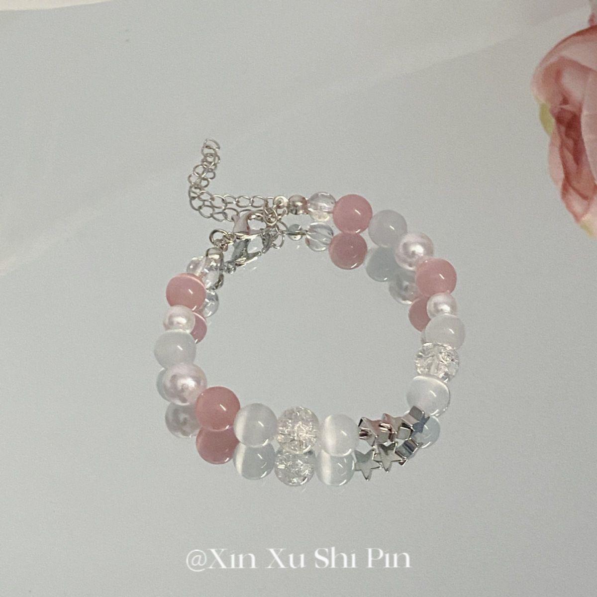 Pink Small Peach Blossom Bracelet, Ye Xi Pink Bracelet, Pink Bow Bracelet, Powder Bead Star Sea Bracelet