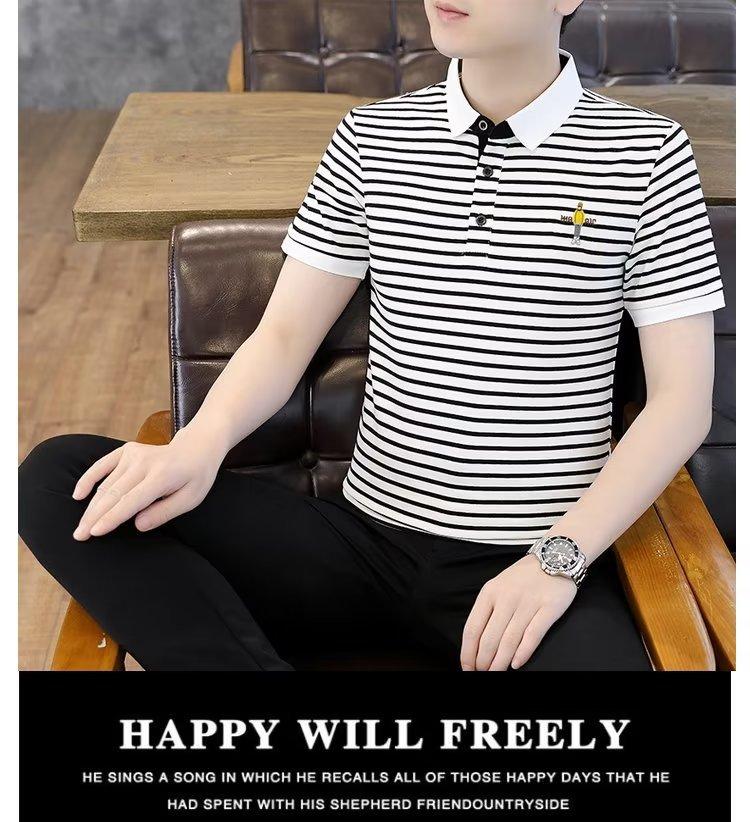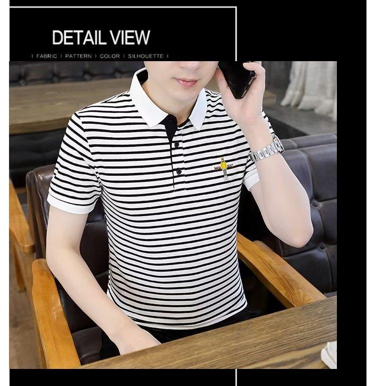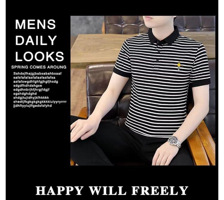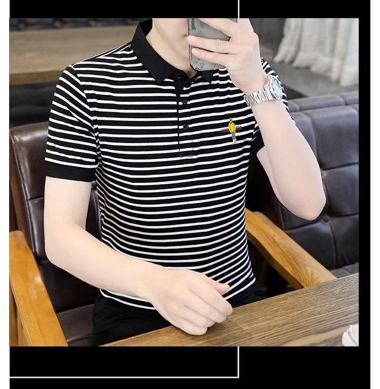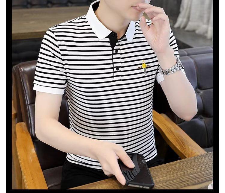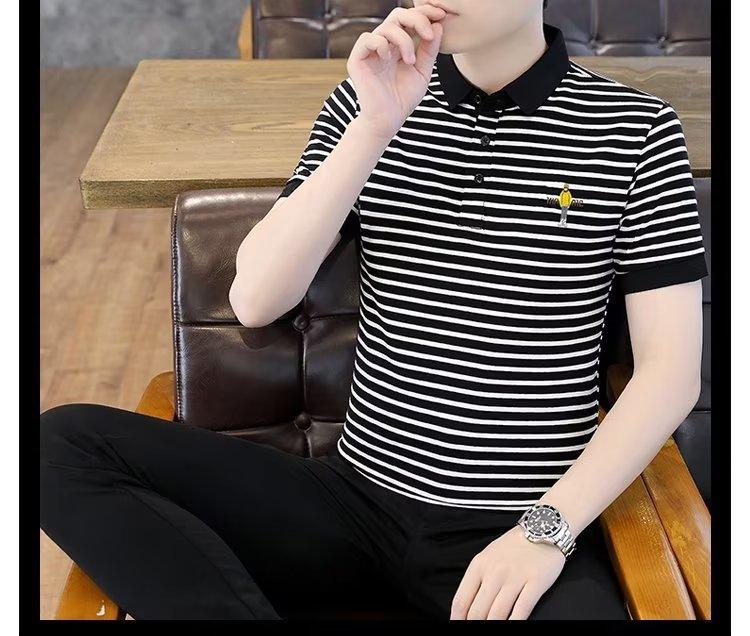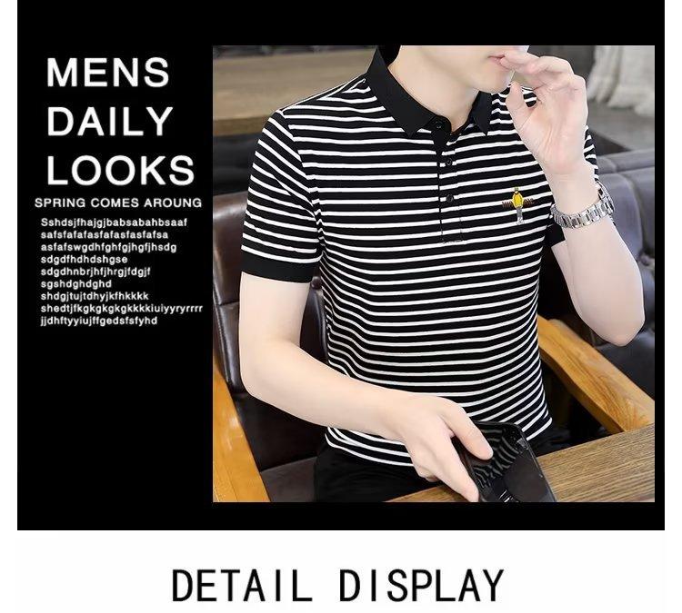 Polo de Verano 2025 Camisa de Manga Corta para Jóvenes Ropa Rayada con Cuello para Hombre Camisa de Hombre con Cuello y Media Manga Camiseta de Moda