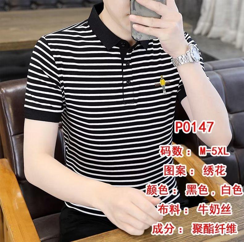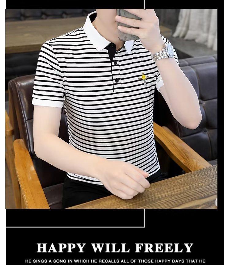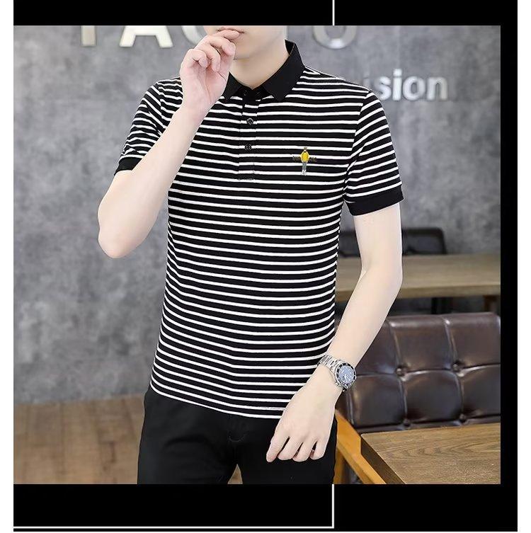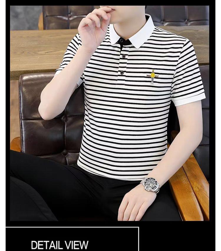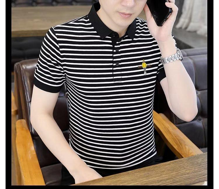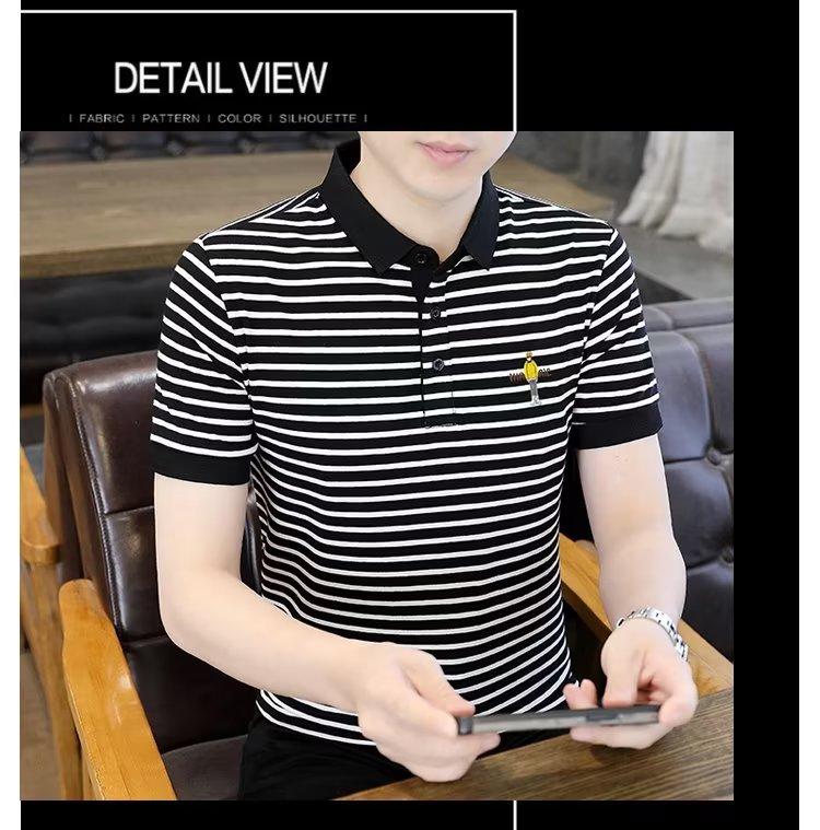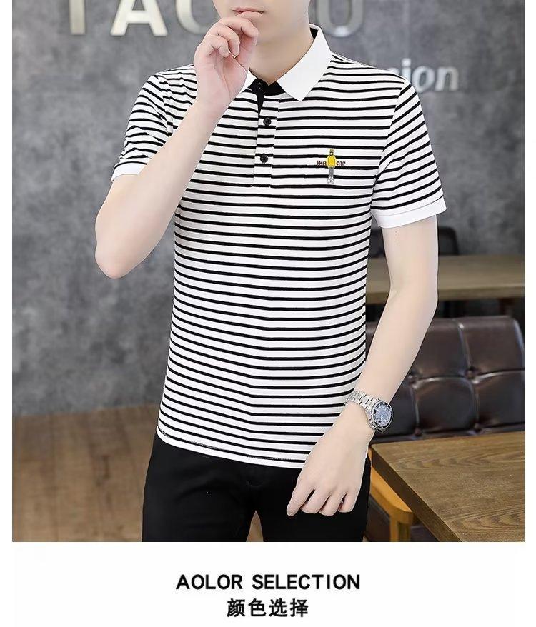 Polo de Verano 2025 Camisa de Manga Corta para Jóvenes Ropa Rayada con Cuello para Hombre Camisa de Hombre con Cuello y Media Manga Camiseta de Moda