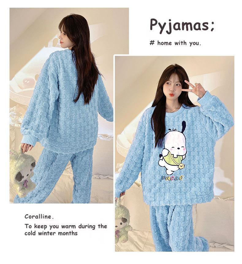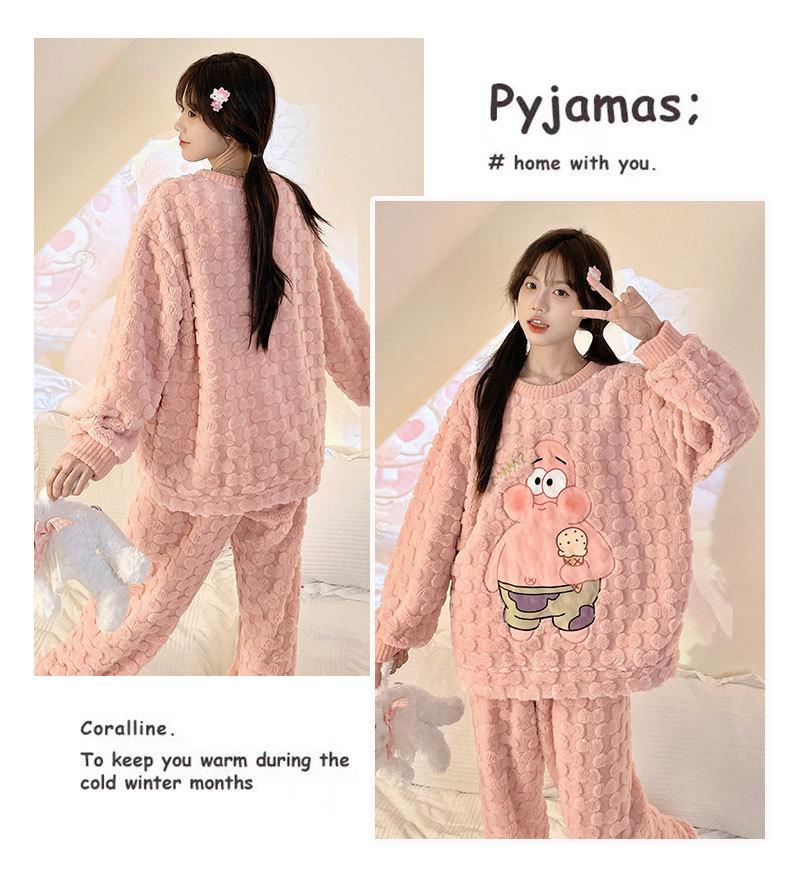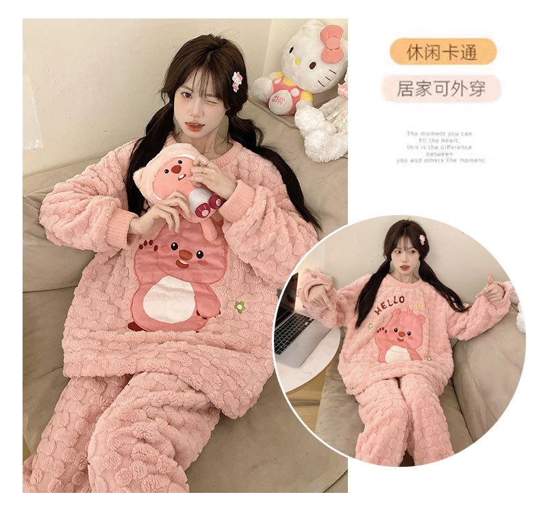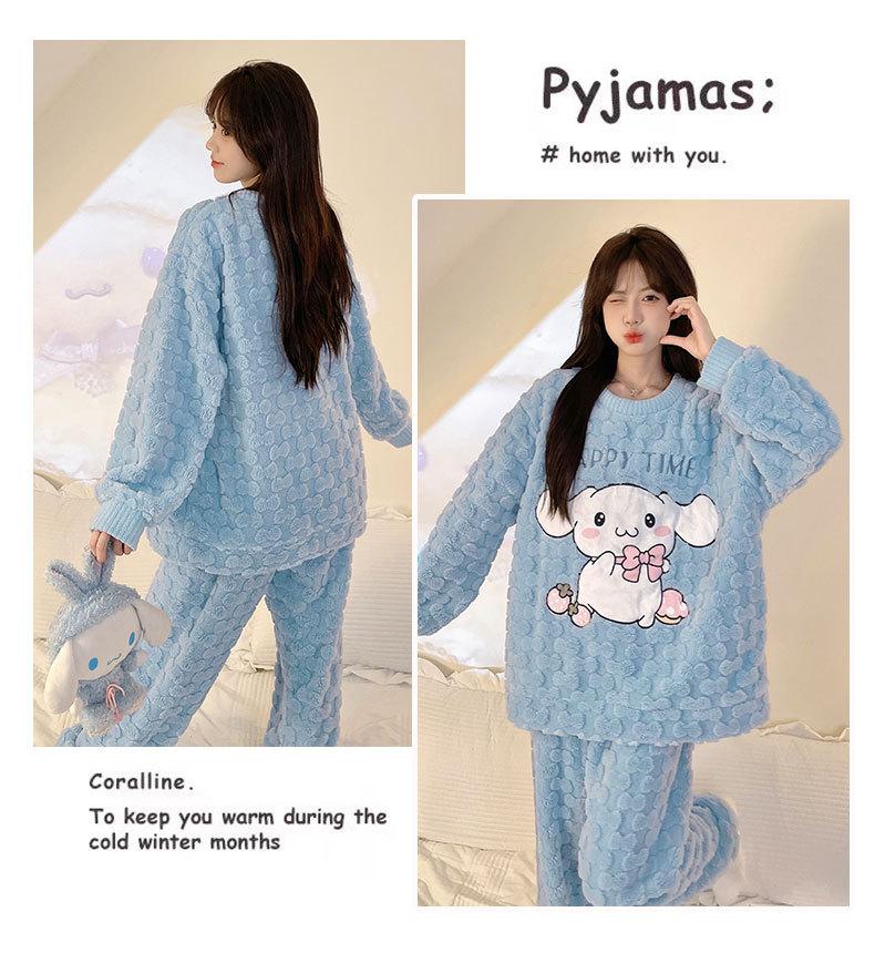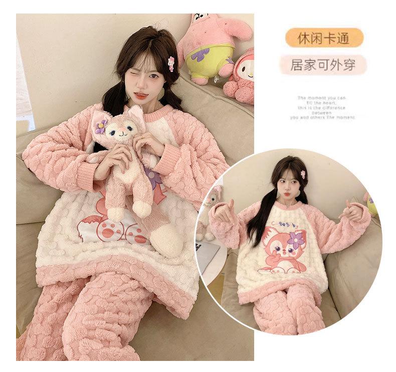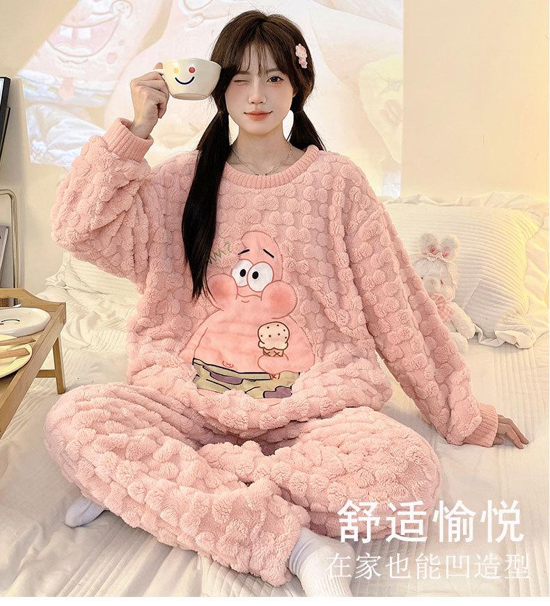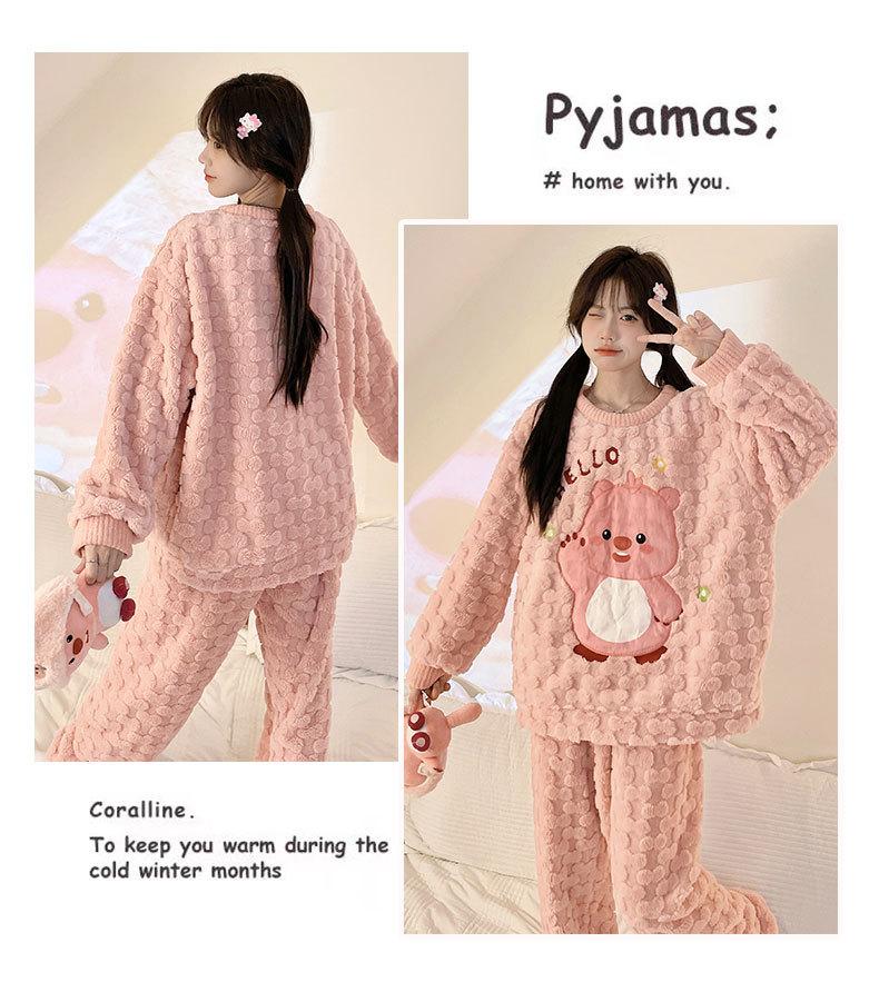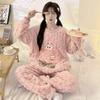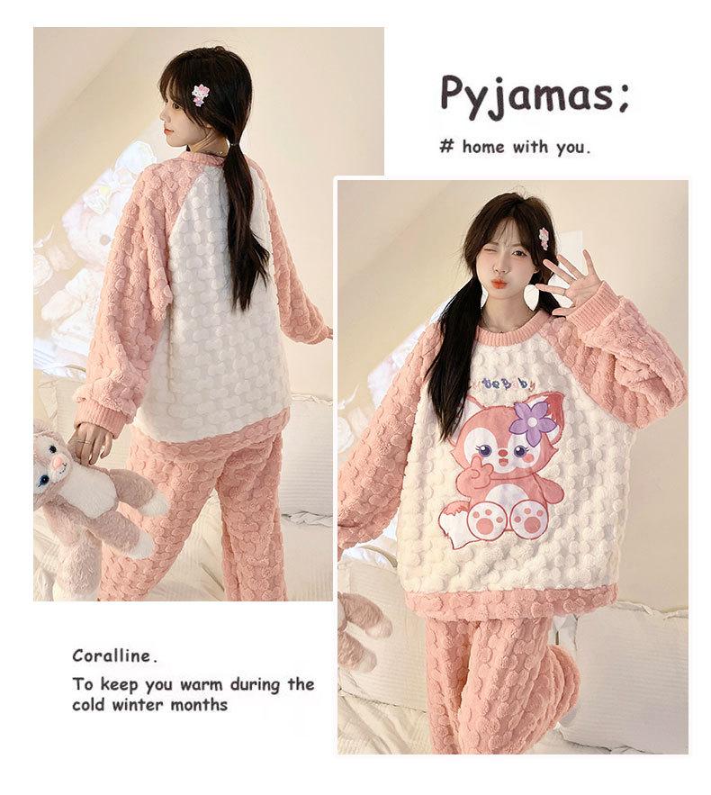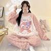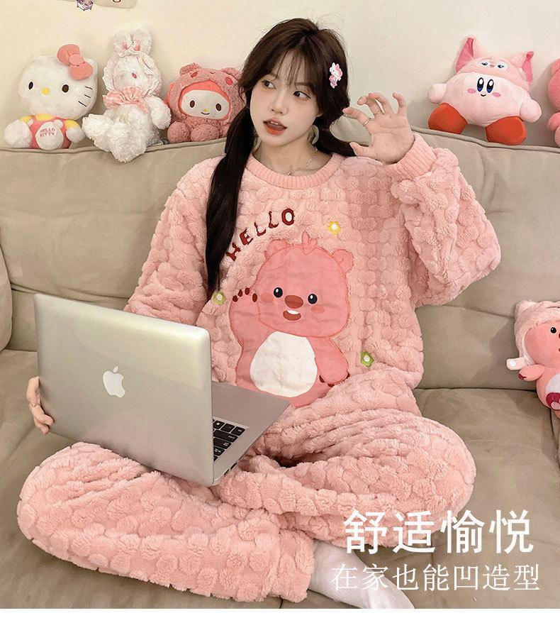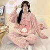 Pijama de lana coral estilo coreano para mujer, ropa de invierno nueva con forro polar grueso y bonito dibujo animado para niña pequeña.