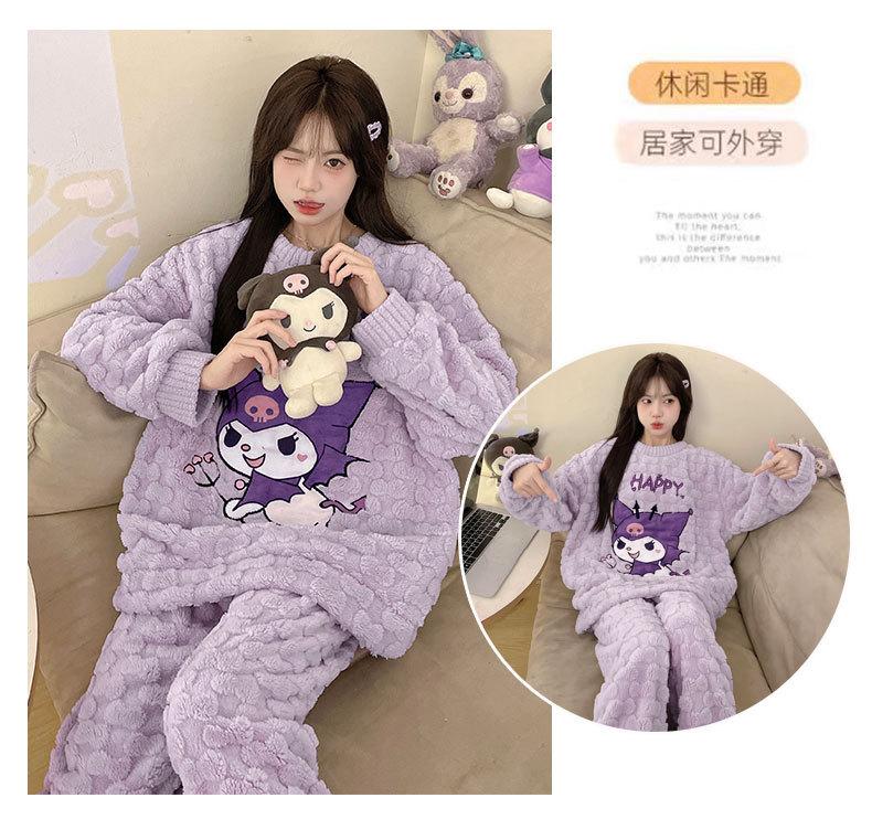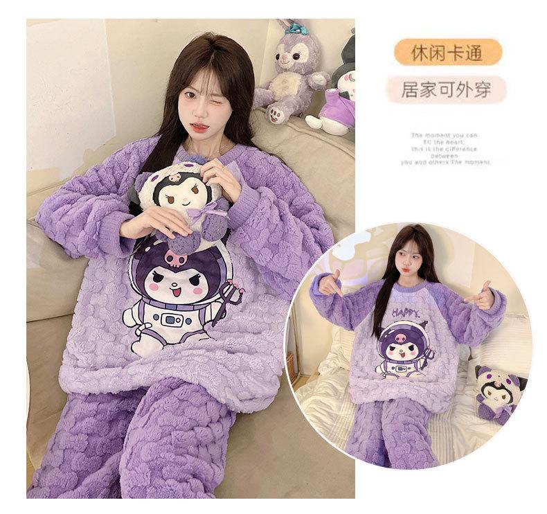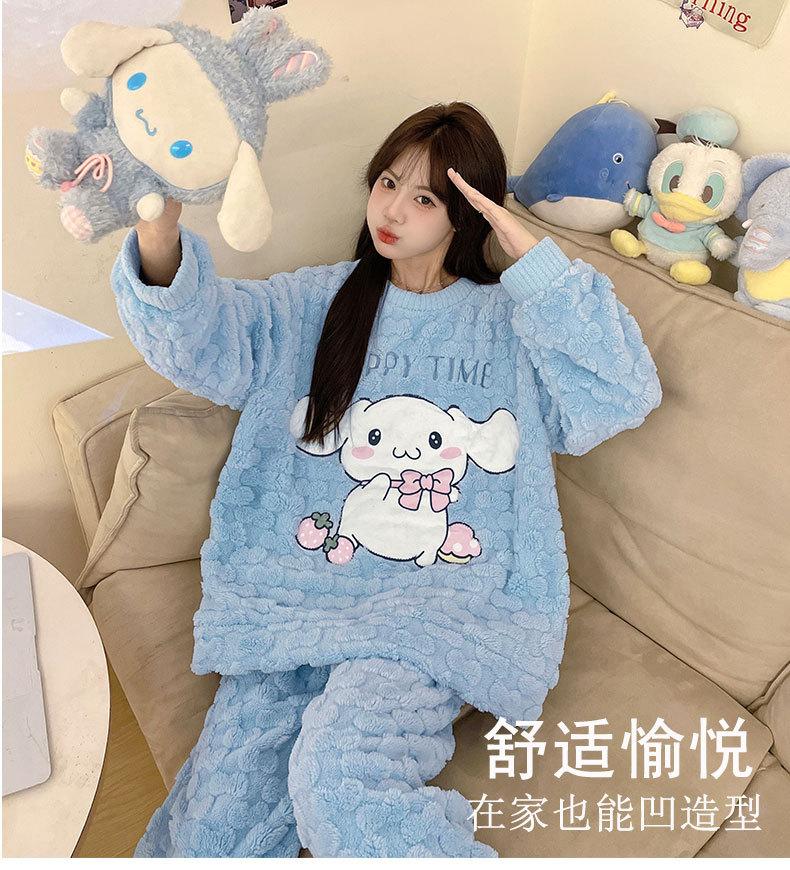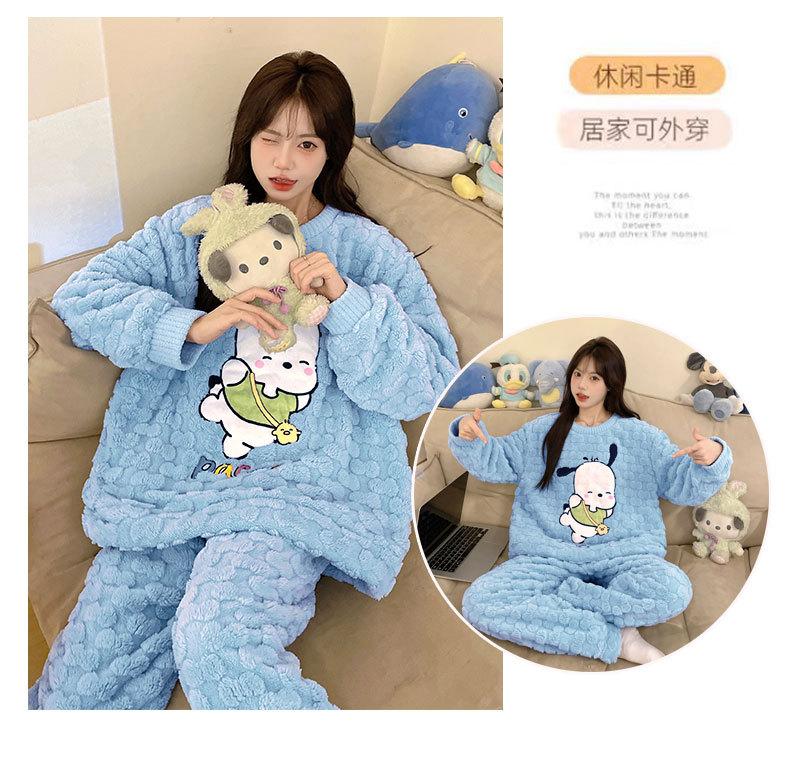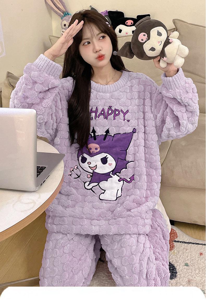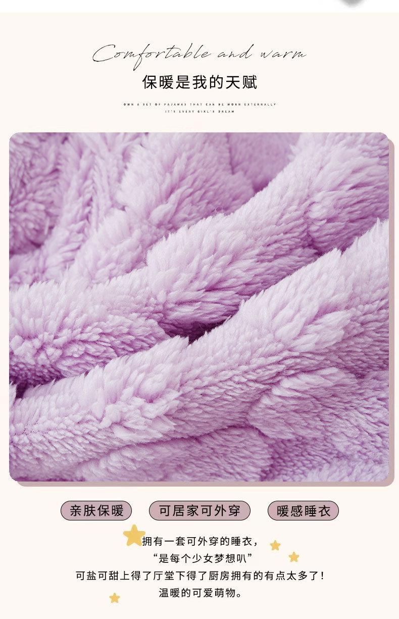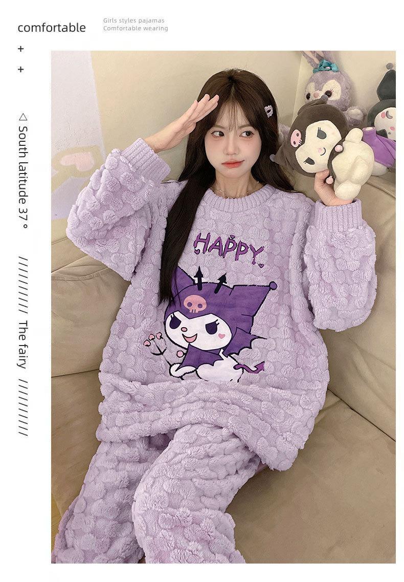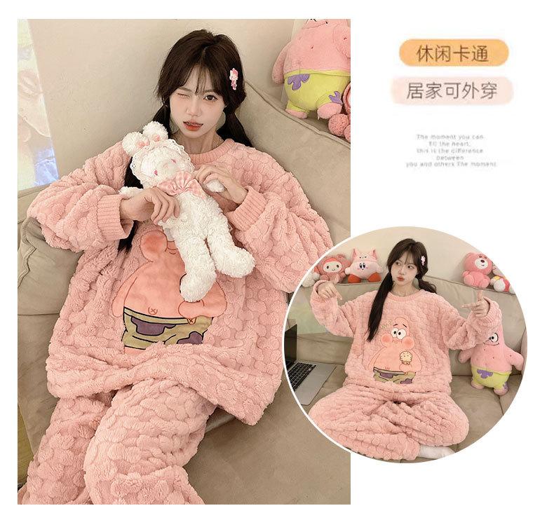 Pijama de lana coral estilo coreano para mujer, ropa de invierno nueva con forro polar grueso y bonito dibujo animado para niña pequeña.