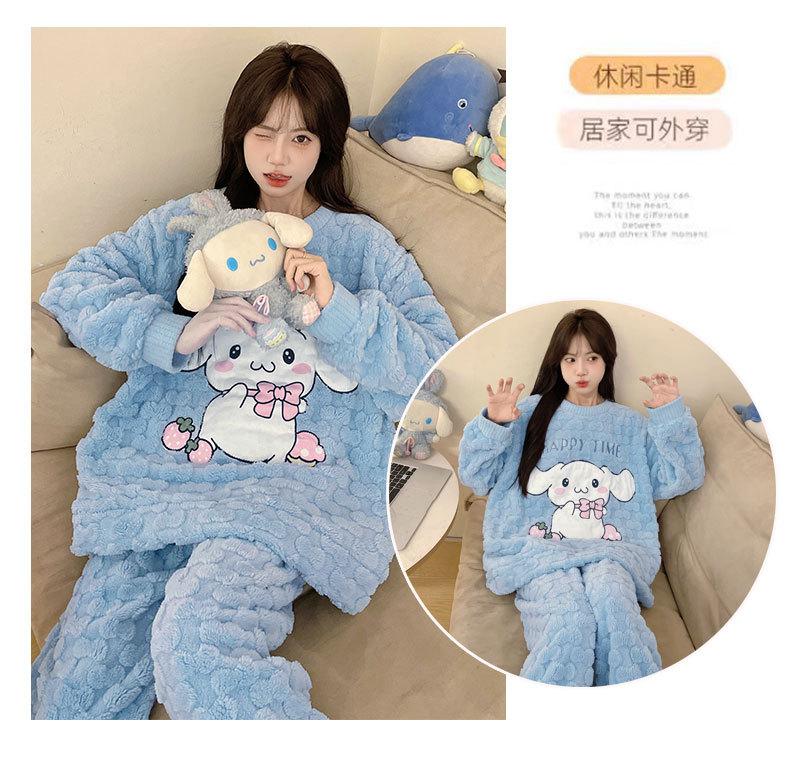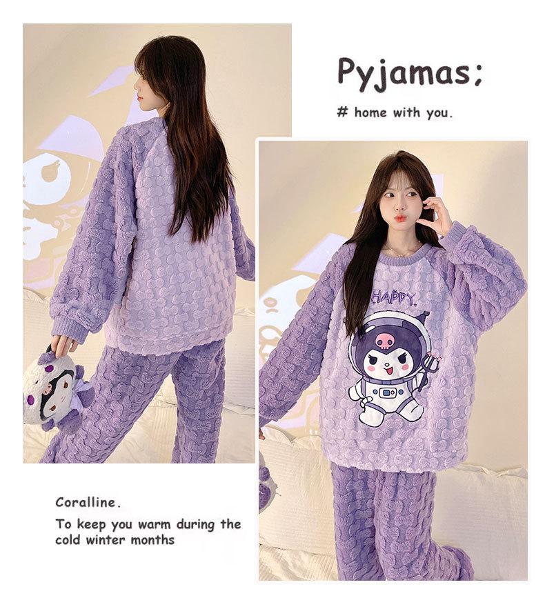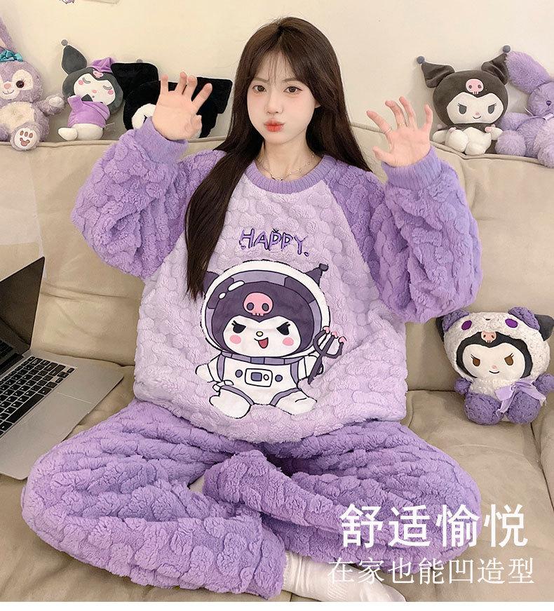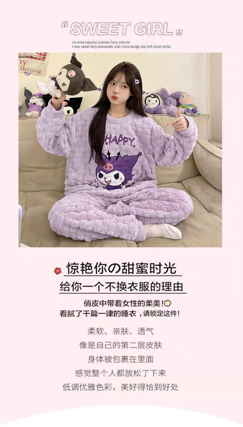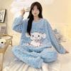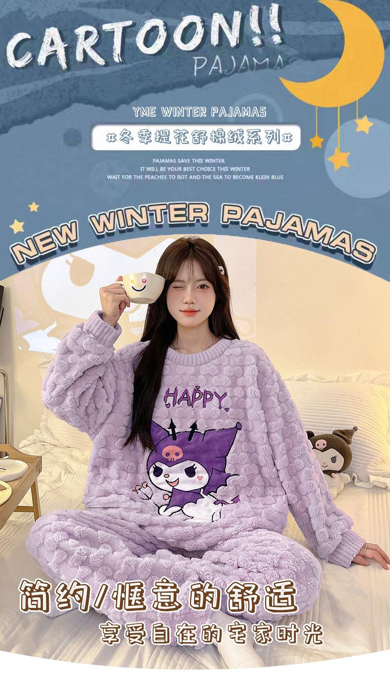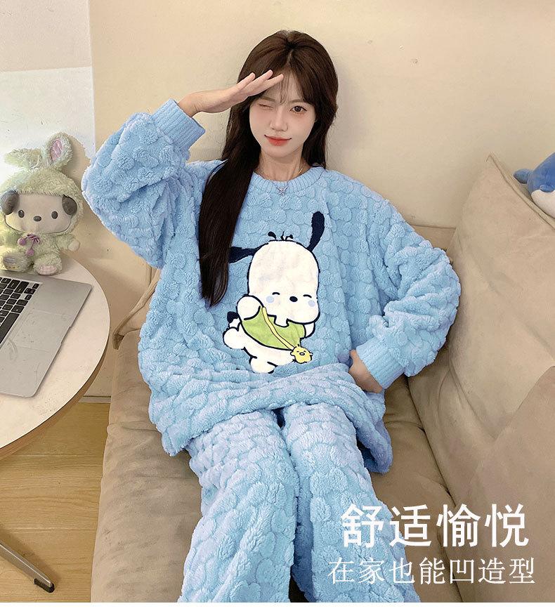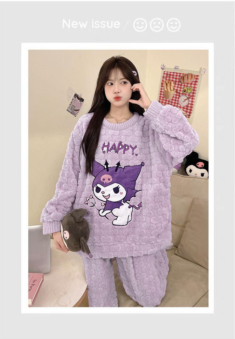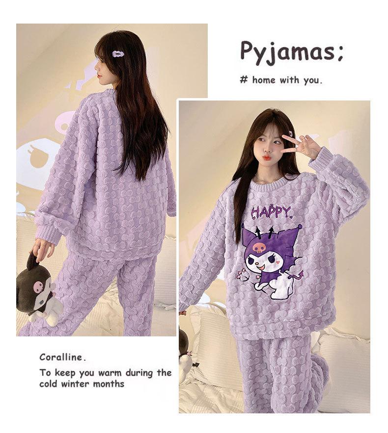 Pijama de lana coral estilo coreano para mujer, ropa de invierno nueva con forro polar grueso y bonito dibujo animado para niña pequeña.