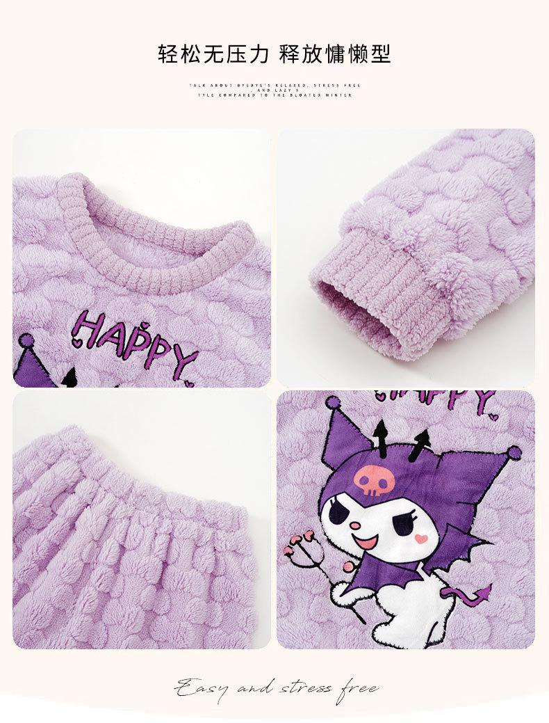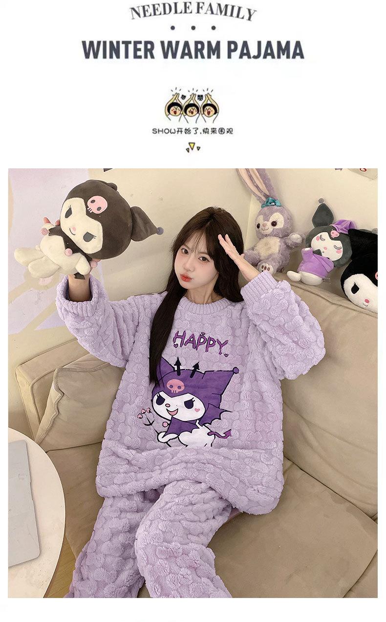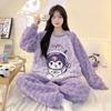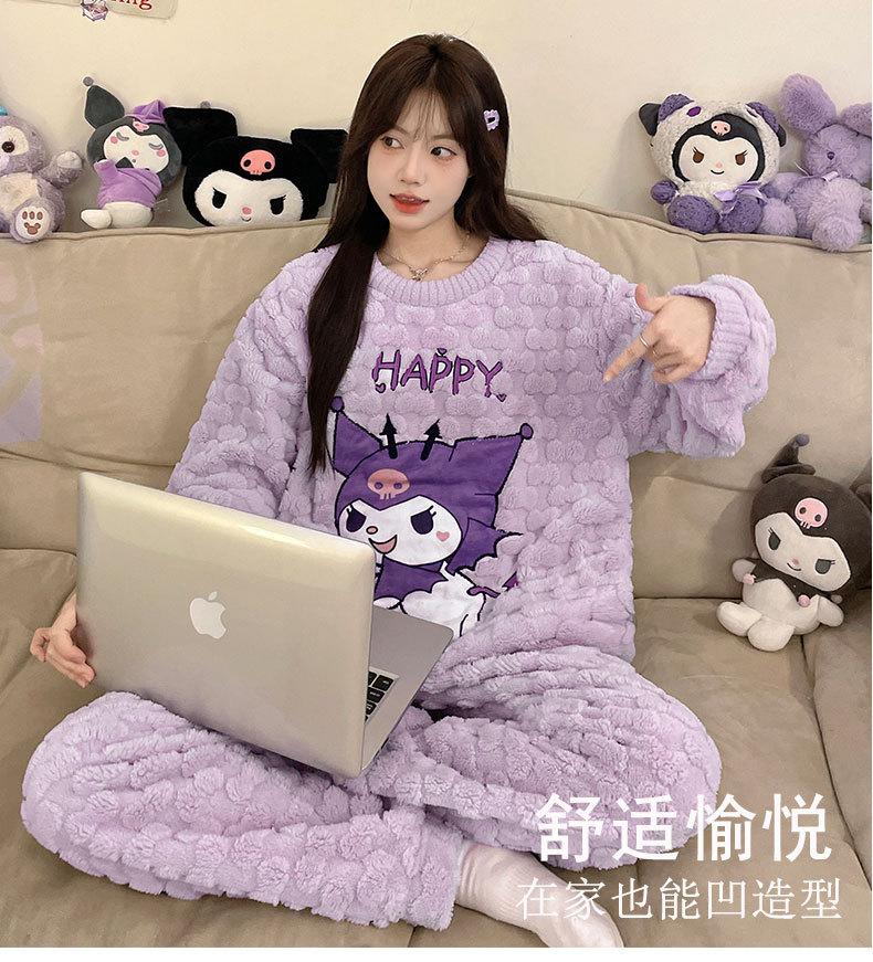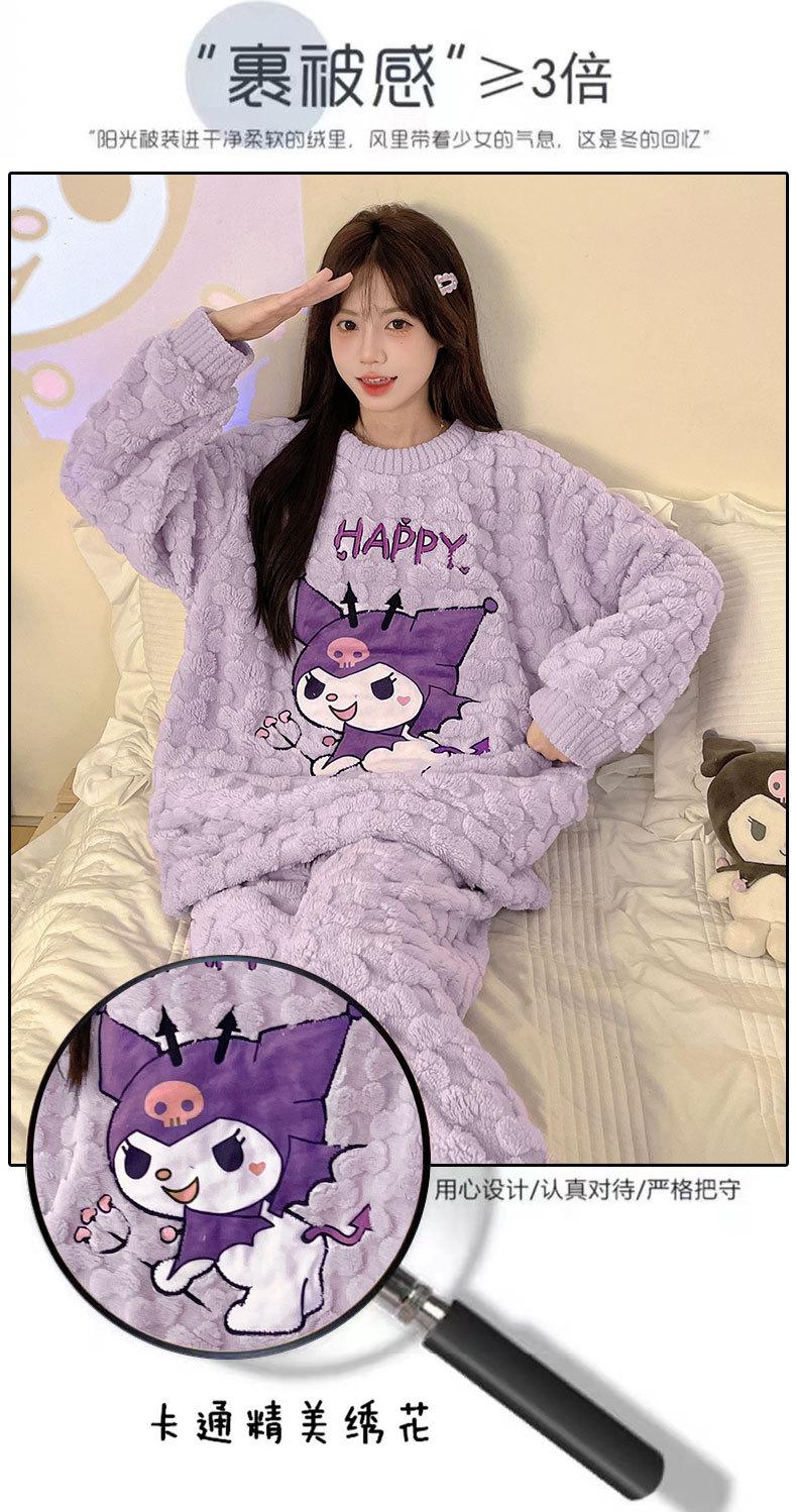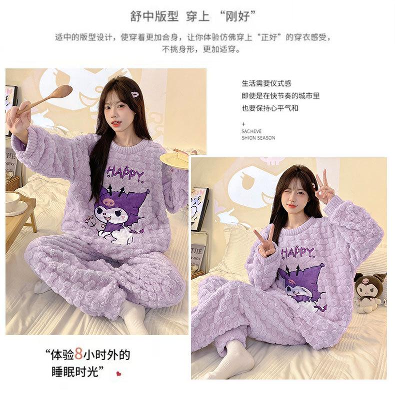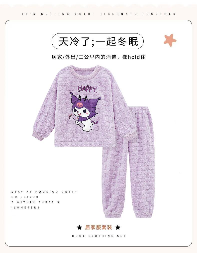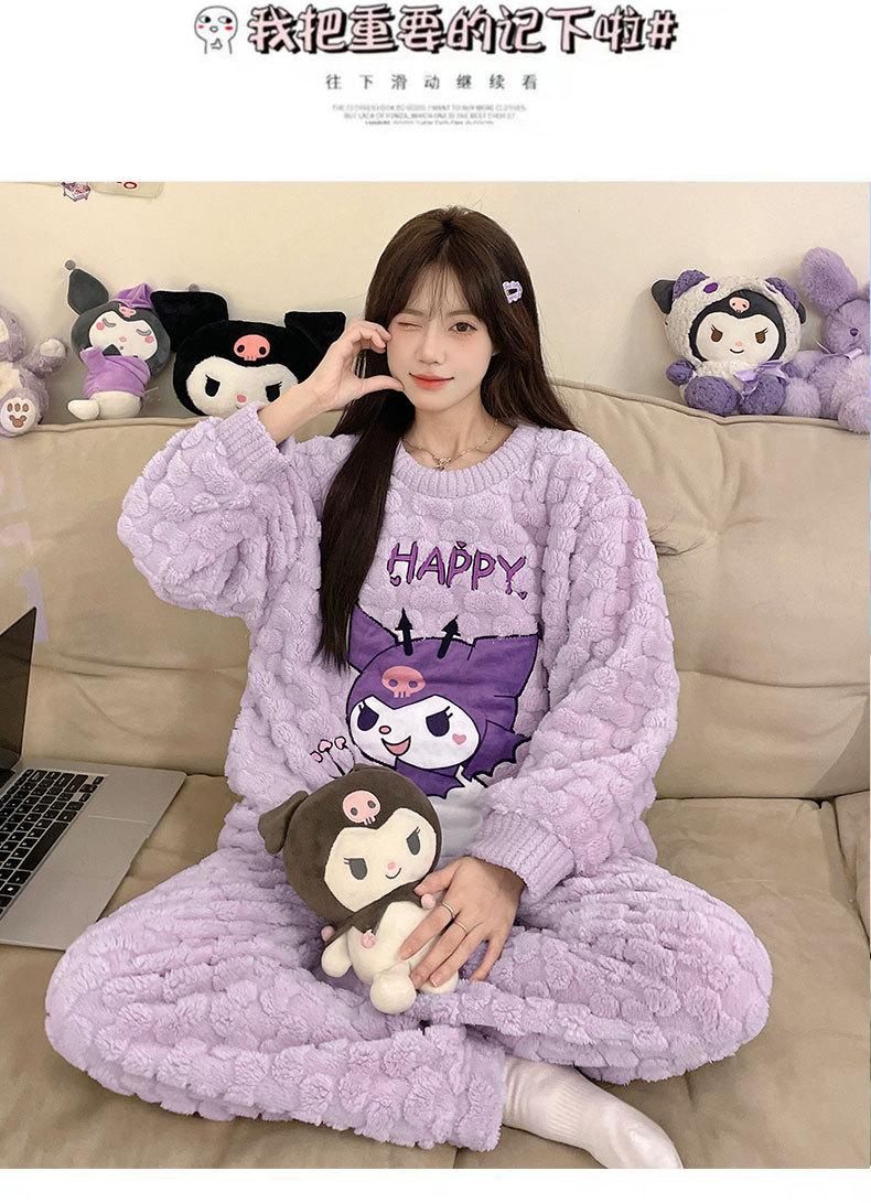 Pijama de lana coral estilo coreano para mujer, ropa de invierno nueva con forro polar grueso y bonito dibujo animado para niña pequeña.