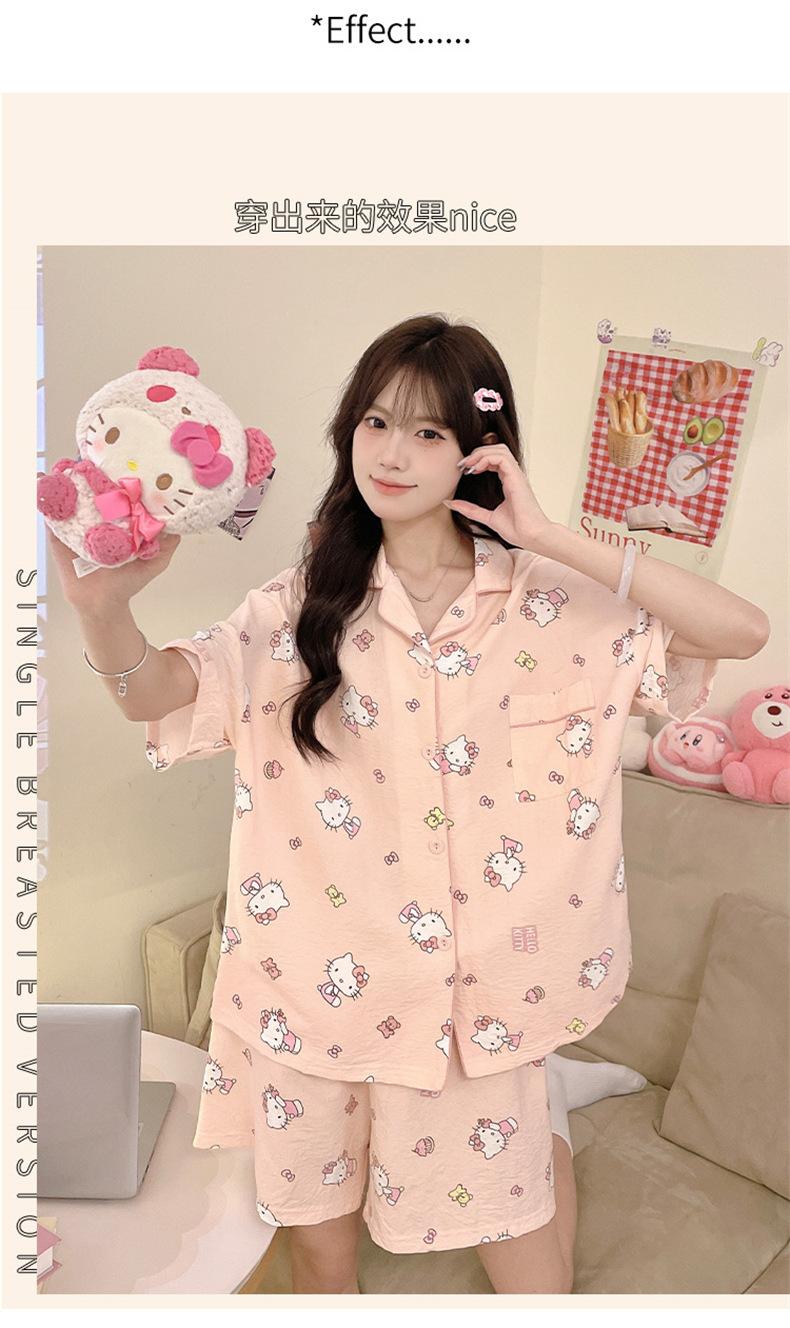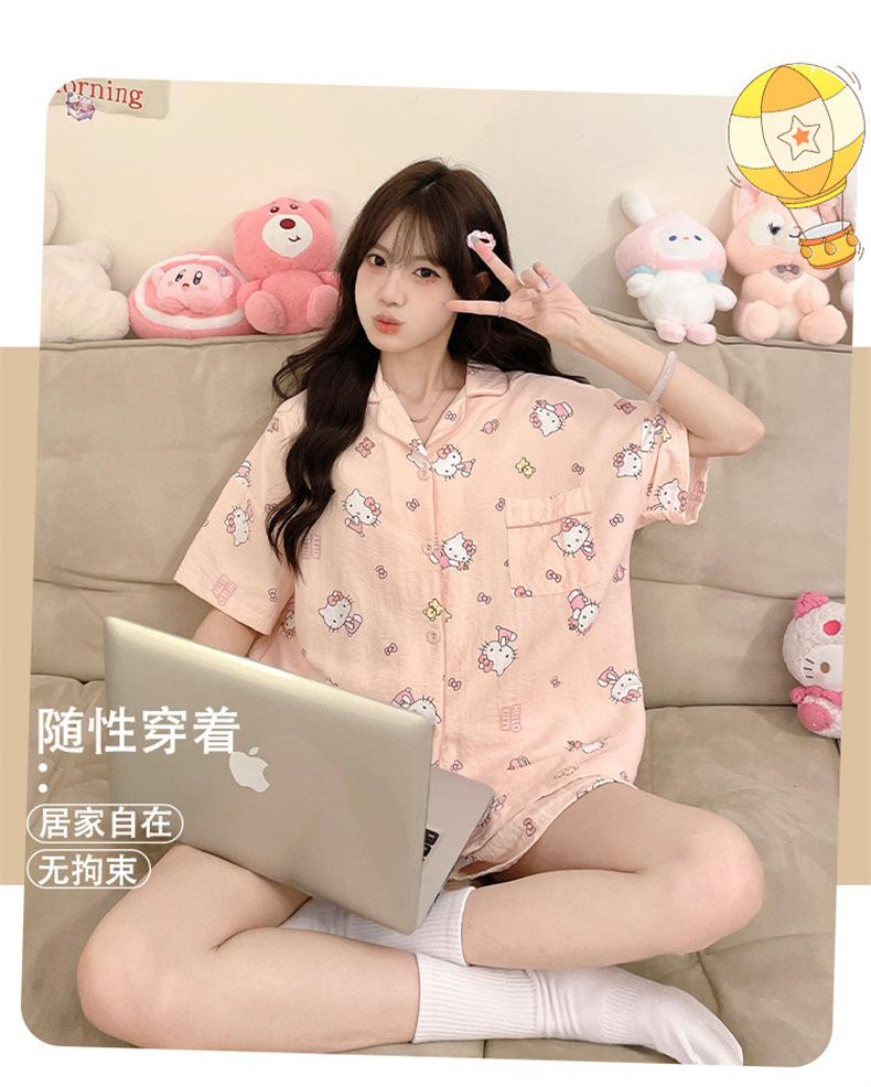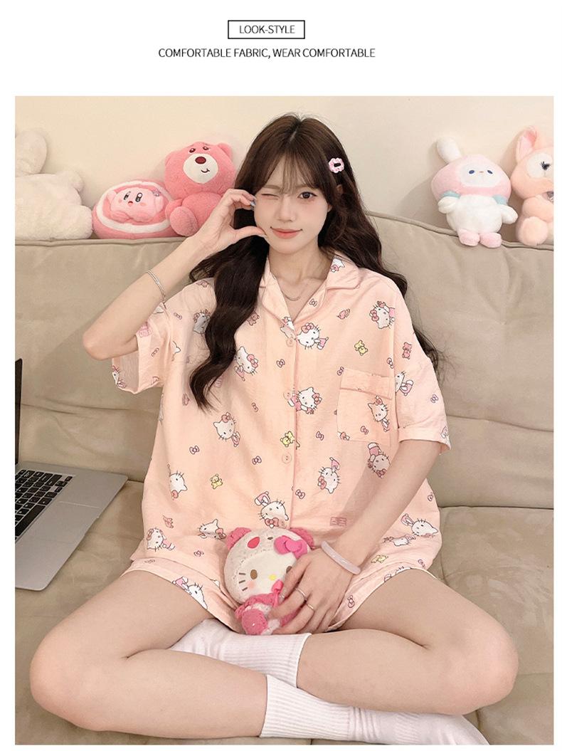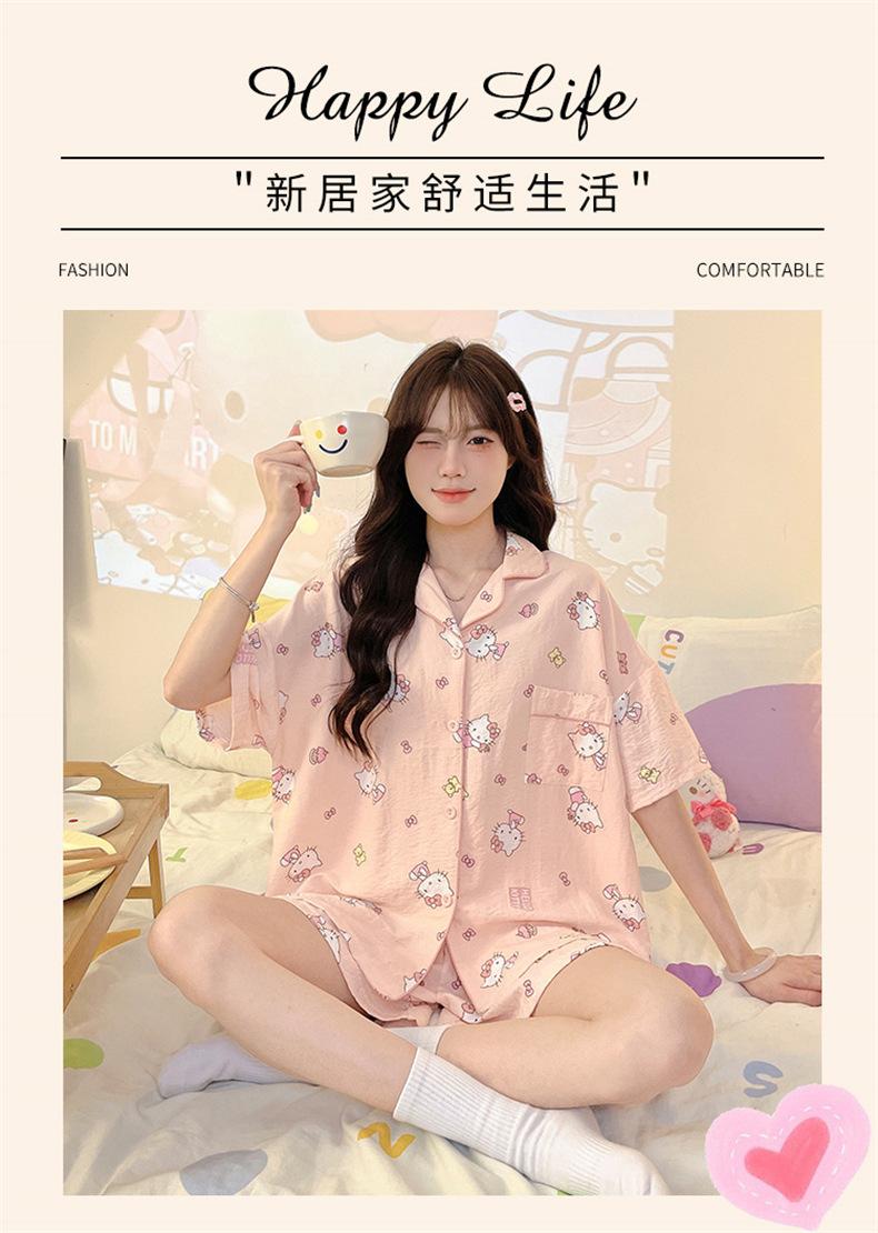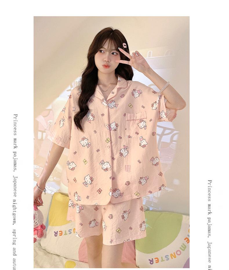 2025 Nuevo Producto de Verano Pijama de Algodón Nube para Mujer Estilo Princesa Dulce y Lindo Manga Corta Holgado Talla Grande Conjunto para Estar en Casa