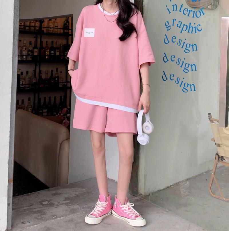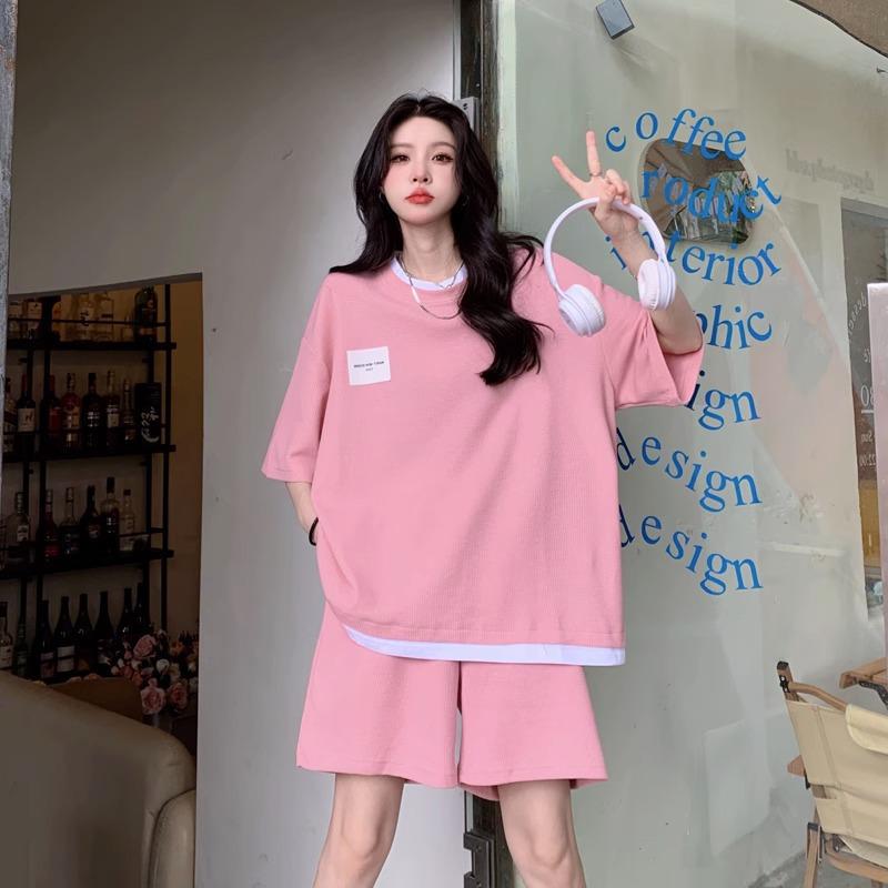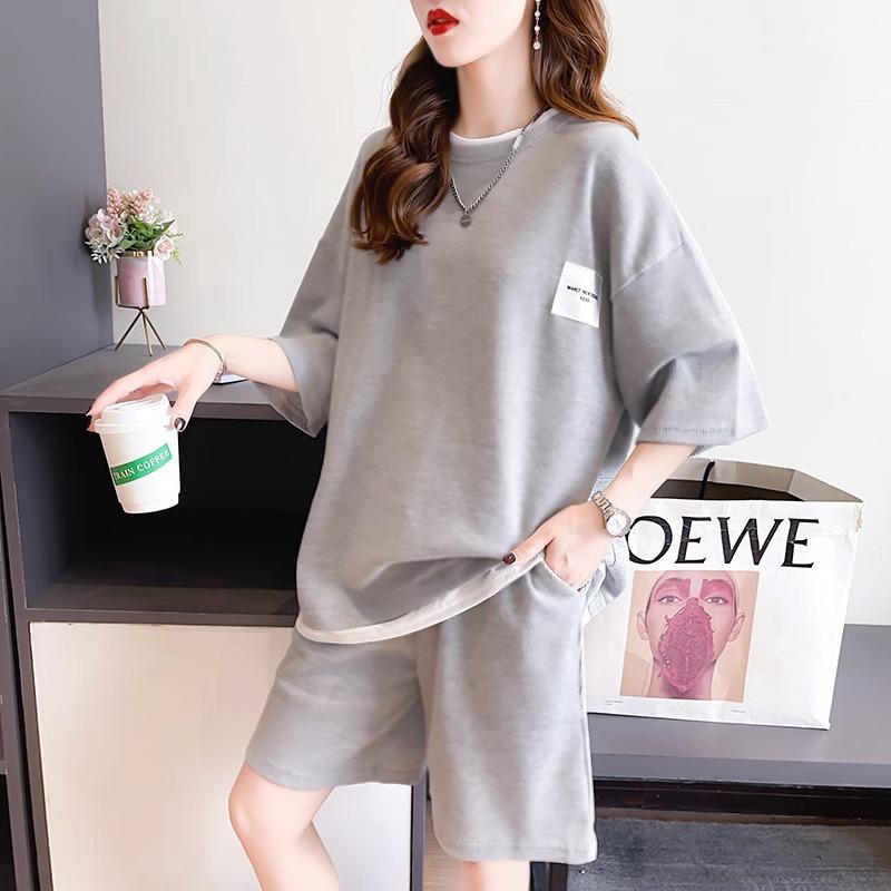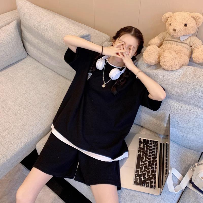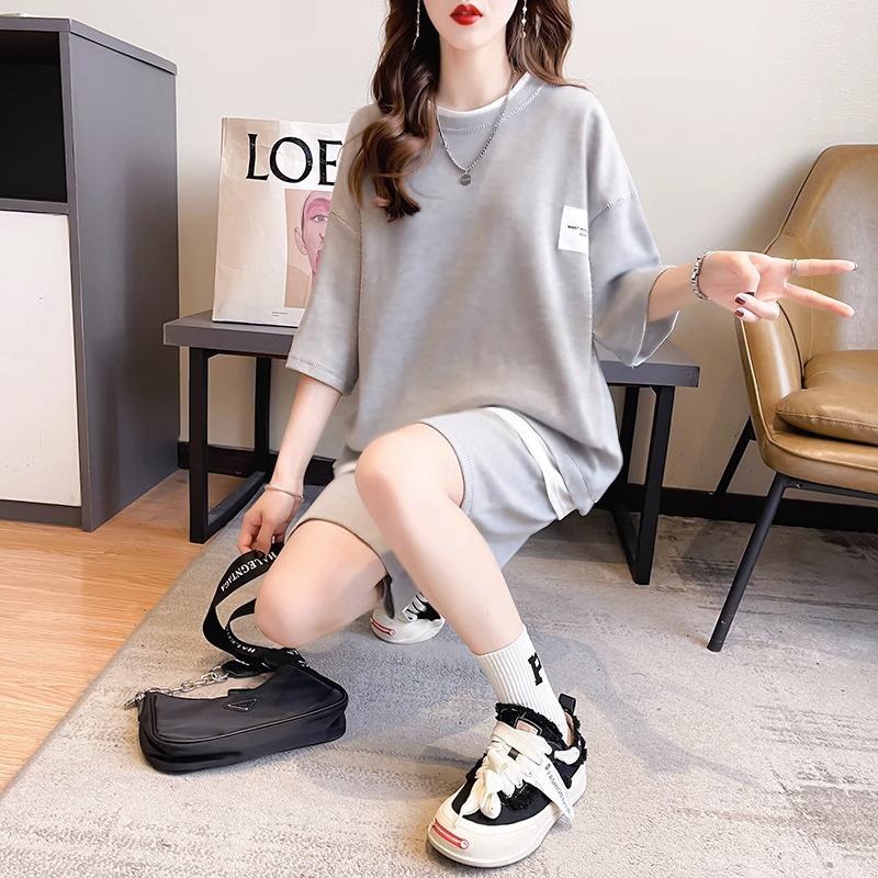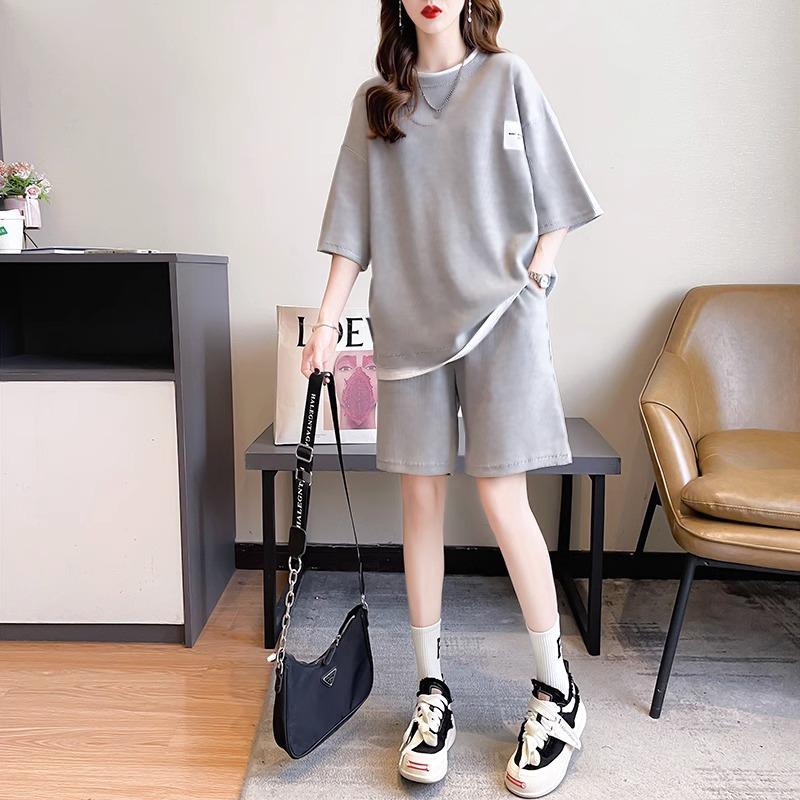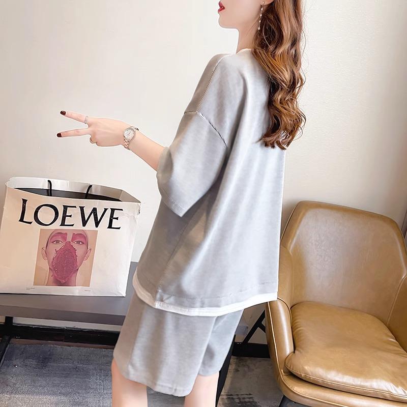 Conjunto de dos piezas de moda informal para mujer, verano 2023, elegante, holgado, de manga corta, cintura alta, pantalones cortos anchos
