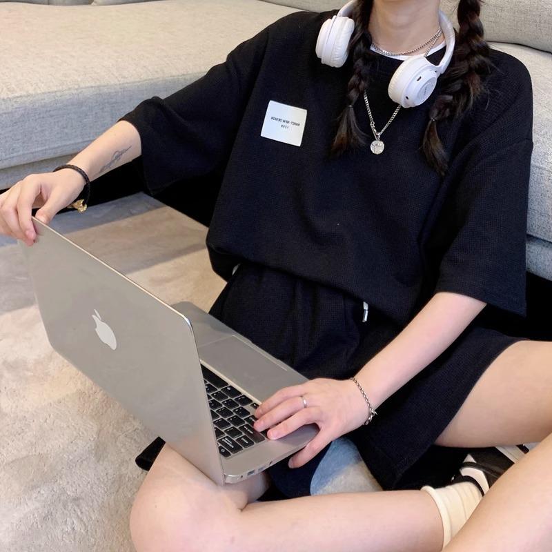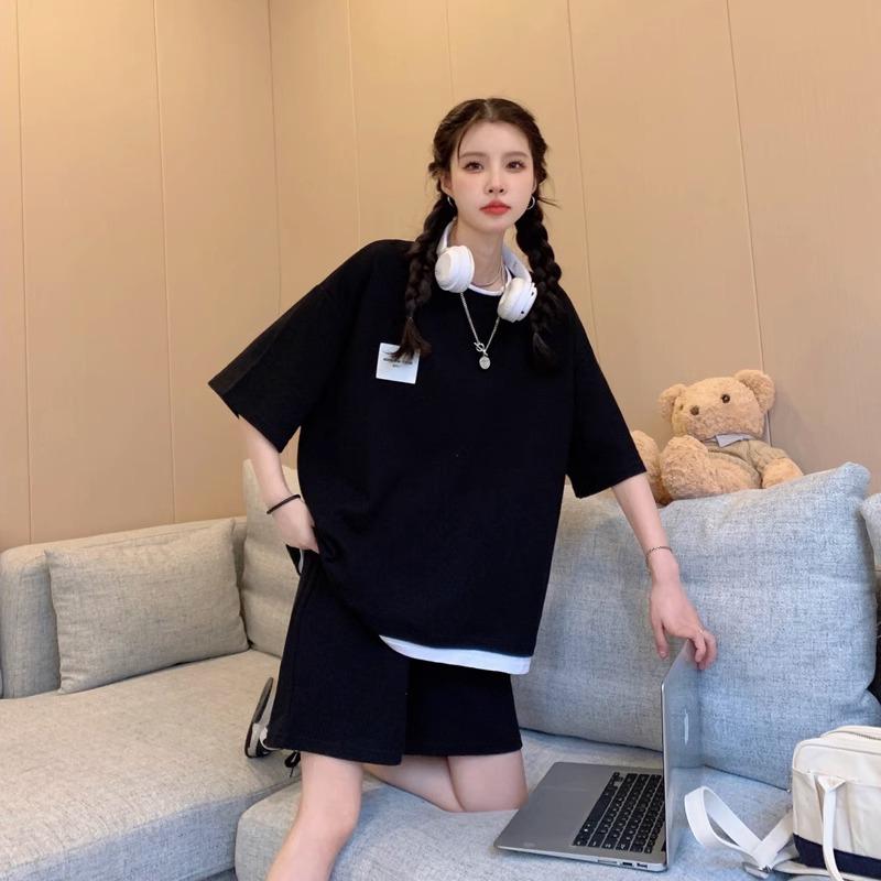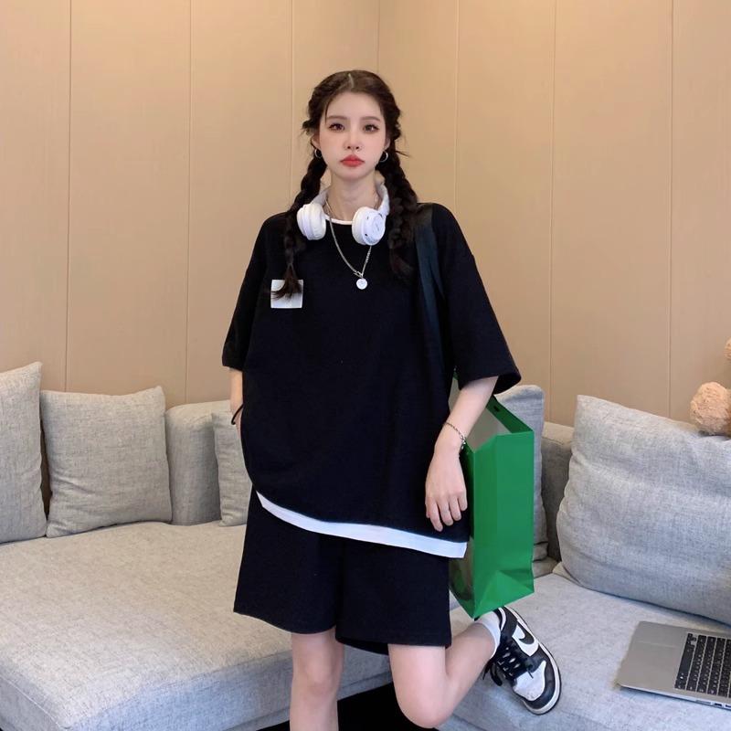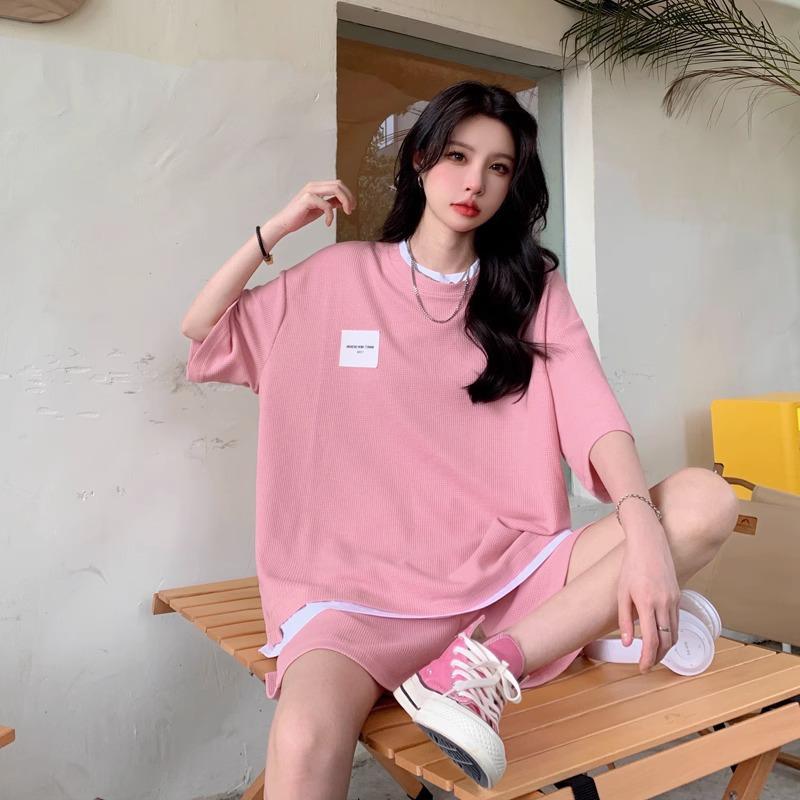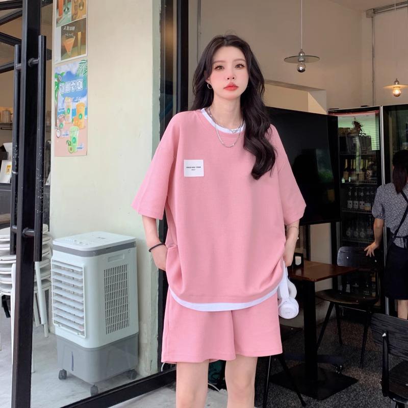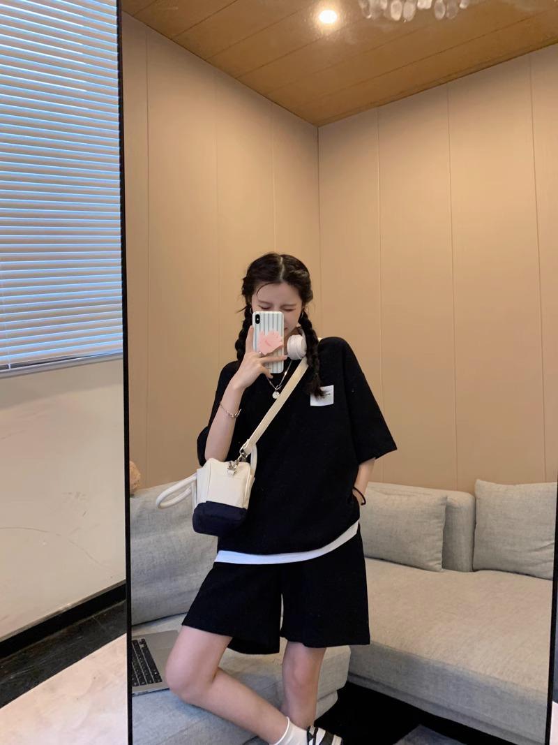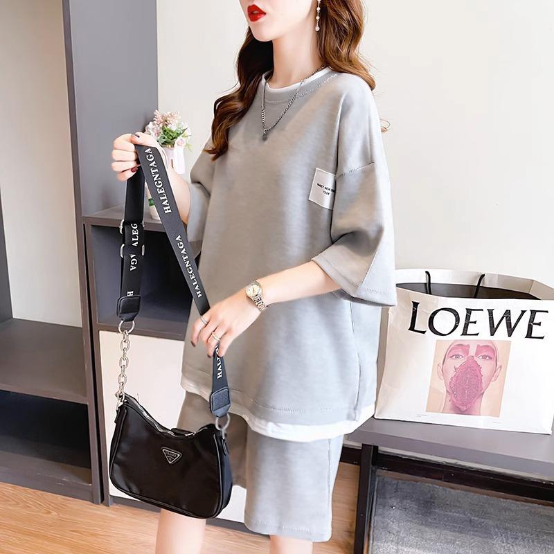 Conjunto de dos piezas de moda informal para mujer, verano 2023, elegante, holgado, de manga corta, cintura alta, pantalones cortos anchos
