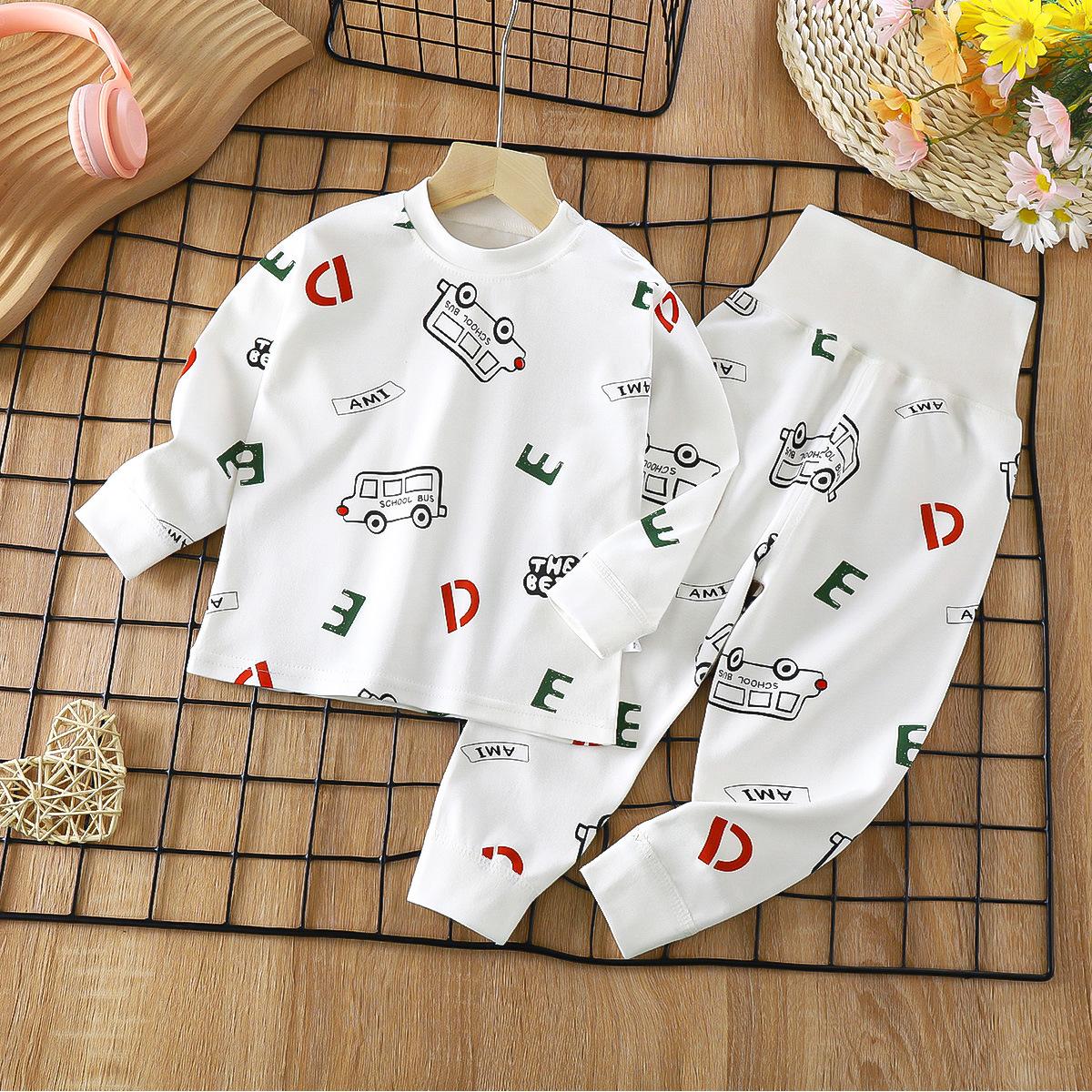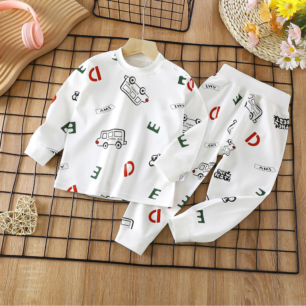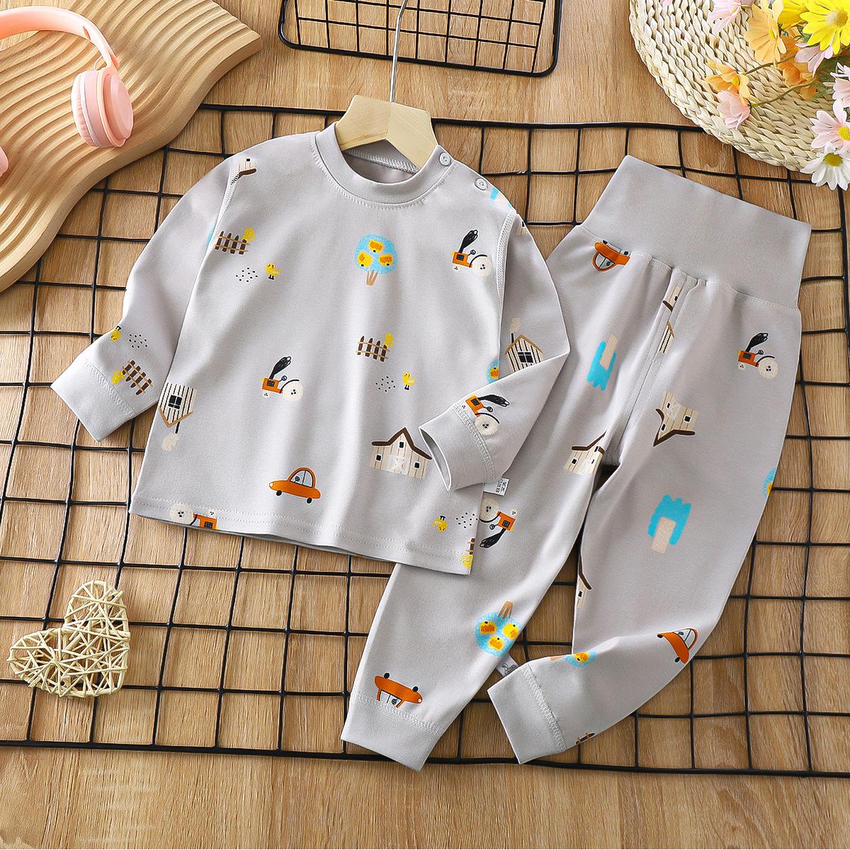 Traje Infantil Otoño Jacquard Algodón Traje Niños y Niñas Ropa Interior Manga Larga Ropa de Otoño Pantalones Largos Pijama Infantil Ropa para el Hogar