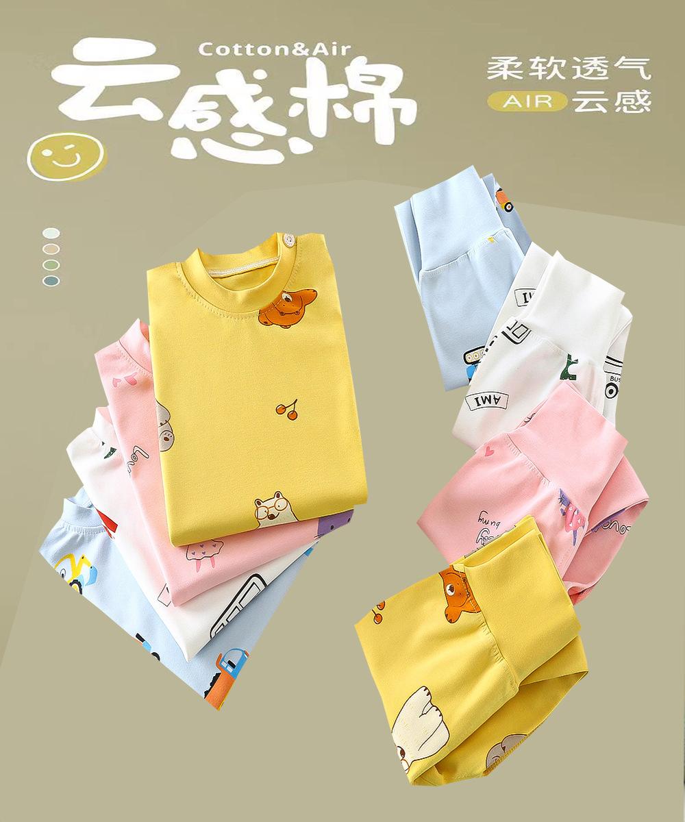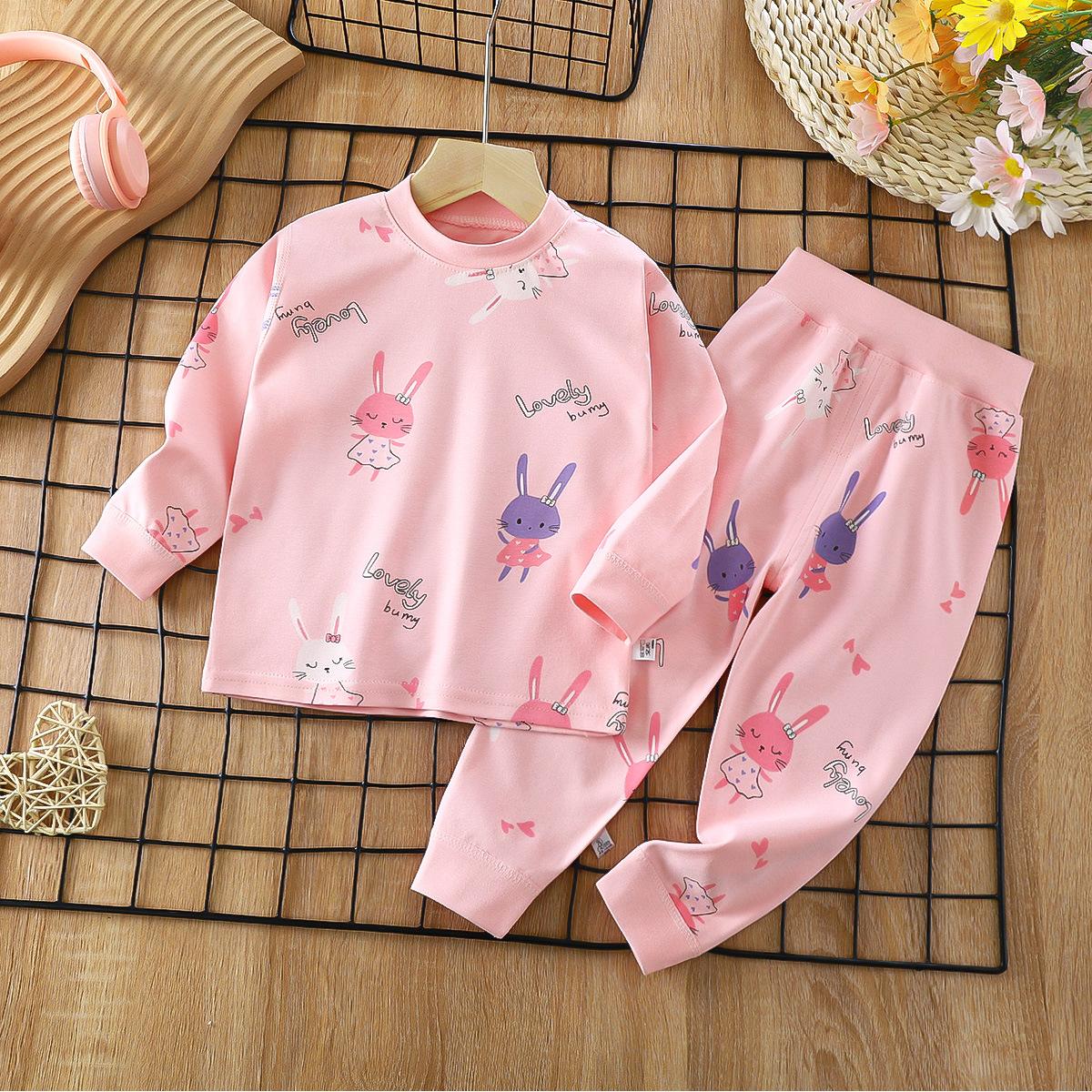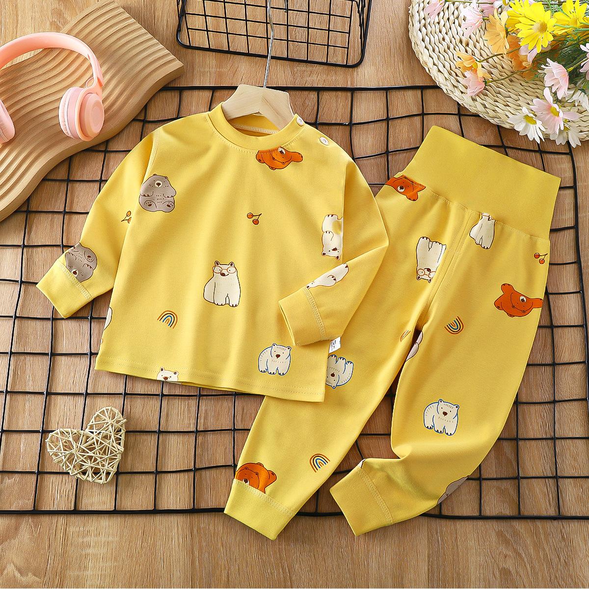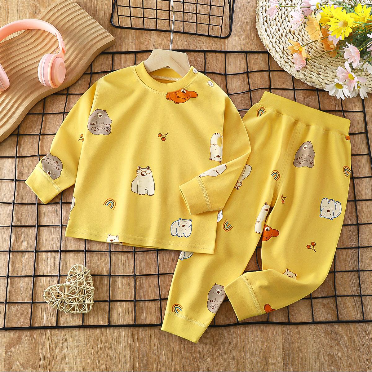 Traje Infantil Otoño Jacquard Algodón Traje Niños y Niñas Ropa Interior Manga Larga Ropa de Otoño Pantalones Largos Pijama Infantil Ropa para el Hogar