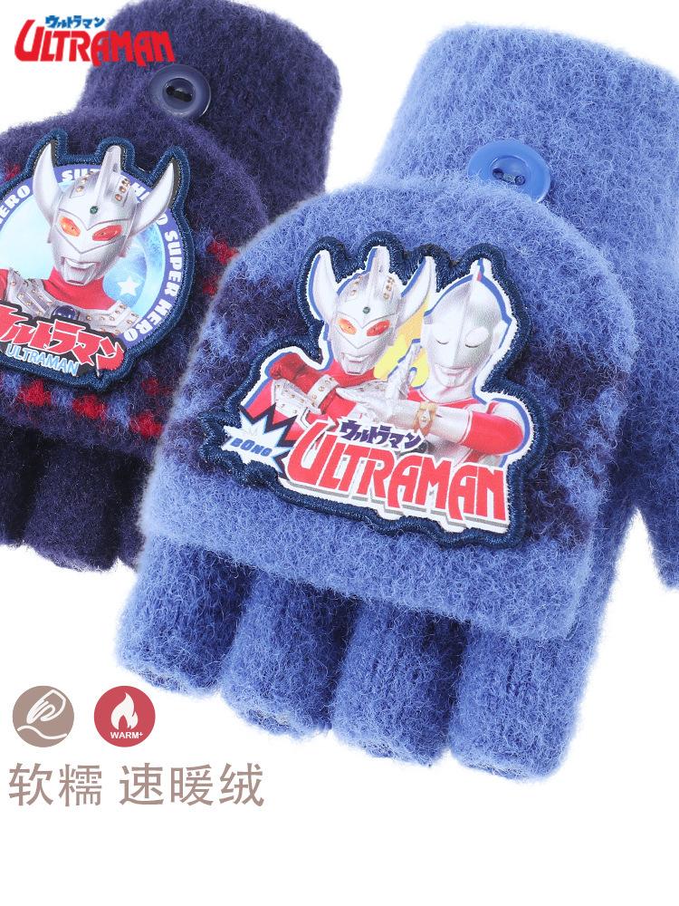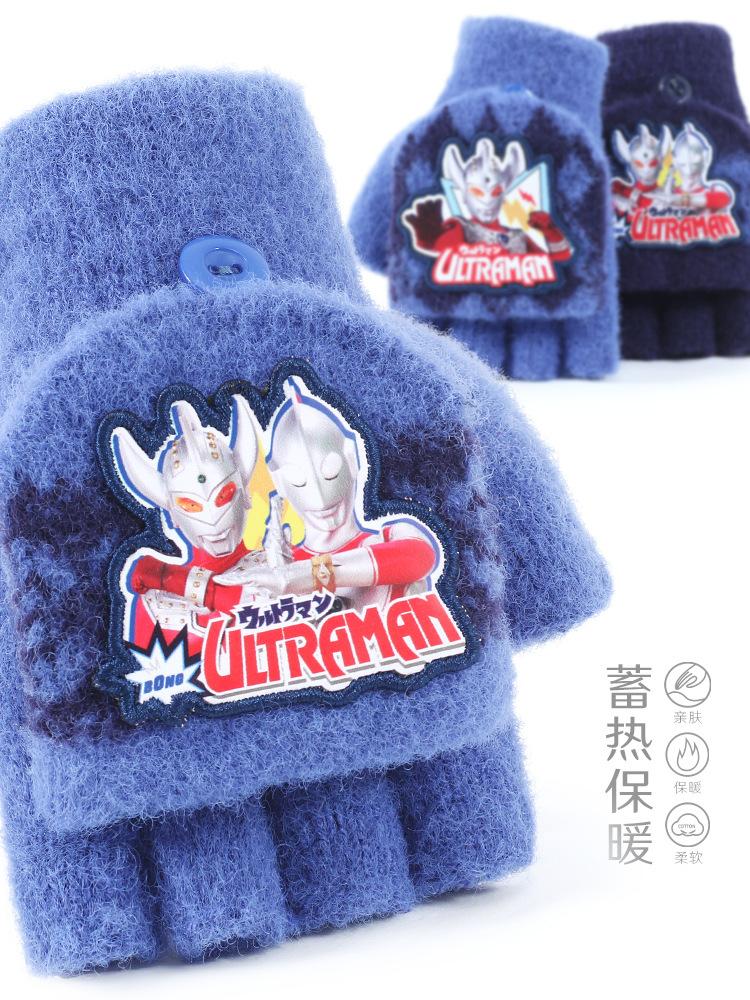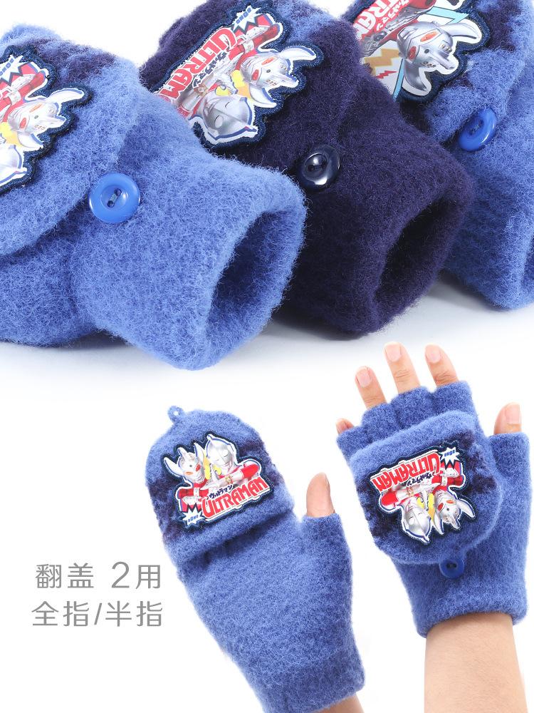 Guantes de invierno para niños, cálidos, de lana tejida, de medio dedo y cinco dedos, con tapa abatible y cubierta gruesa para dedos para niños y bebés.