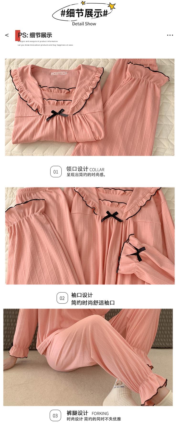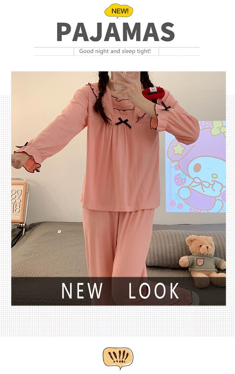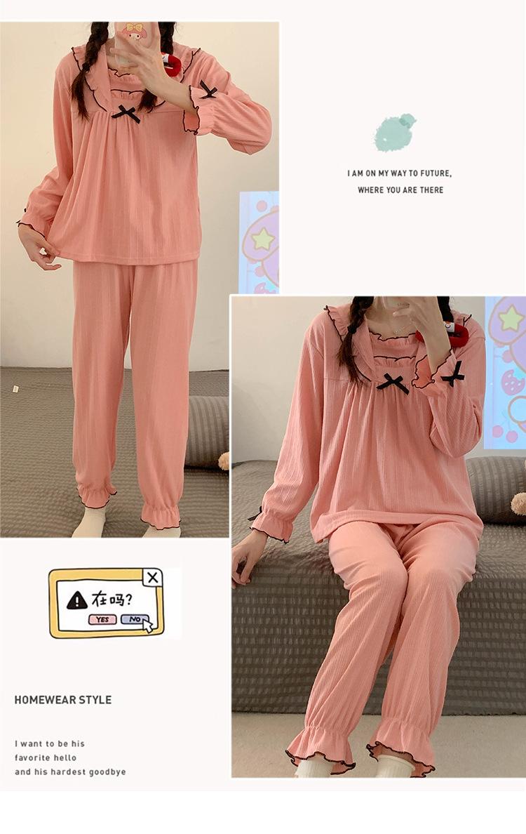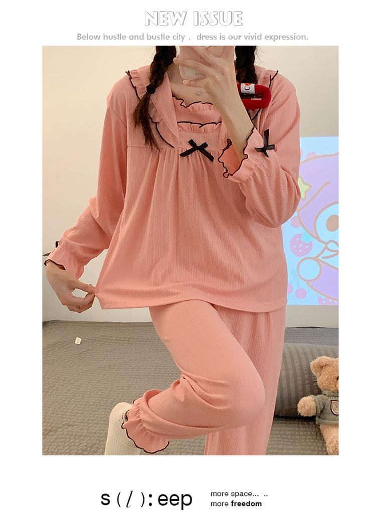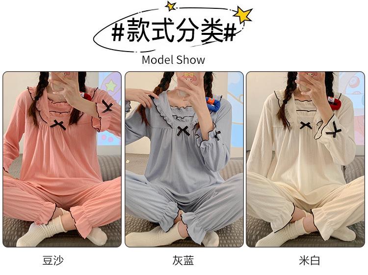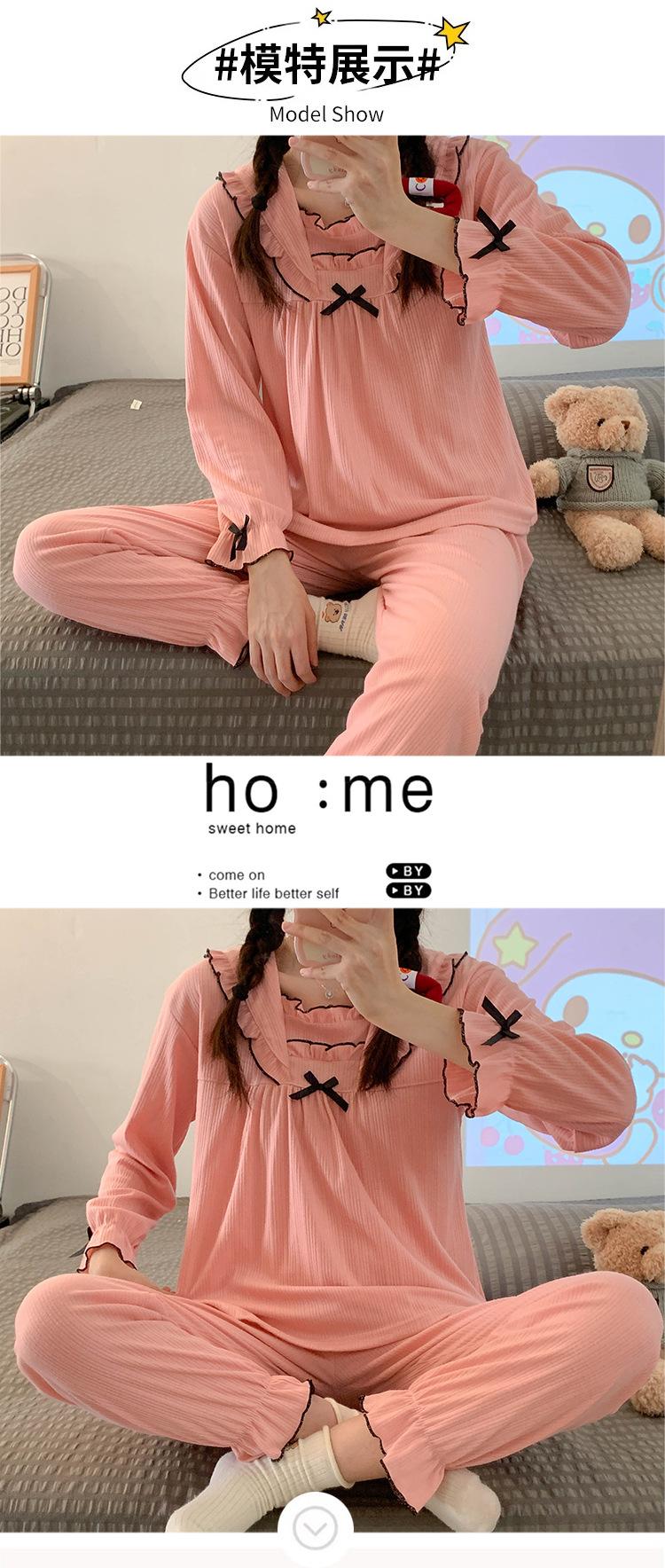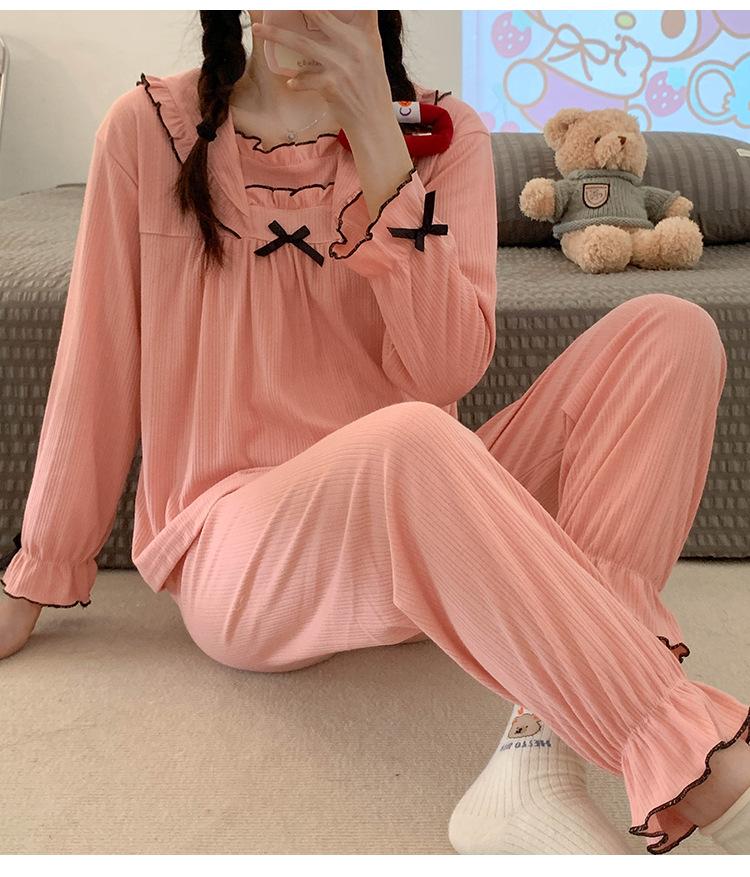 Pijama de algodón 6535 para mujer, primavera y otoño, nuevo y bonito, estilo Han Feng, con pantalones de manga larga, conjunto de dos piezas para el hogar.