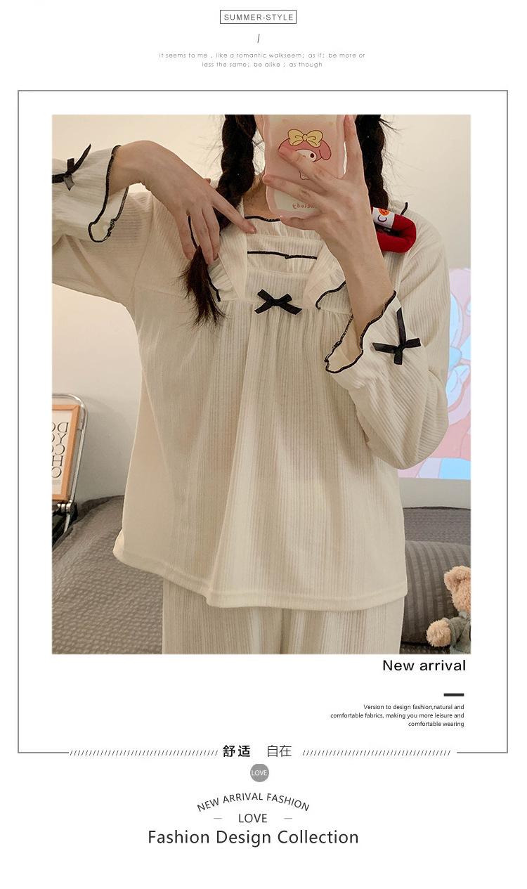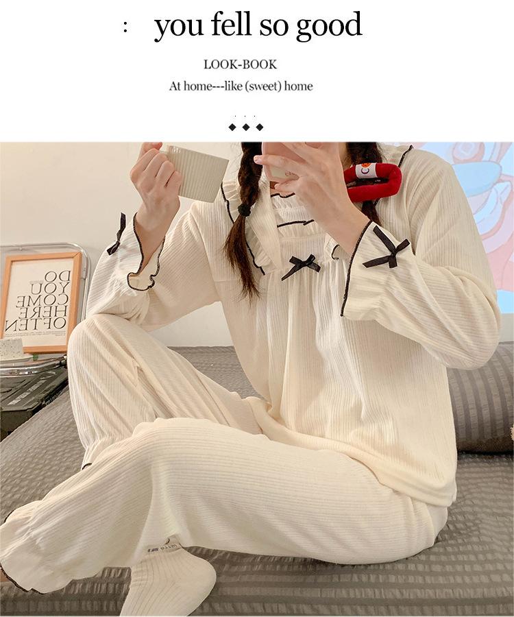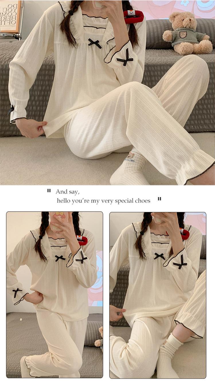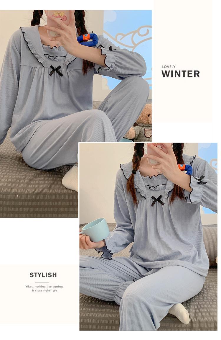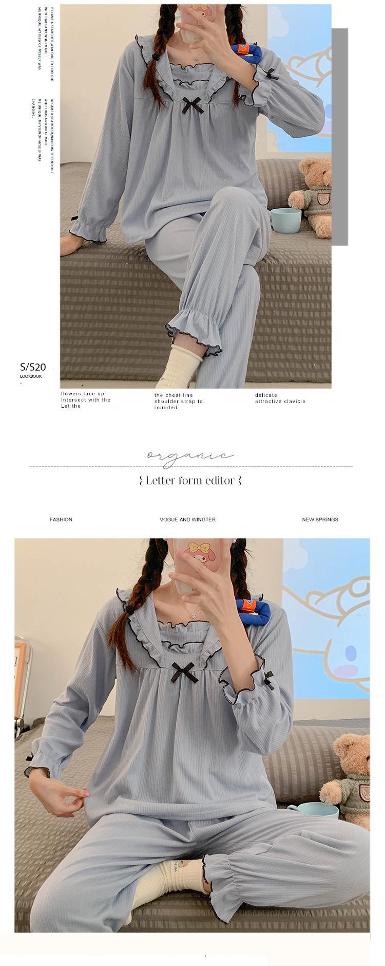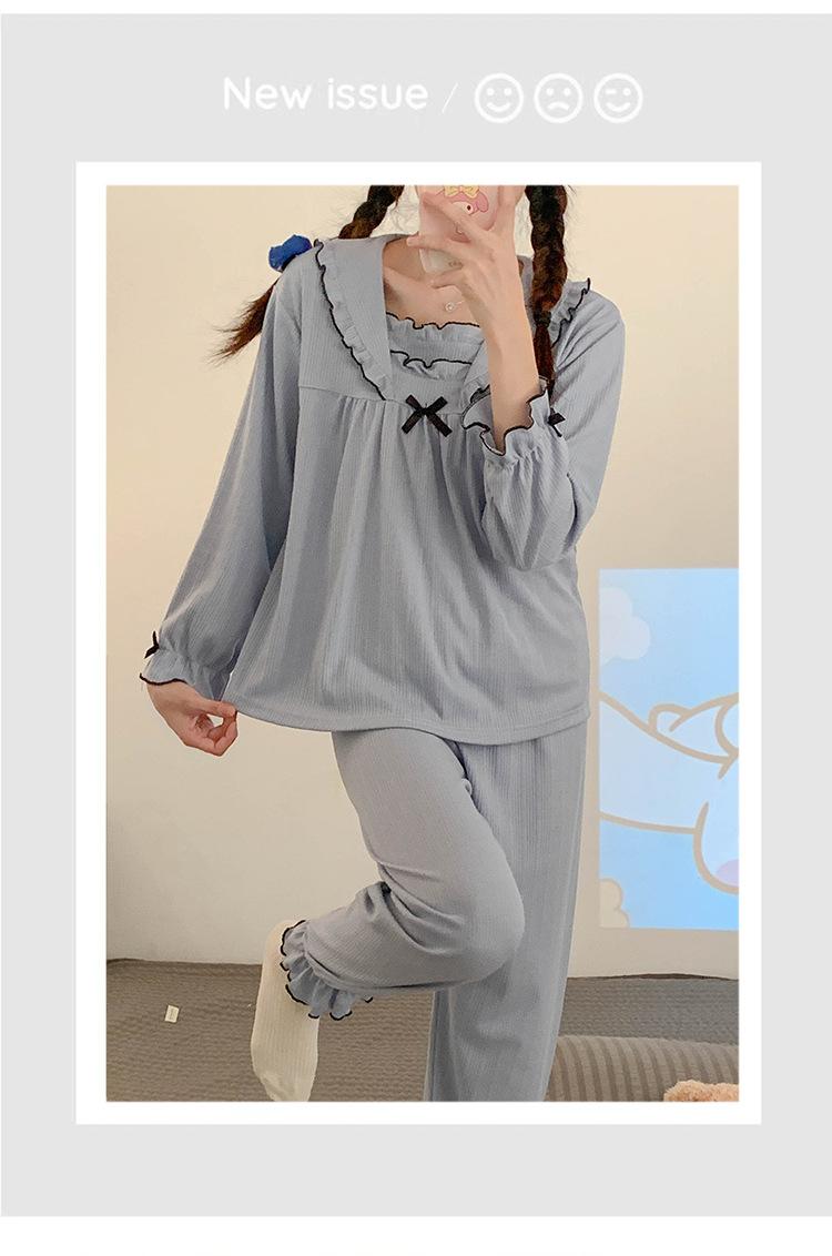 Pijama de algodón 6535 para mujer, primavera y otoño, nuevo y bonito, estilo Han Feng, con pantalones de manga larga, conjunto de dos piezas para el hogar.