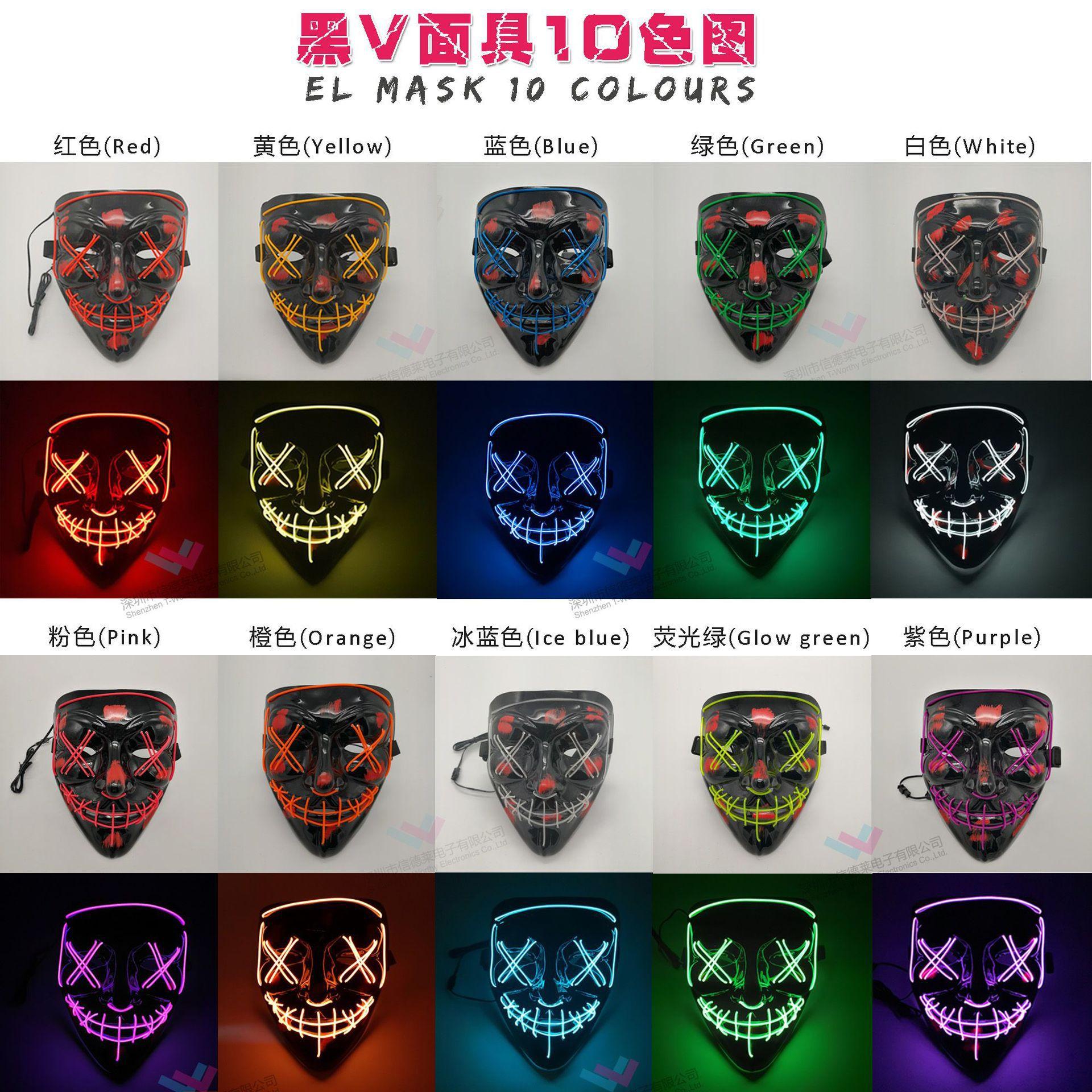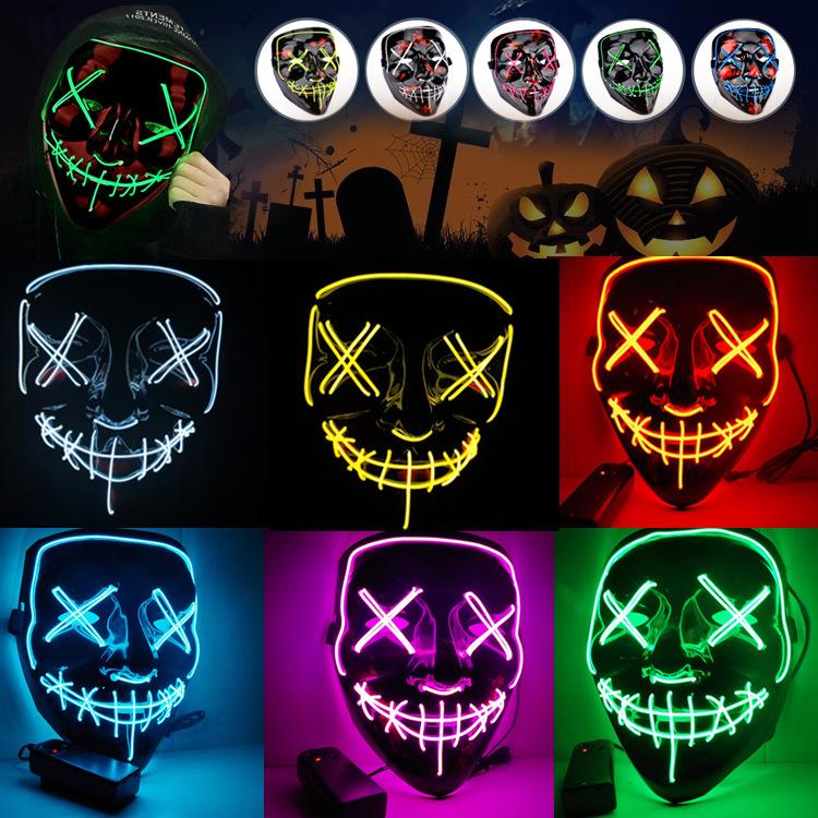 Máscara de terror de Halloween europea y americana, máscara de luz fría LED, fabricante de máscaras de Halloween