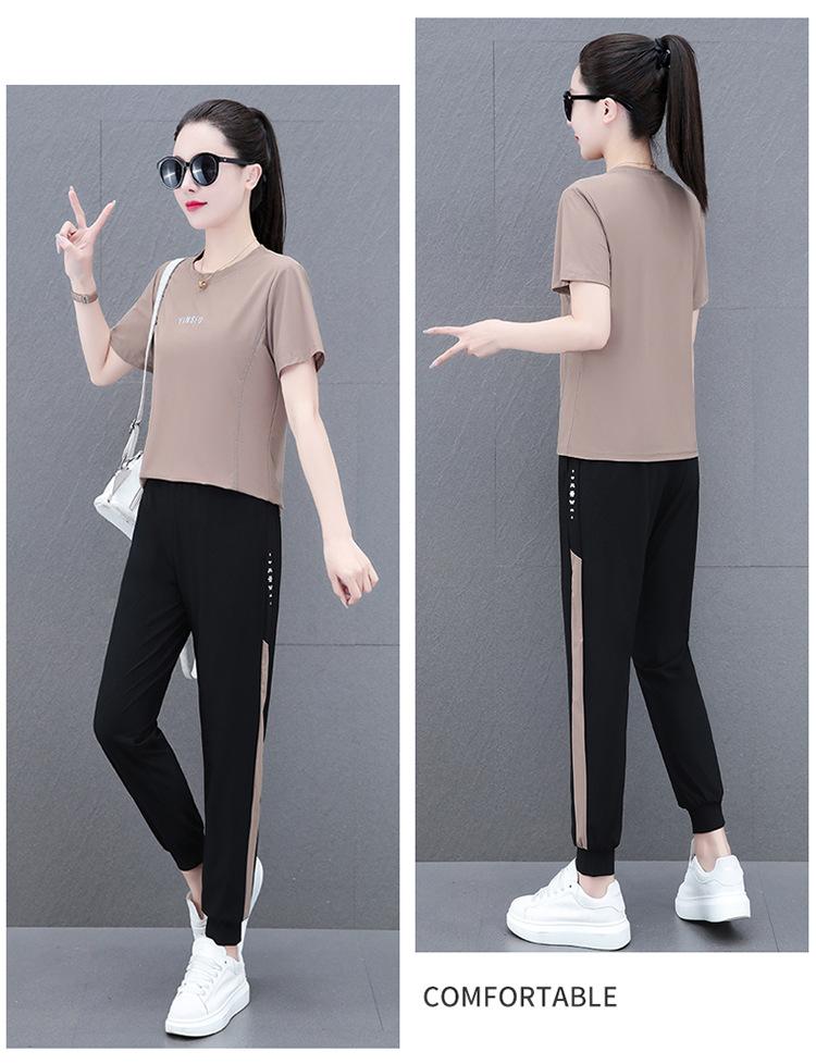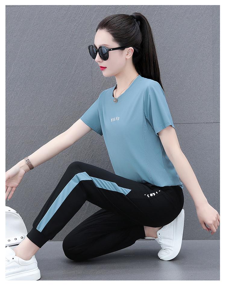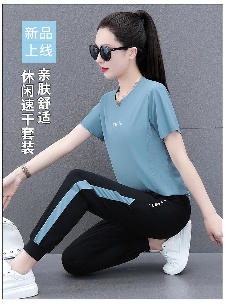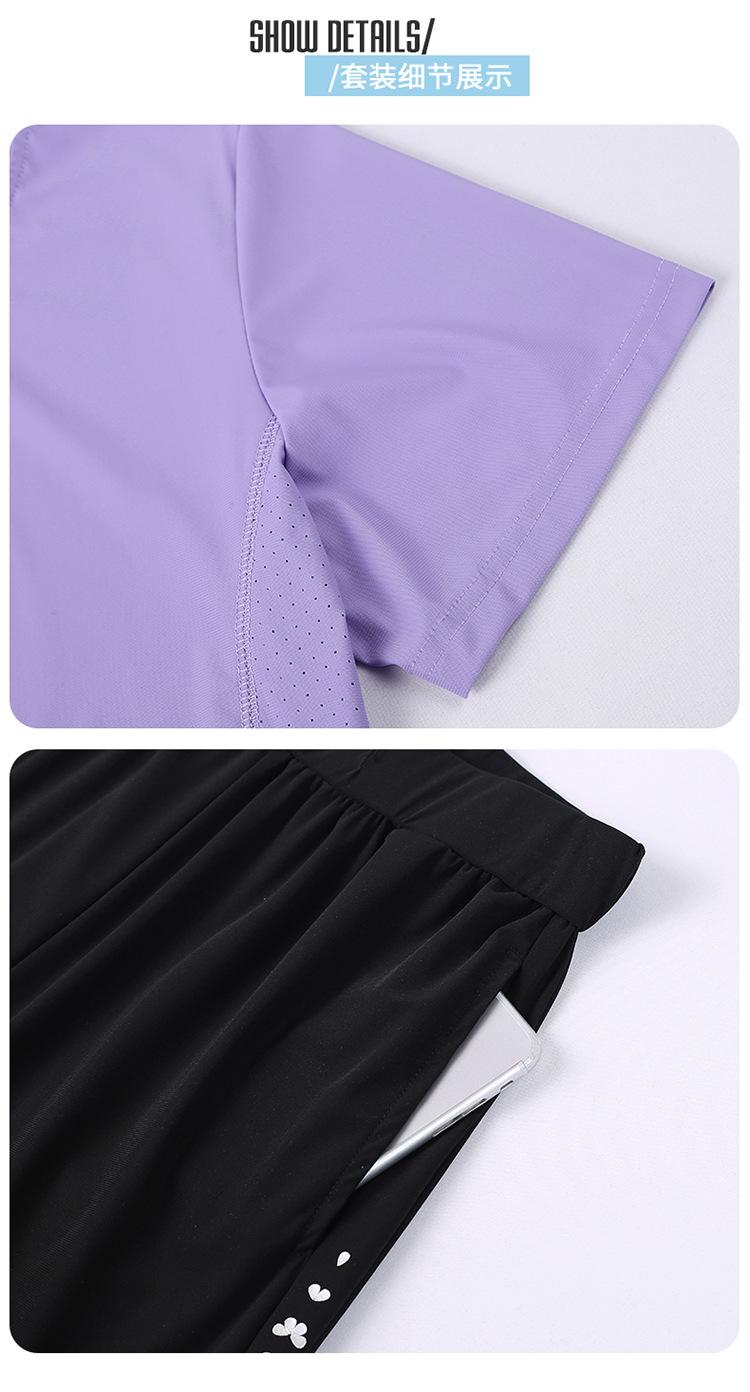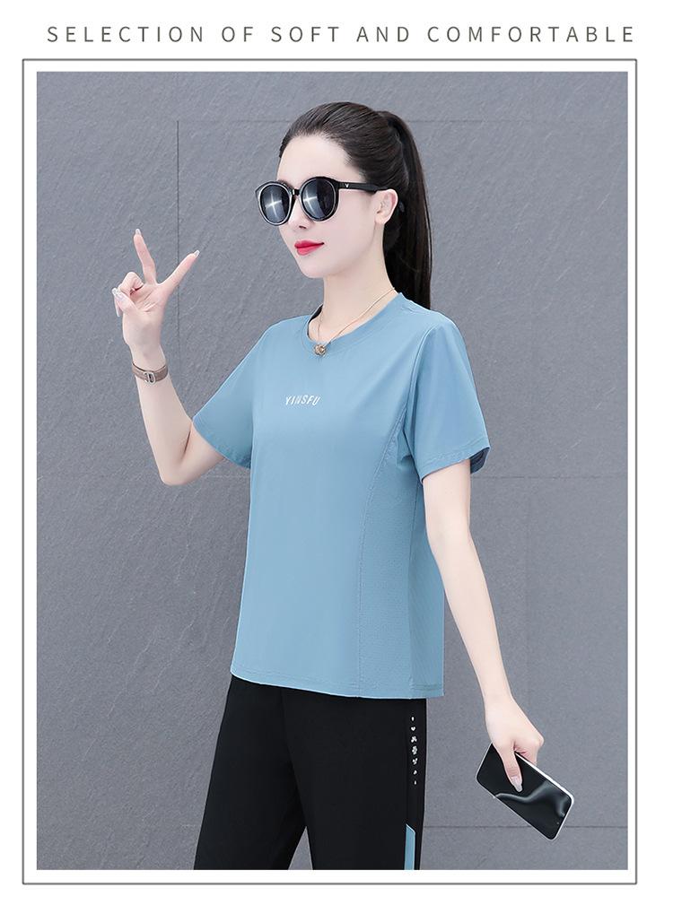 Traje Deportivo Casual de Moda Elástico de Secado Rápido de Seda de Hielo para Mujer Verano 2023 Pantalones de Manga Corta Conjunto de Dos Piezas Resistente a las Arrugas