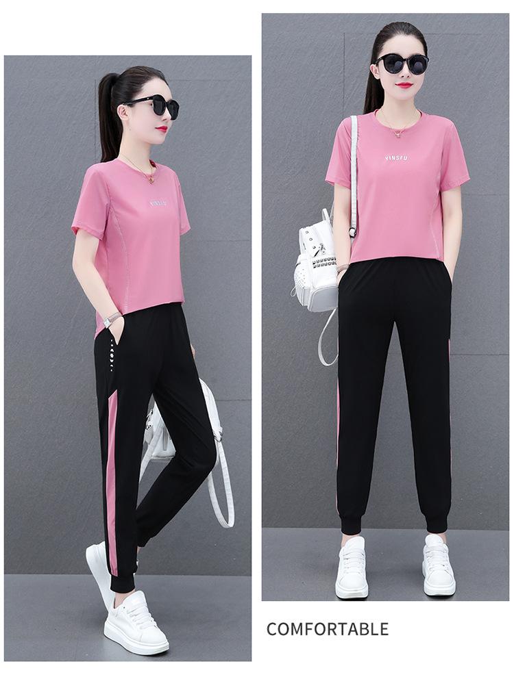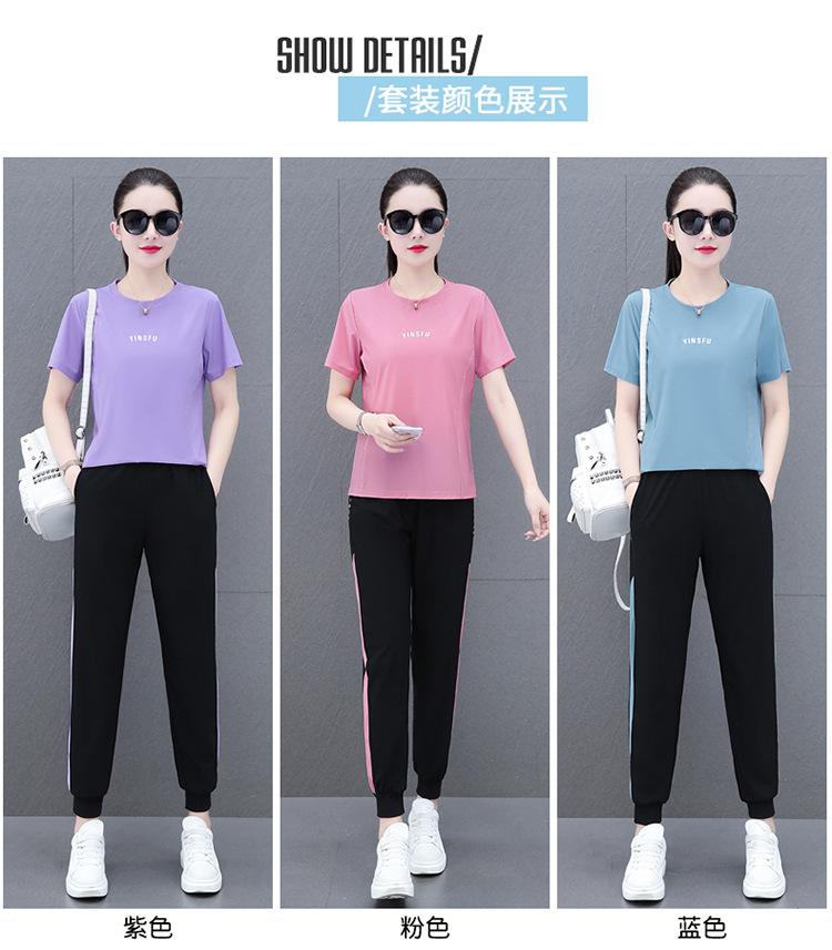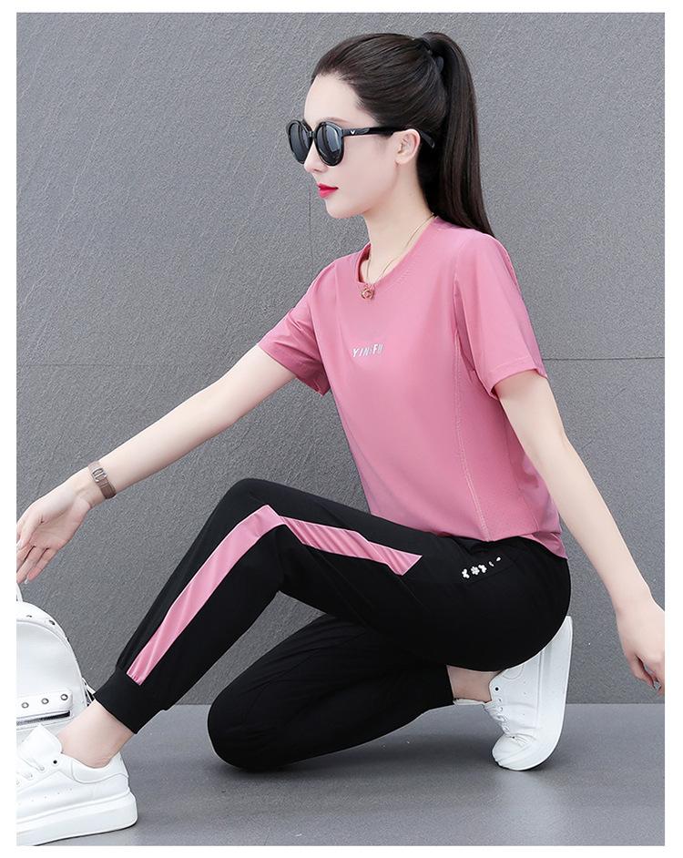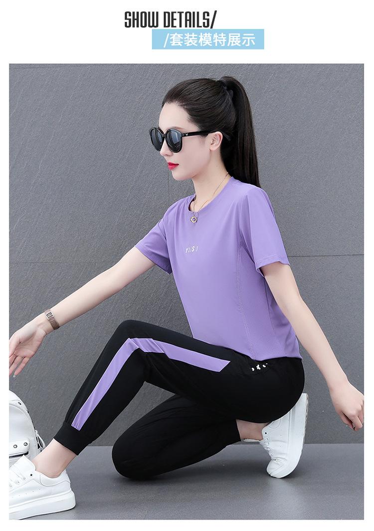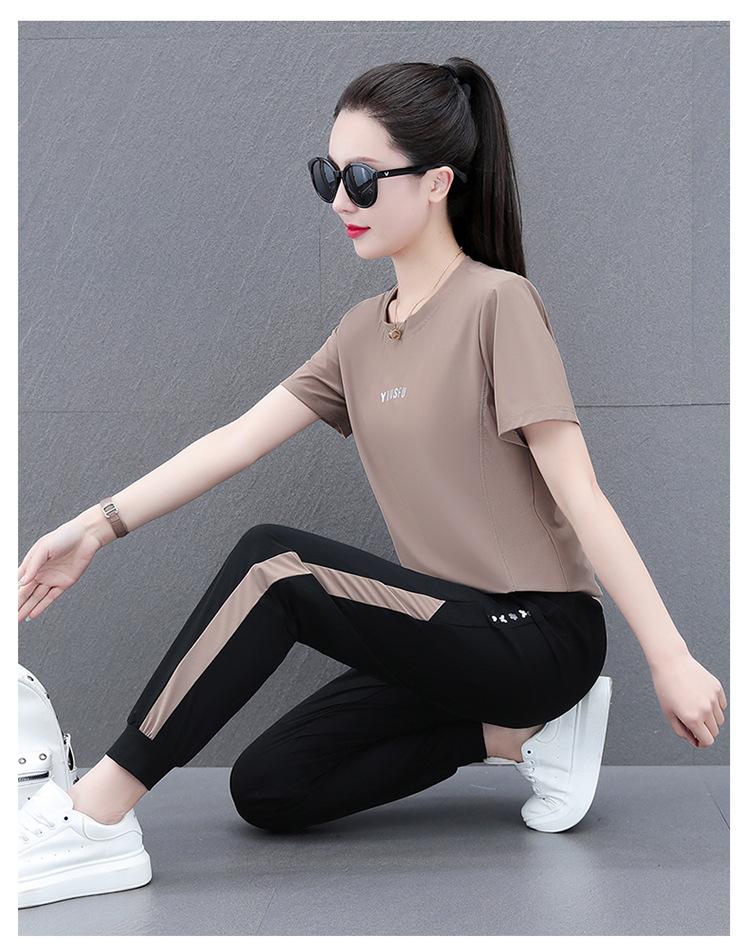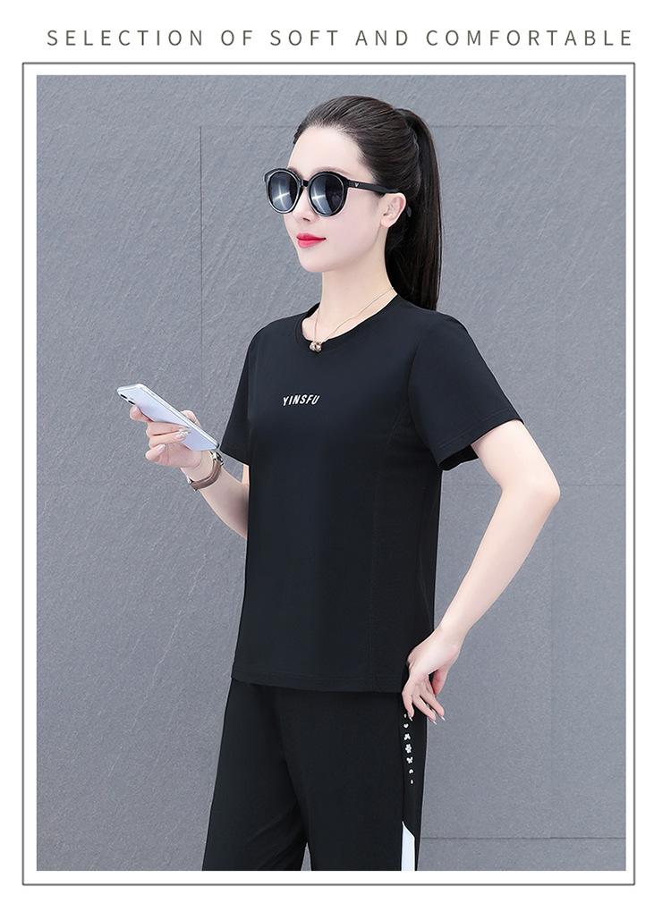 Traje Deportivo Casual de Moda Elástico de Secado Rápido de Seda de Hielo para Mujer Verano 2023 Pantalones de Manga Corta Conjunto de Dos Piezas Resistente a las Arrugas