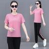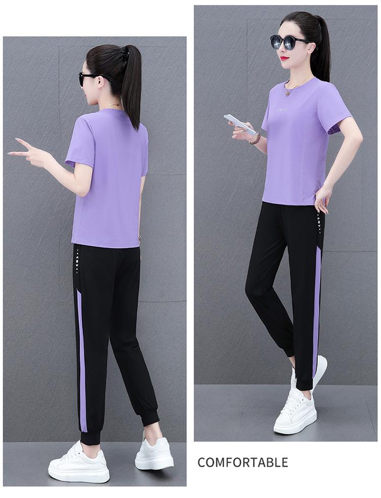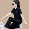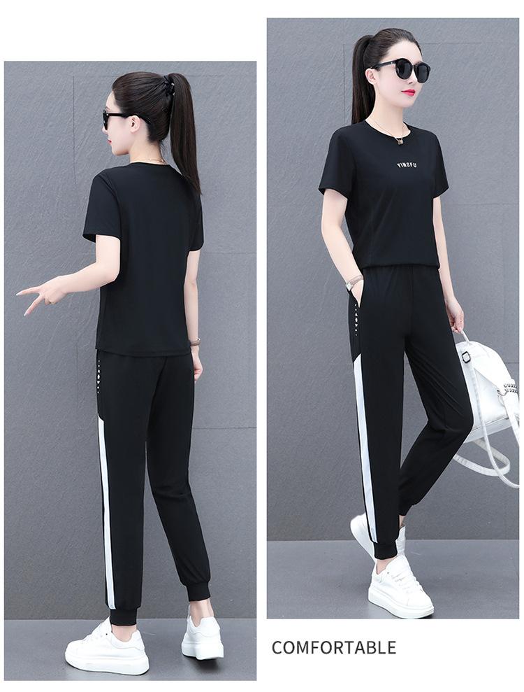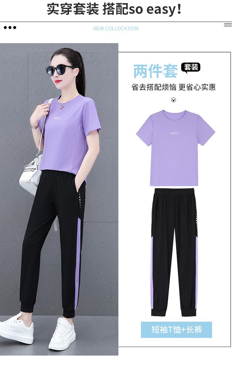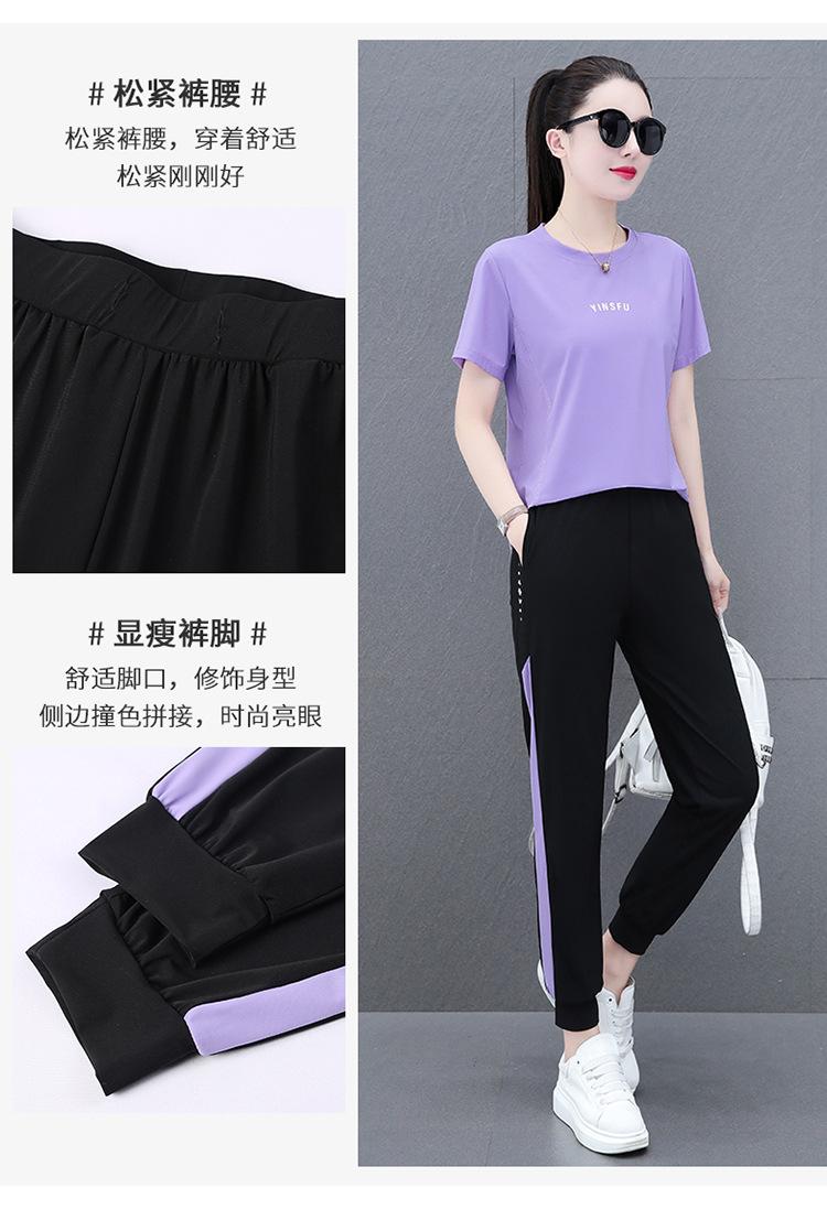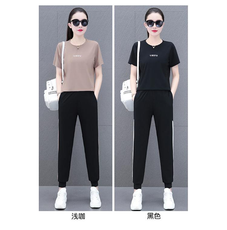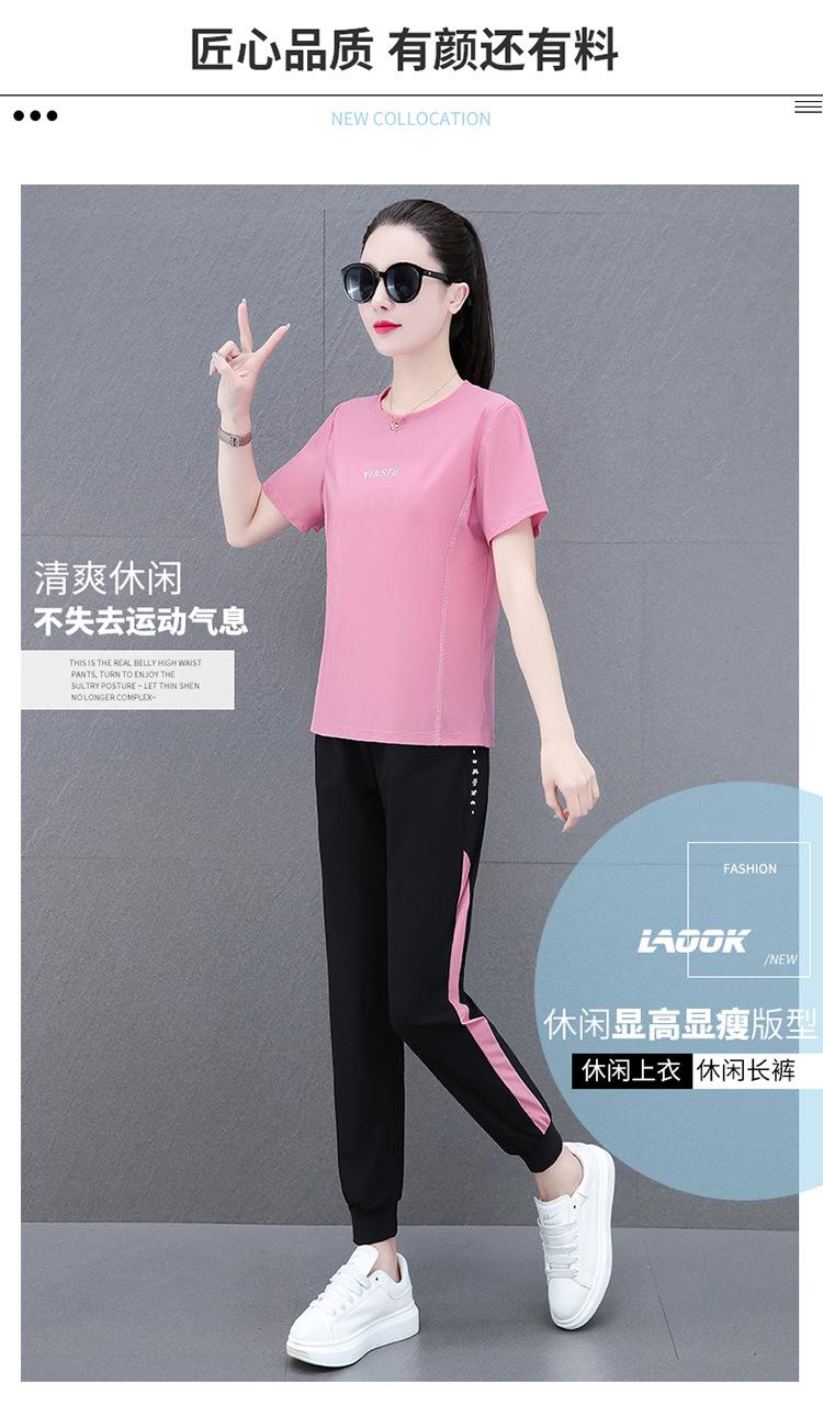 Traje Deportivo Casual de Moda Elástico de Secado Rápido de Seda de Hielo para Mujer Verano 2023 Pantalones de Manga Corta Conjunto de Dos Piezas Resistente a las Arrugas