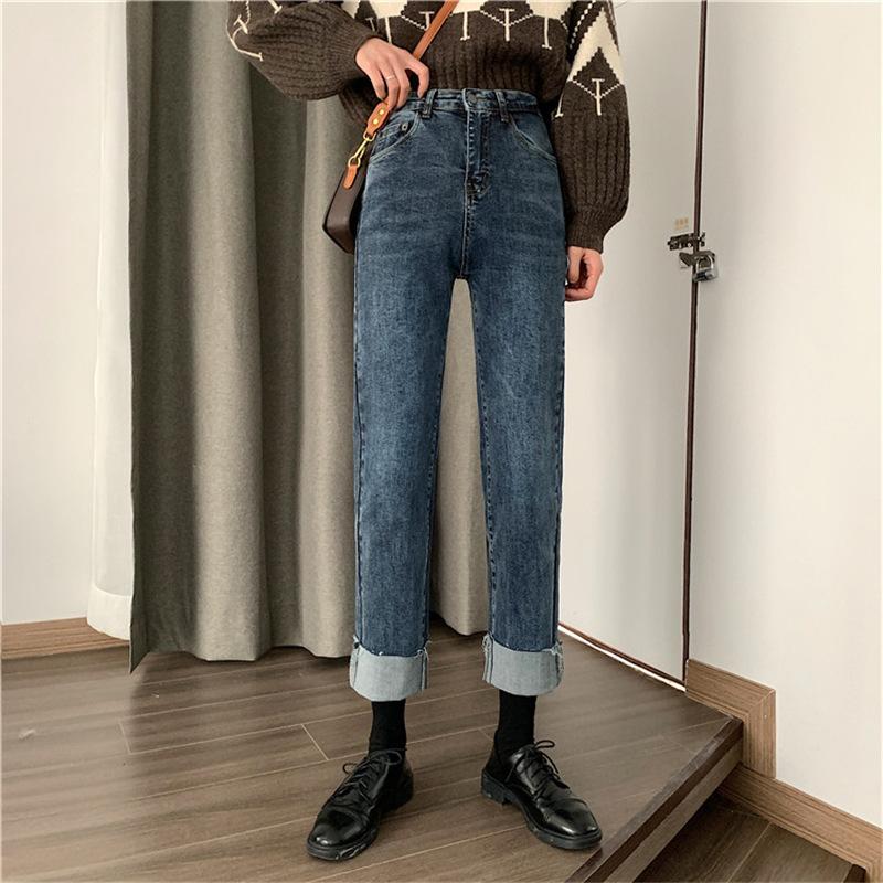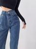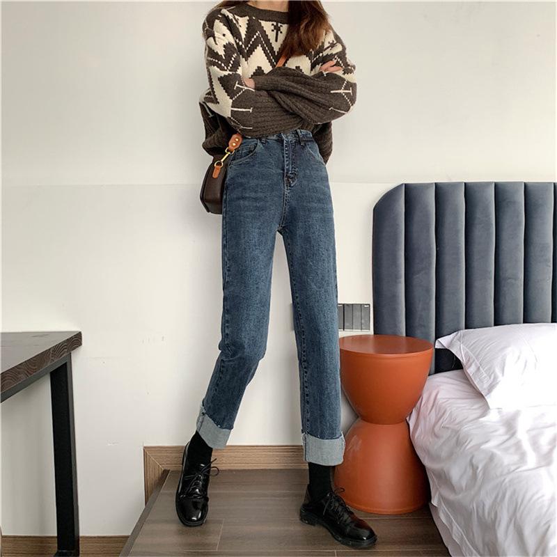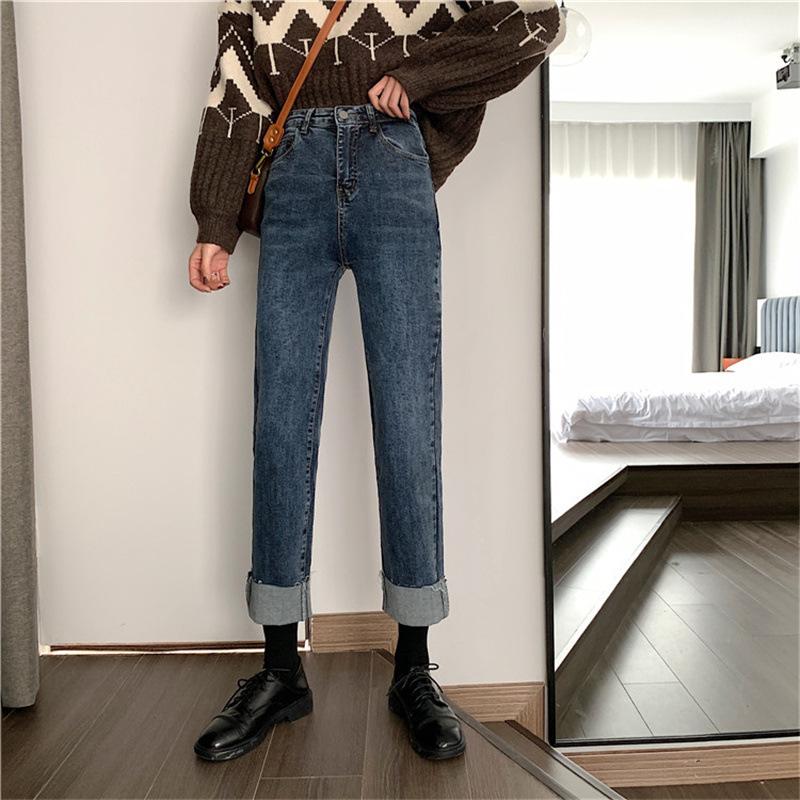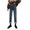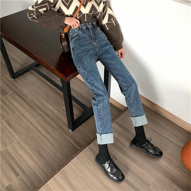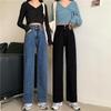 Principios de primavera pequeños jeans de mujer nuevos de cintura alta adelgazantes Diseño Americano retro pantalones rectos de pierna ancha ins mujer