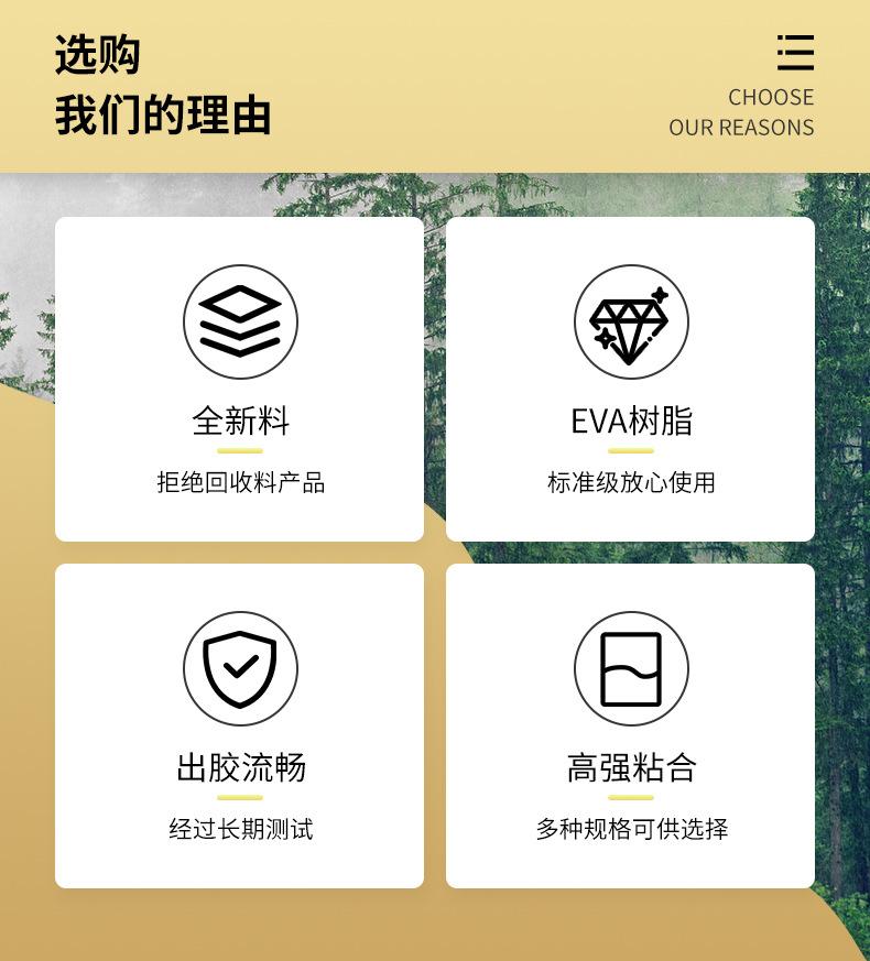 Mainly used for bonding packaging, toys, digital appliances, accessories, shoe materials, etc