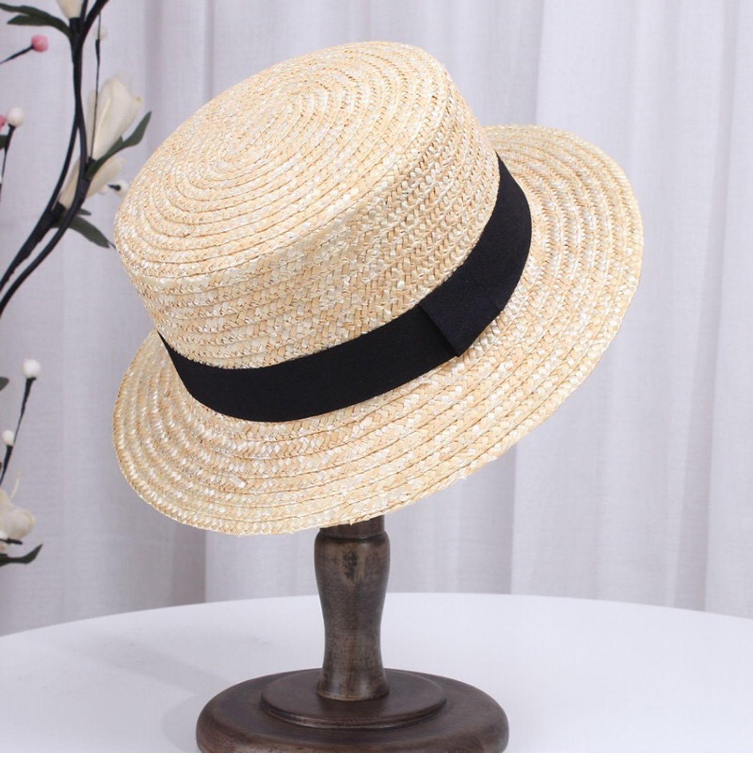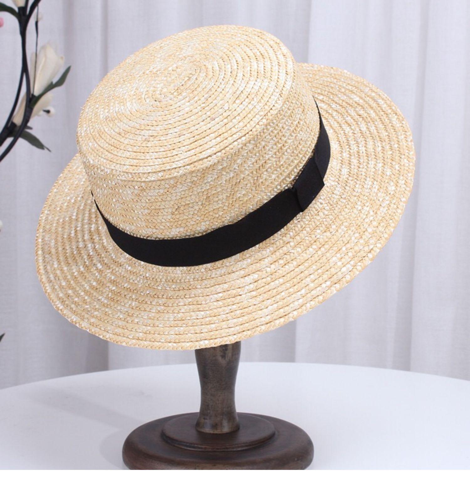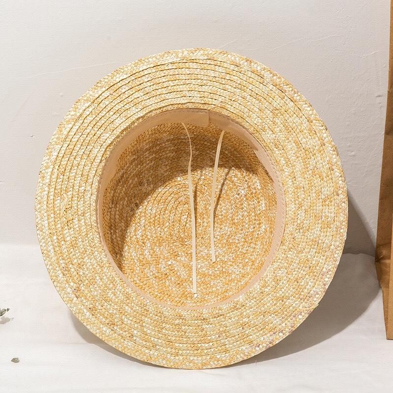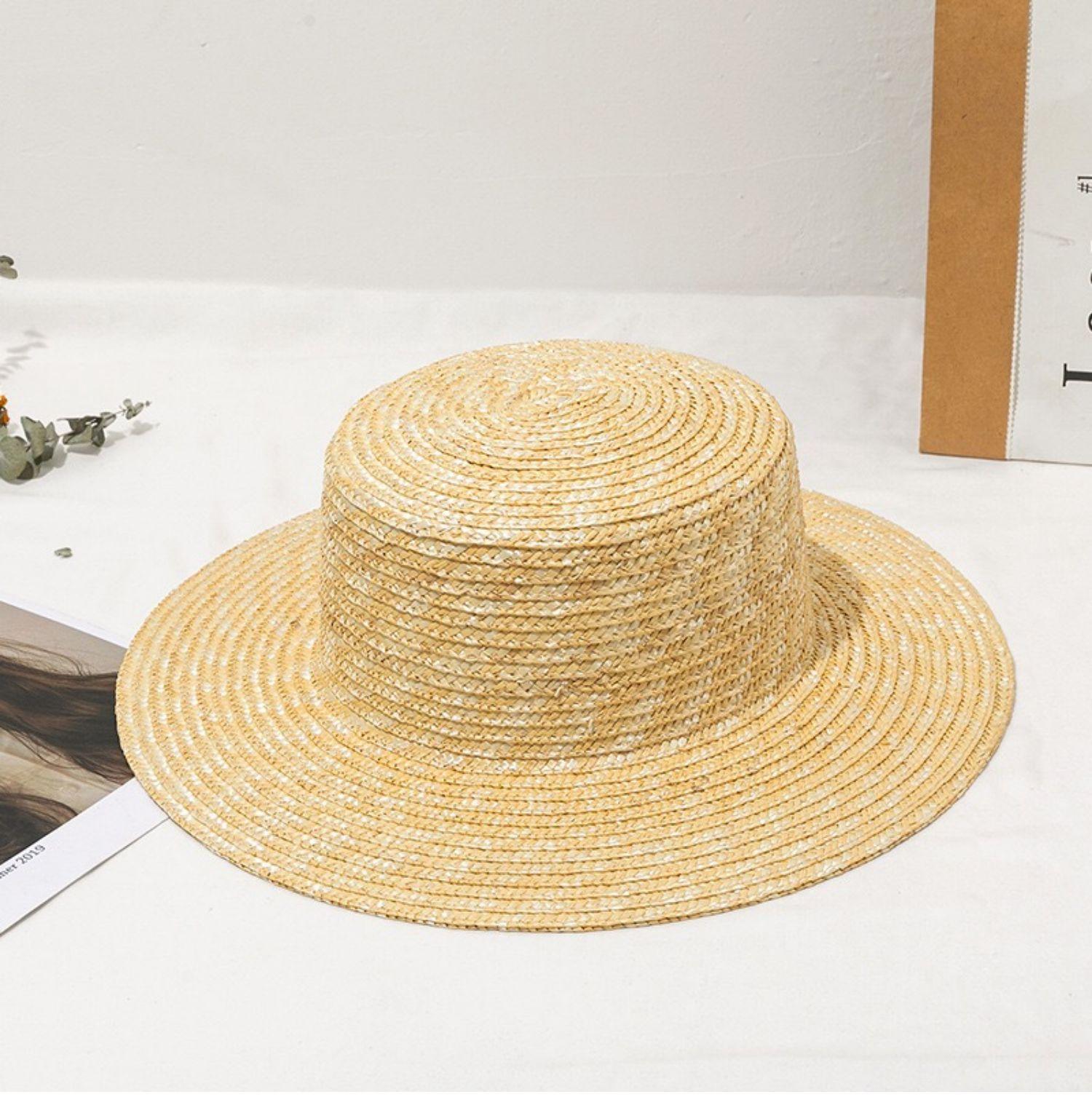 Sombrero de paja fina de ala ancha y parte superior plana. Sombrero parasol europeo y americano. Sombrero de copa famoso en Internet para viajar. Sombrero de paja de playa para mujer en verano.