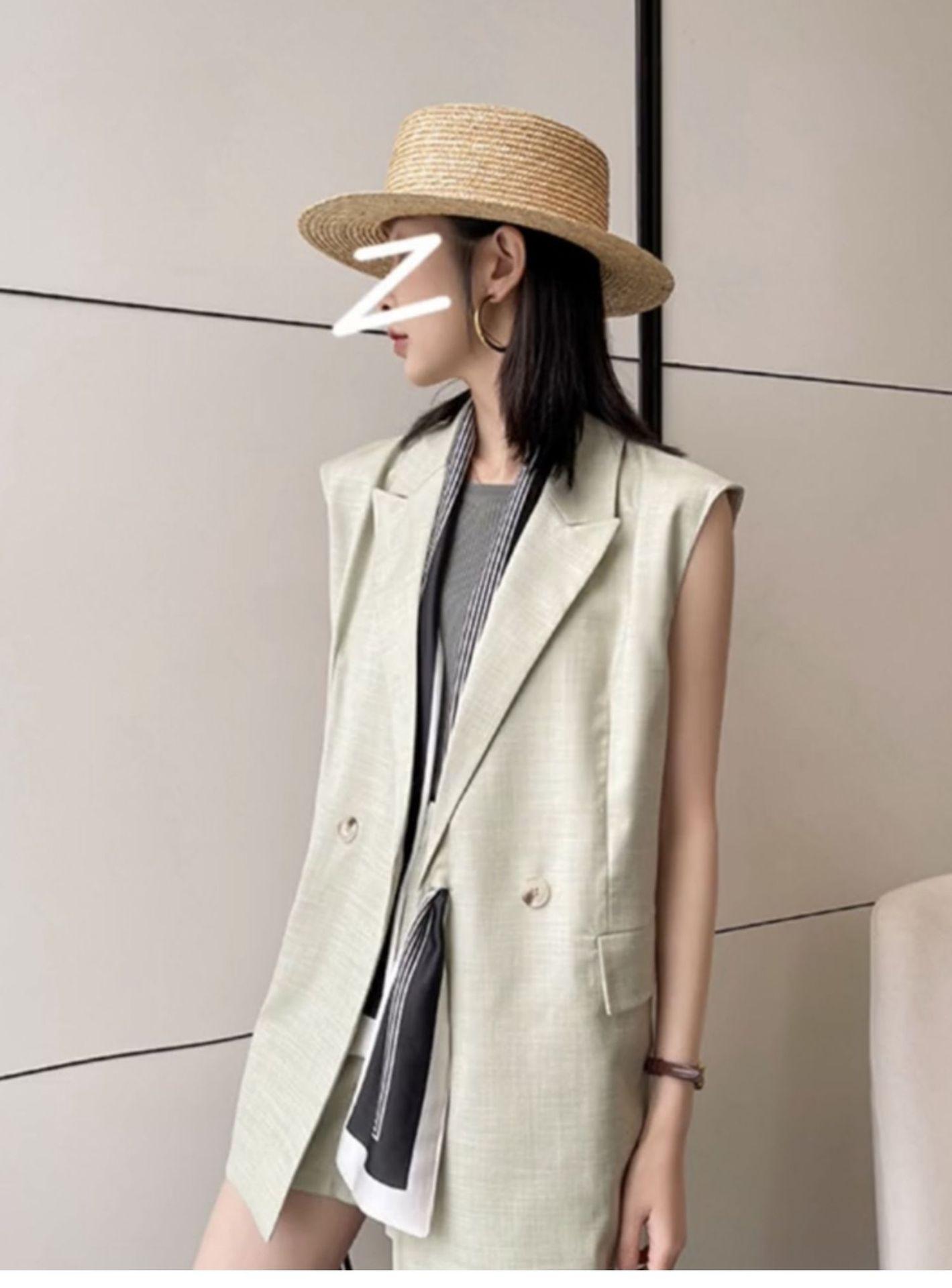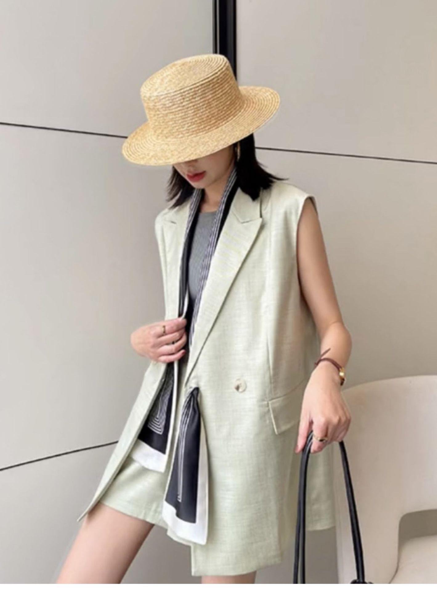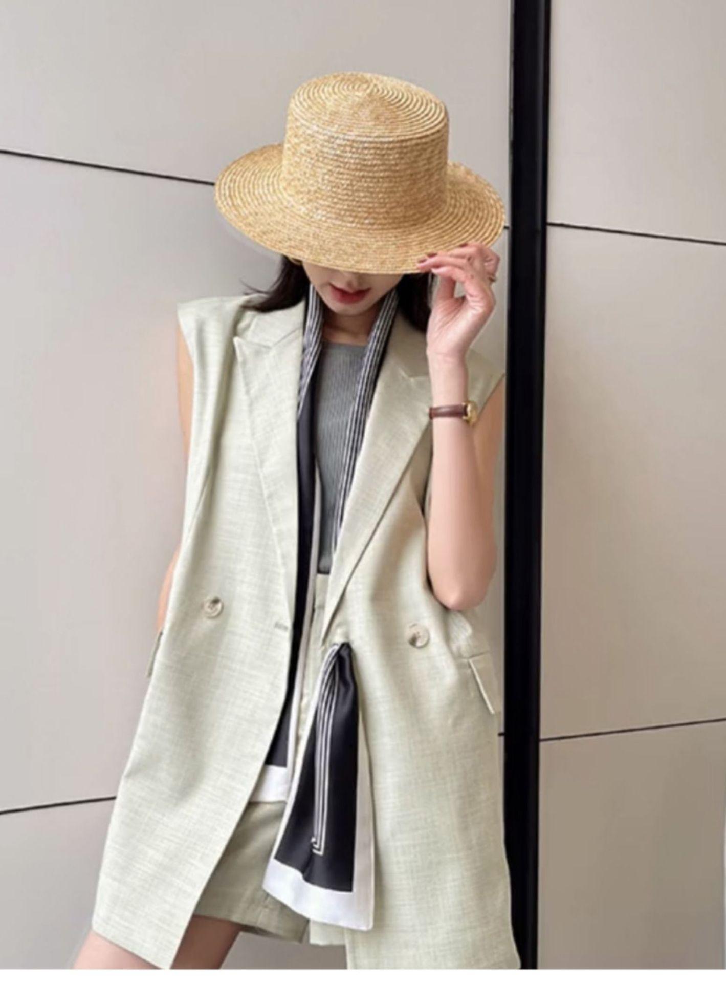 Sombrero de paja fina de ala ancha y parte superior plana. Sombrero parasol europeo y americano. Sombrero de copa famoso en Internet para viajar. Sombrero de paja de playa para mujer en verano.