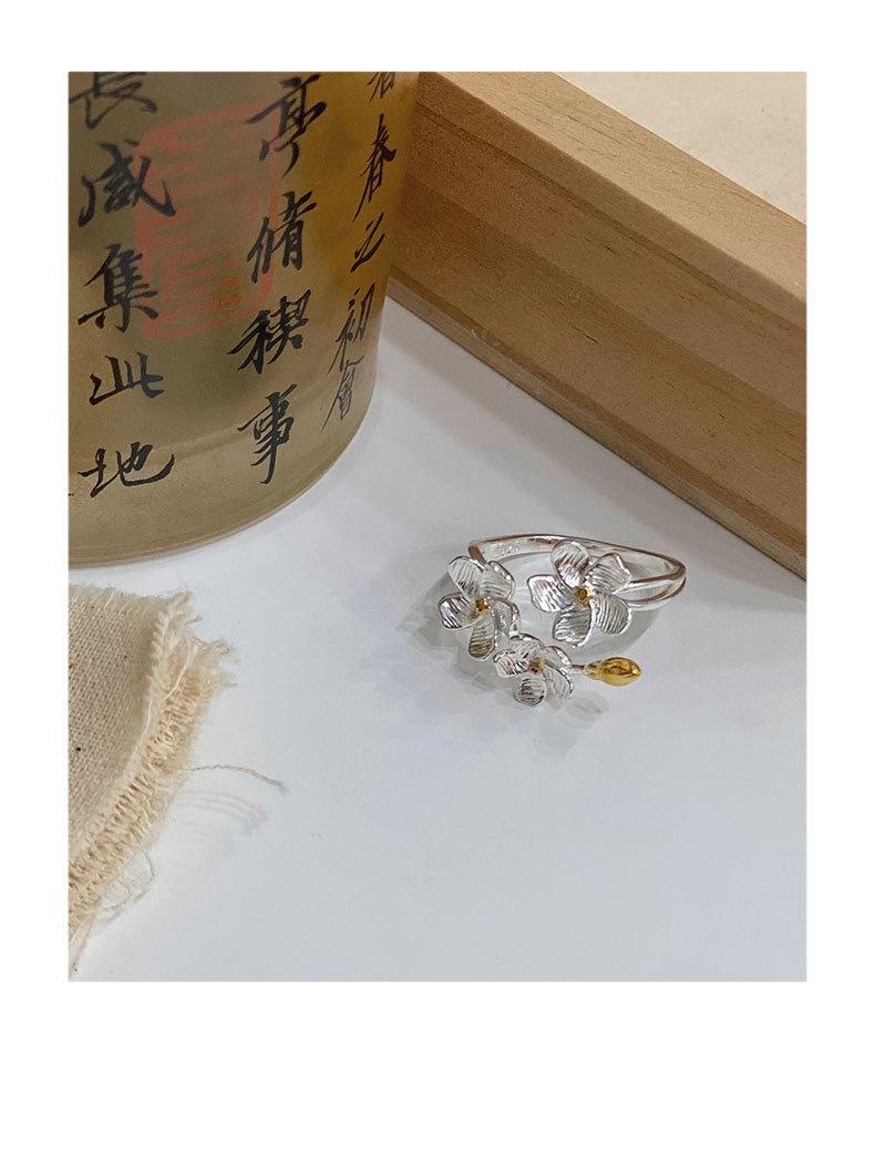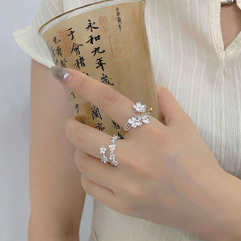 Anillo de Flor Dulce para Mujer Pétalo Elegante Moda Personalidad Plata S925 Chapado Anillo Abierto Anillo de Dedo Ins