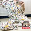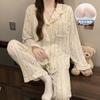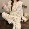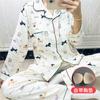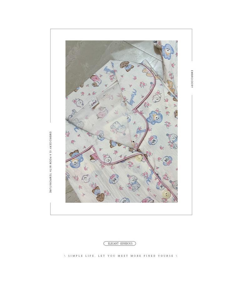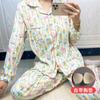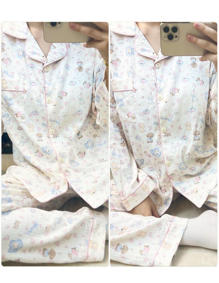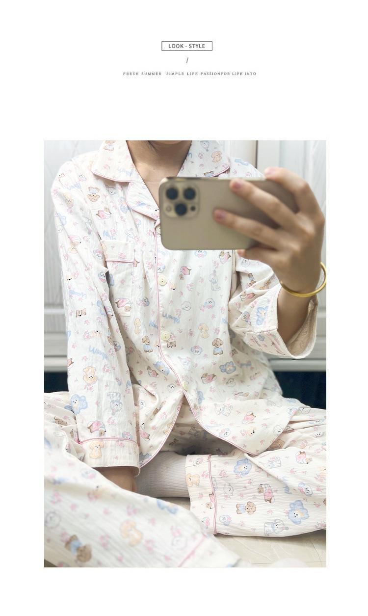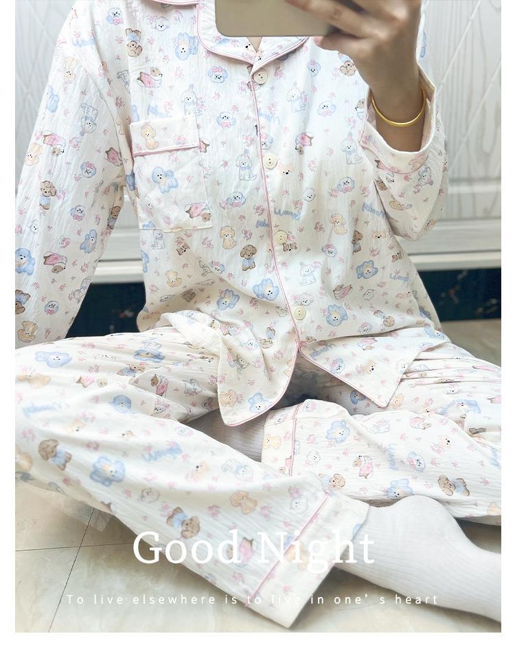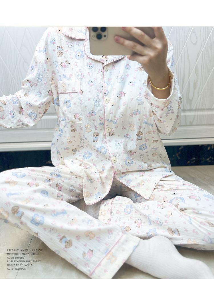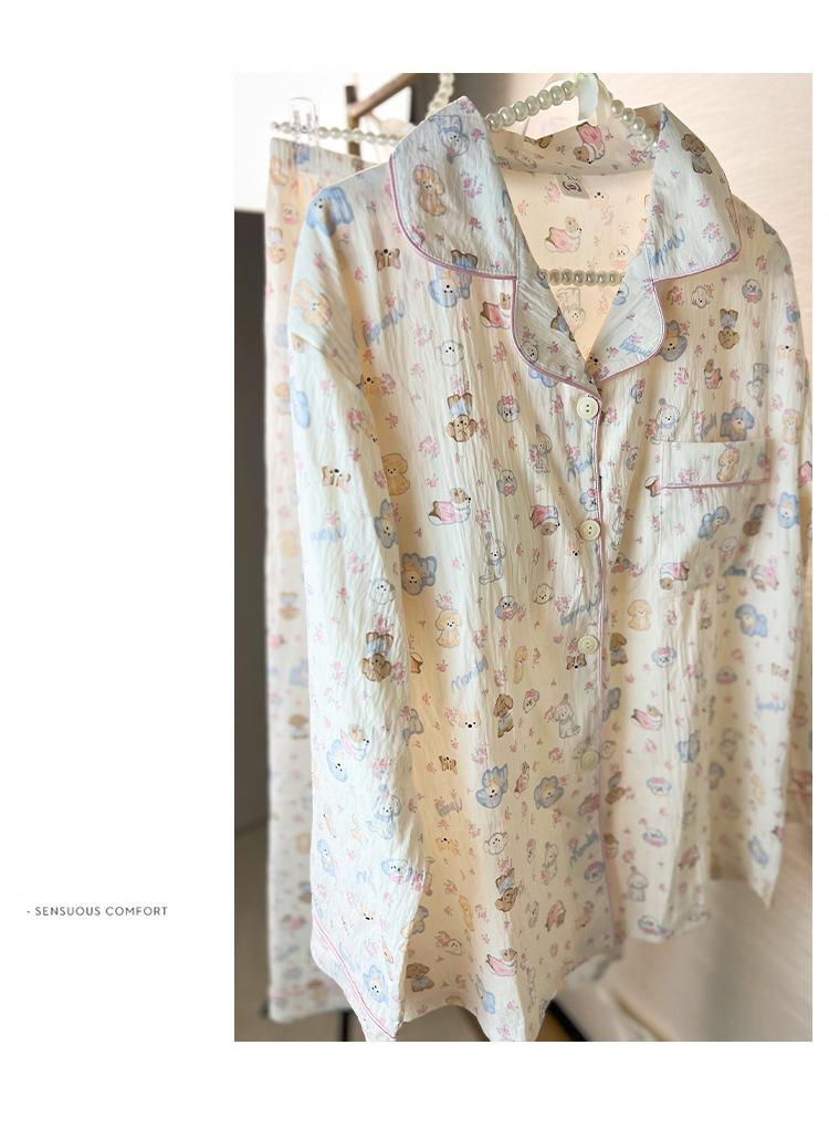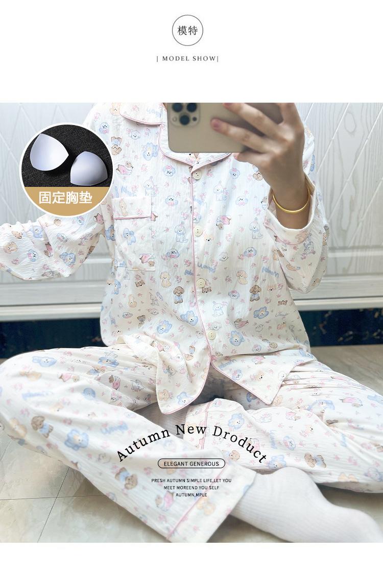 Pijama de algodón de nube para mujer, primavera y otoño, nuevo cárdigan de solapa con dibujos animados bonitos y almohadilla para el pecho, conjunto de manga larga, ropa para el hogar