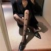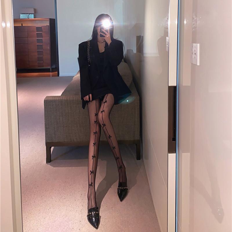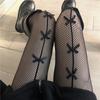 Medias de red huecas en blanco y negro con lazo de seda negra YH, estilo japonés, puro deseo, pareja, hermosas piernas, pantimedias sexys, encaje fino