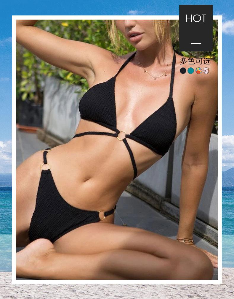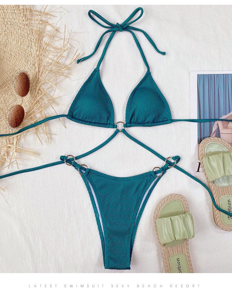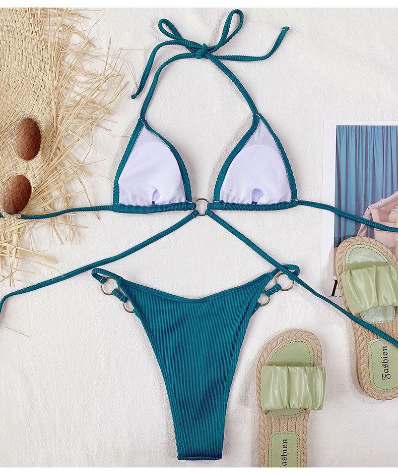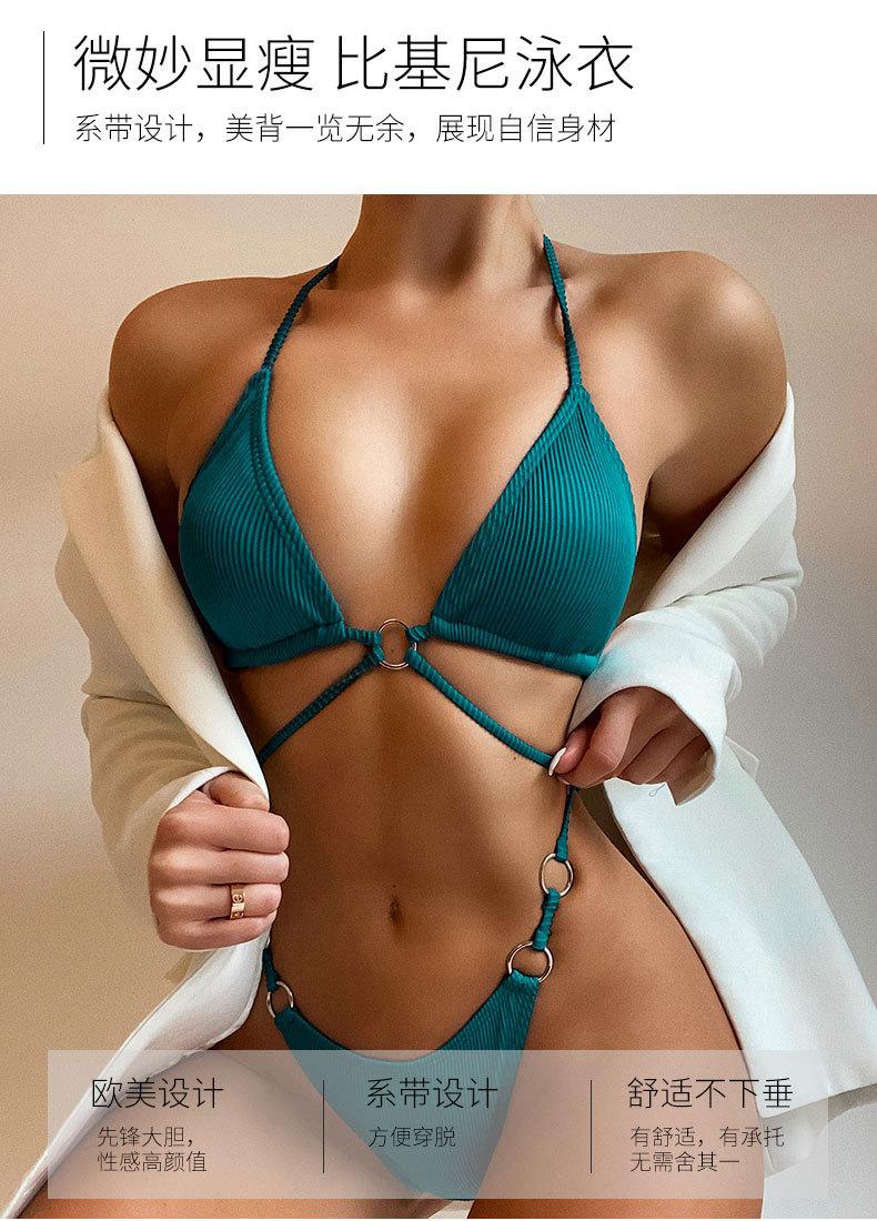 Traje de baño para mujer, bikini sexy con espalda descubierta y tirantes, bikini de comercio exterior europeo y americano, traje de baño pequeño, fresco, de color sólido