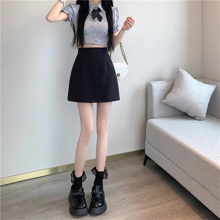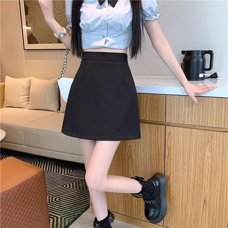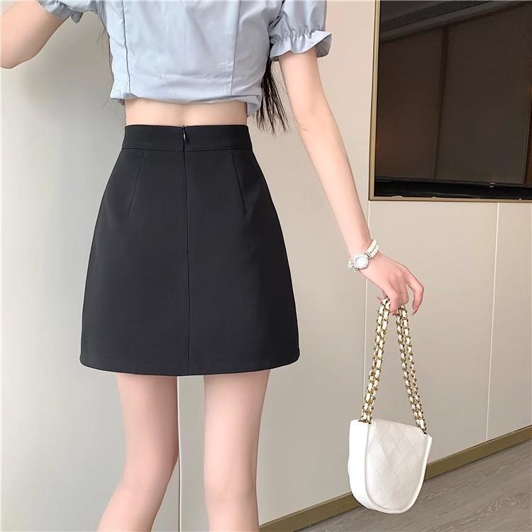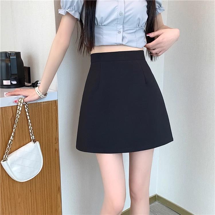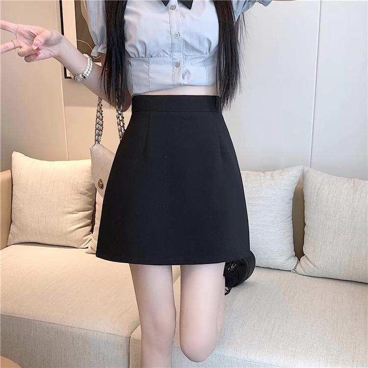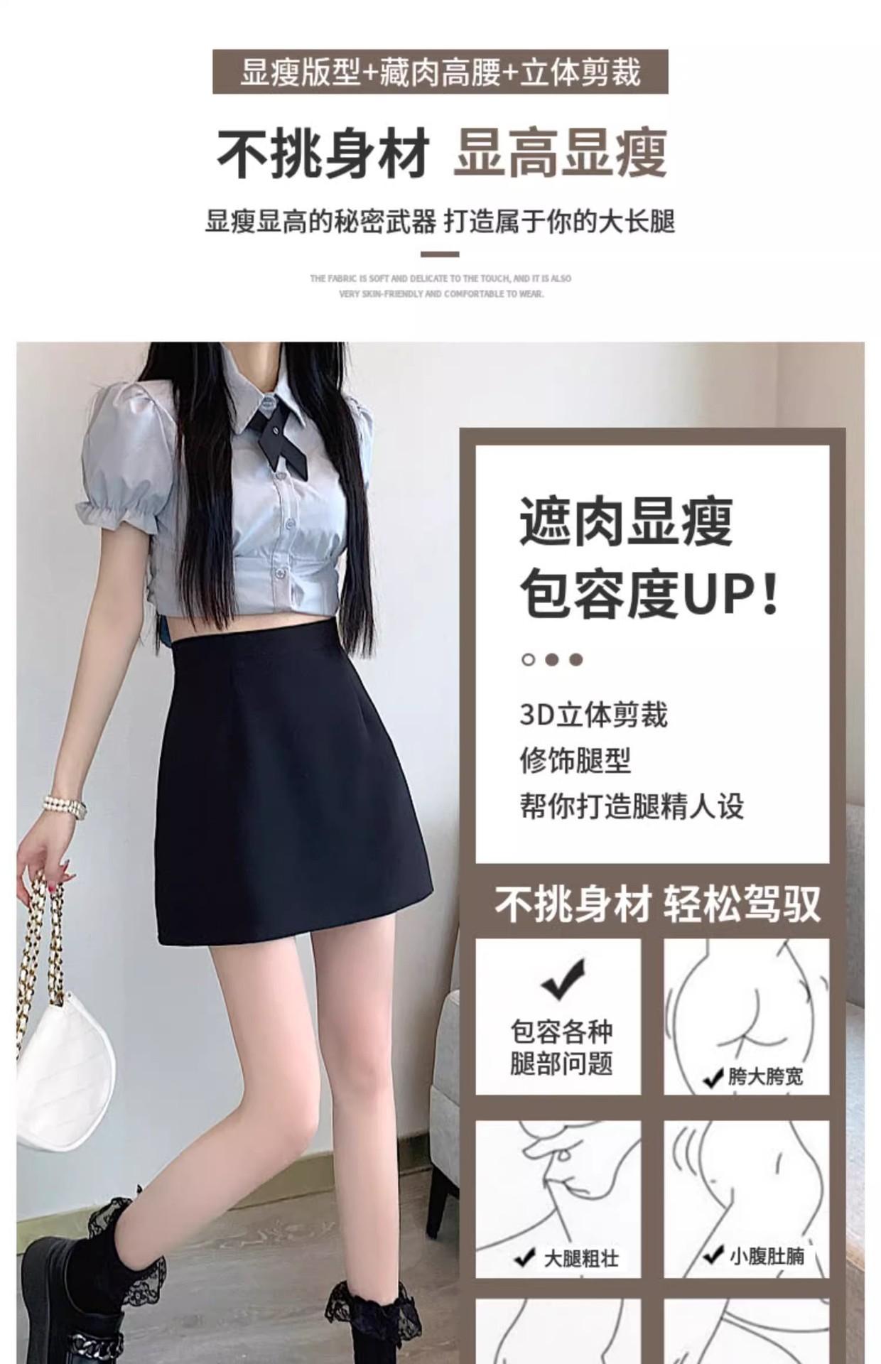 Falda de Traje Negro para Mujer para Primavera y Verano 2024, Falda Lápiz de Cintura Alta, Falda A-Line, Falda de Dobladillo Ancho