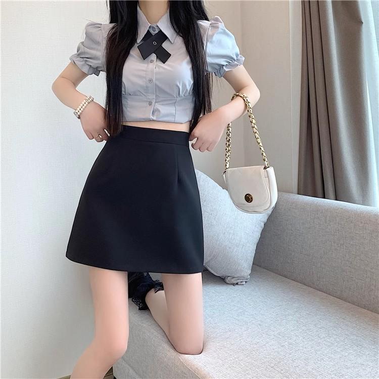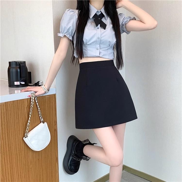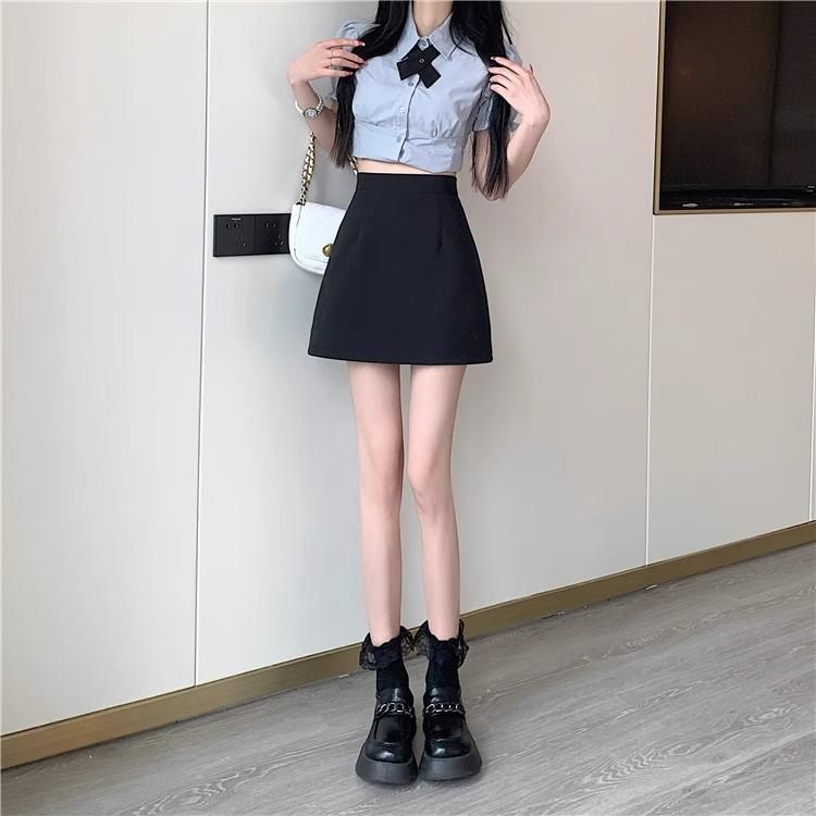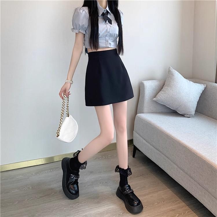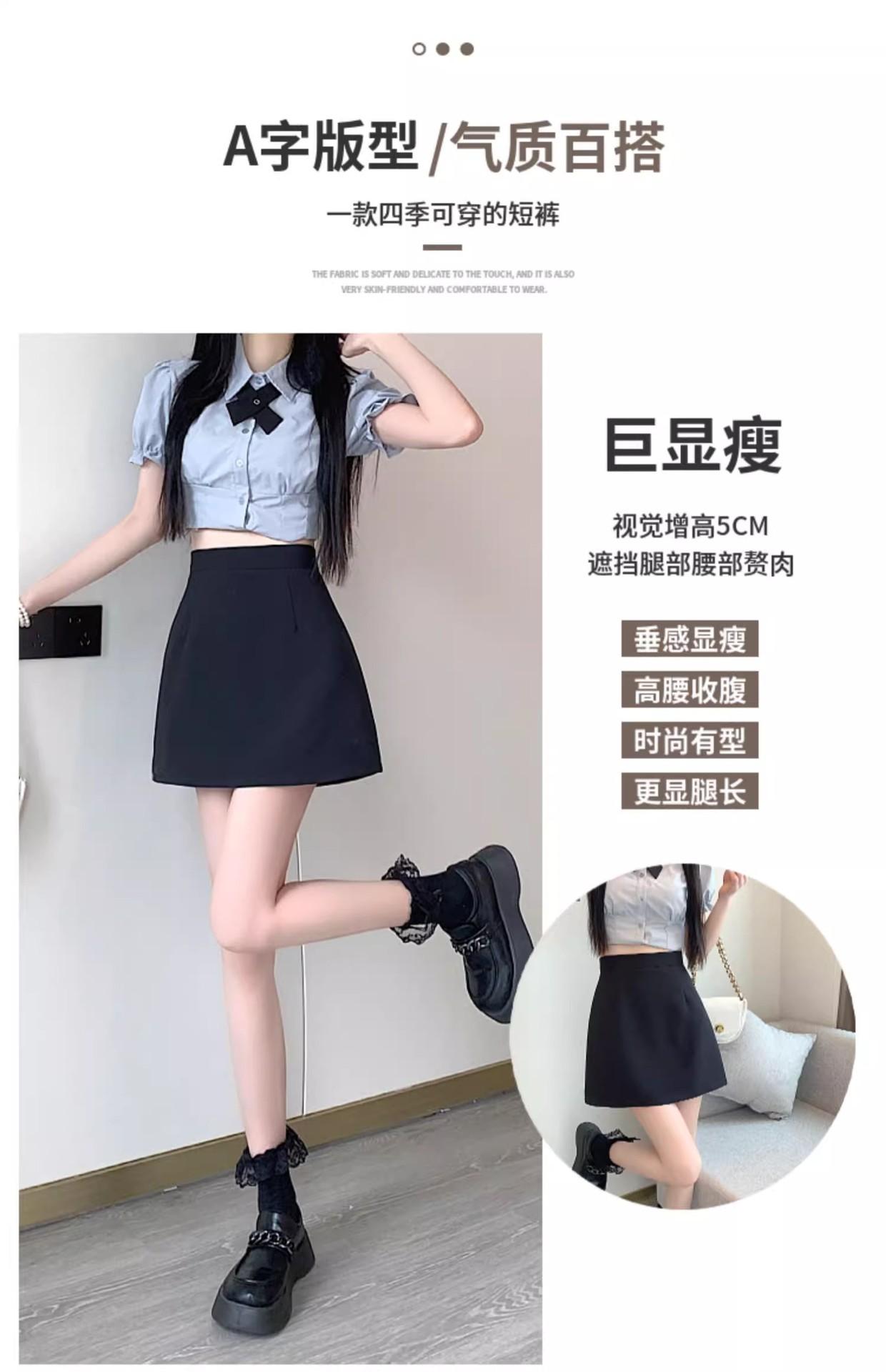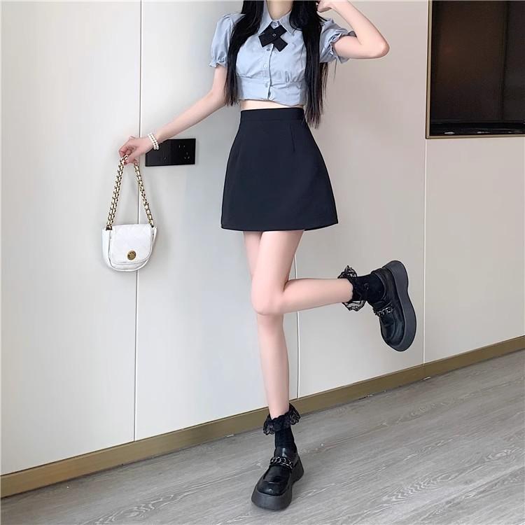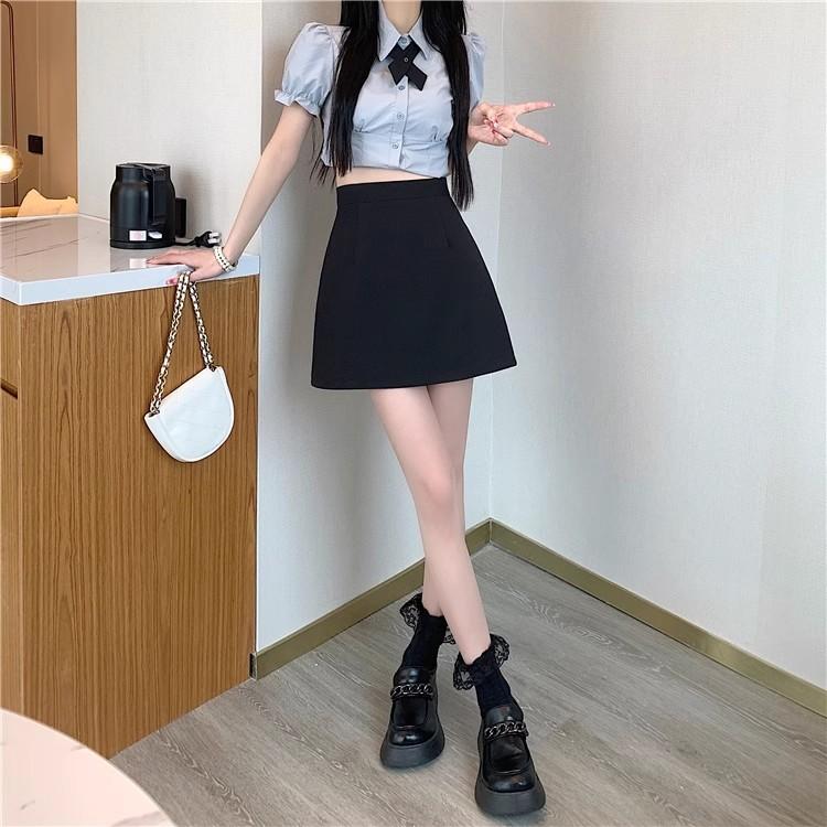 Falda de Traje Negro para Mujer para Primavera y Verano 2024, Falda Lápiz de Cintura Alta, Falda A-Line, Falda de Dobladillo Ancho