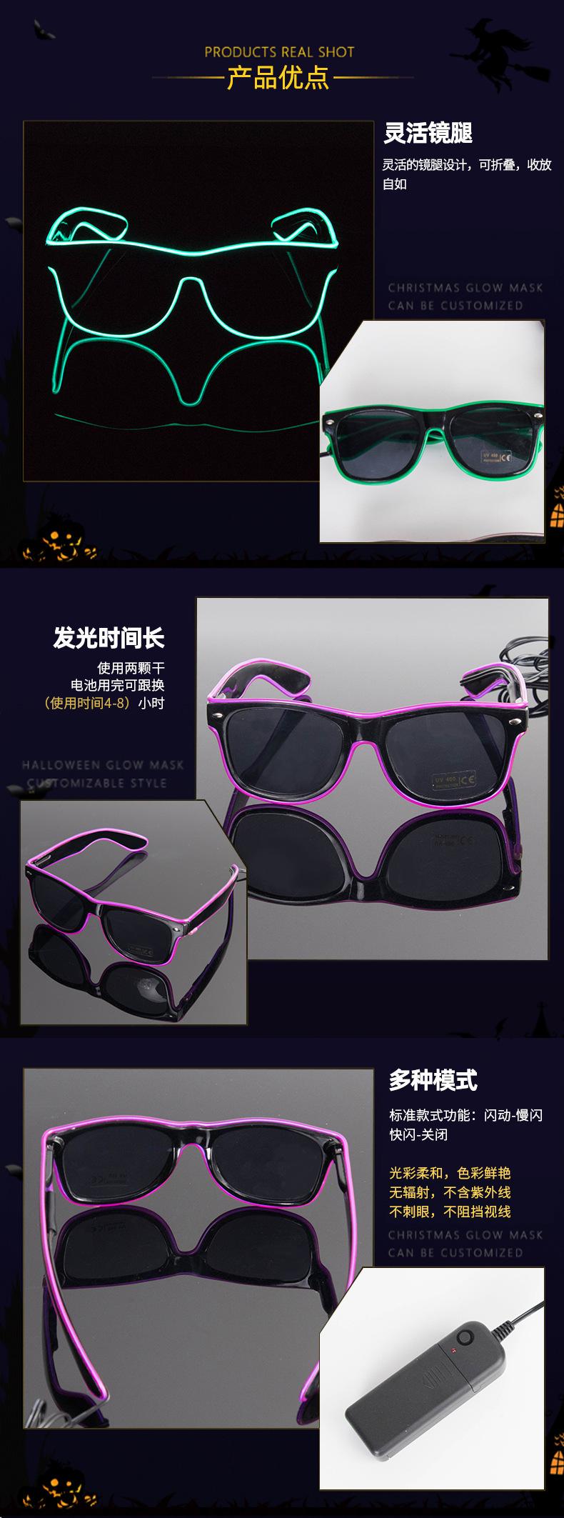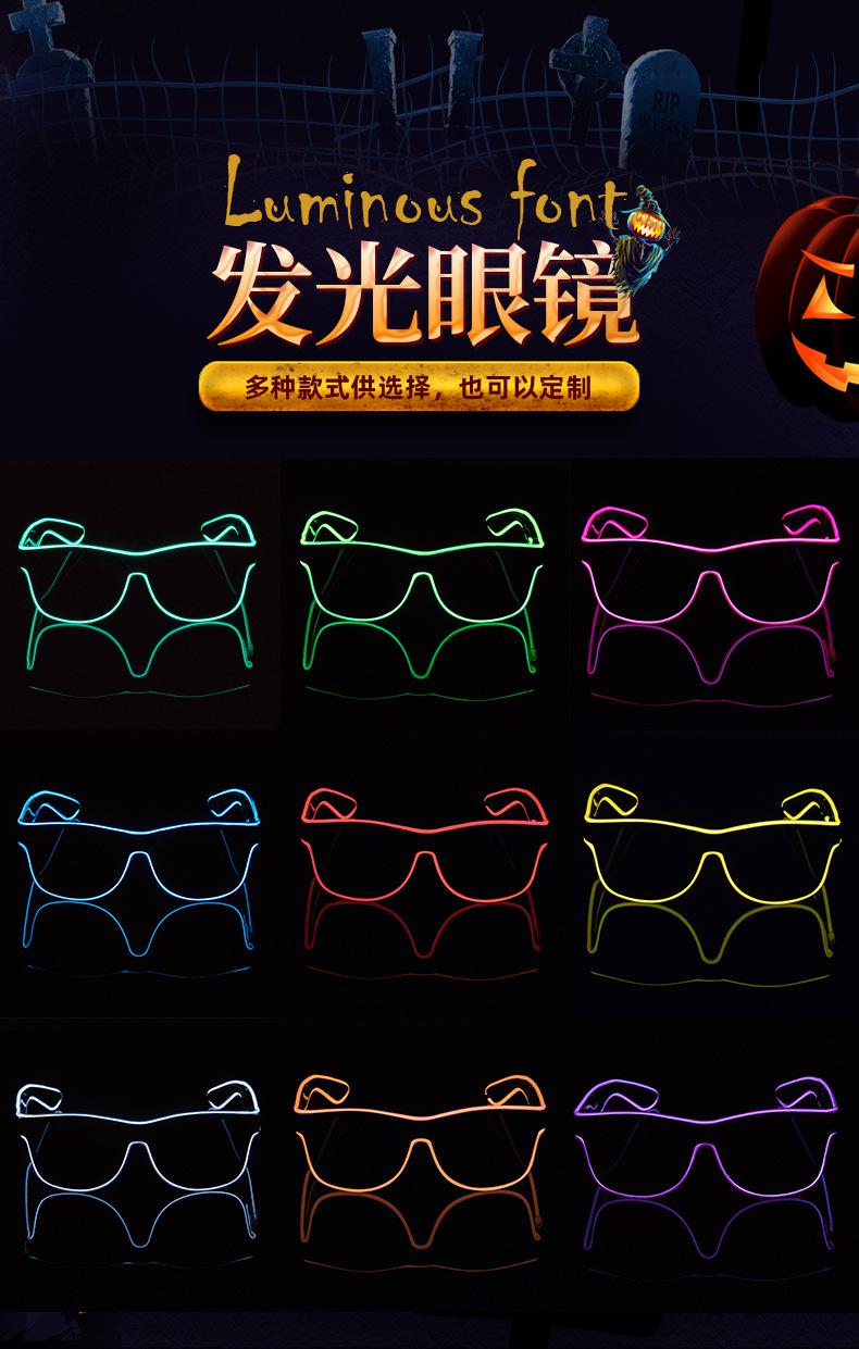 Venta al por mayor en stock, gafas de luz fría EL, gafas LED, decoración de Halloween, bar, fiesta, gafas geniales y brillantes