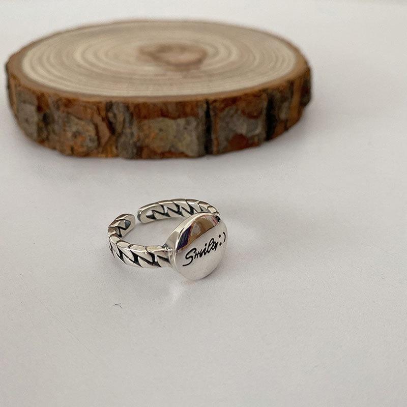 Anillo Redondo de Letra Retro Estilo Coreano Femenino Ins Punk Elegante Estudiante Simple Abierto Anillo para Dedo Índice