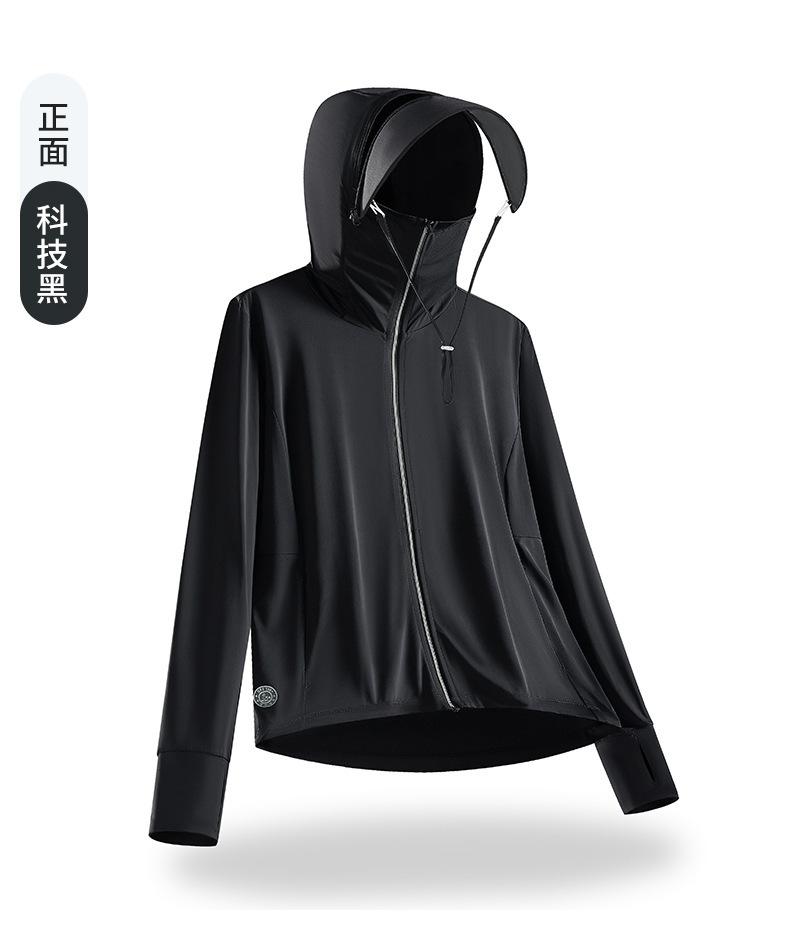 Ropa de Protección Solar de Hilado Original UPF Ropa de Protección Solar de Seda de Hielo de Verano para Mujer Protección UV Transpirable Abrigo de Ala de Sombrero de Goma Negra para Hombre