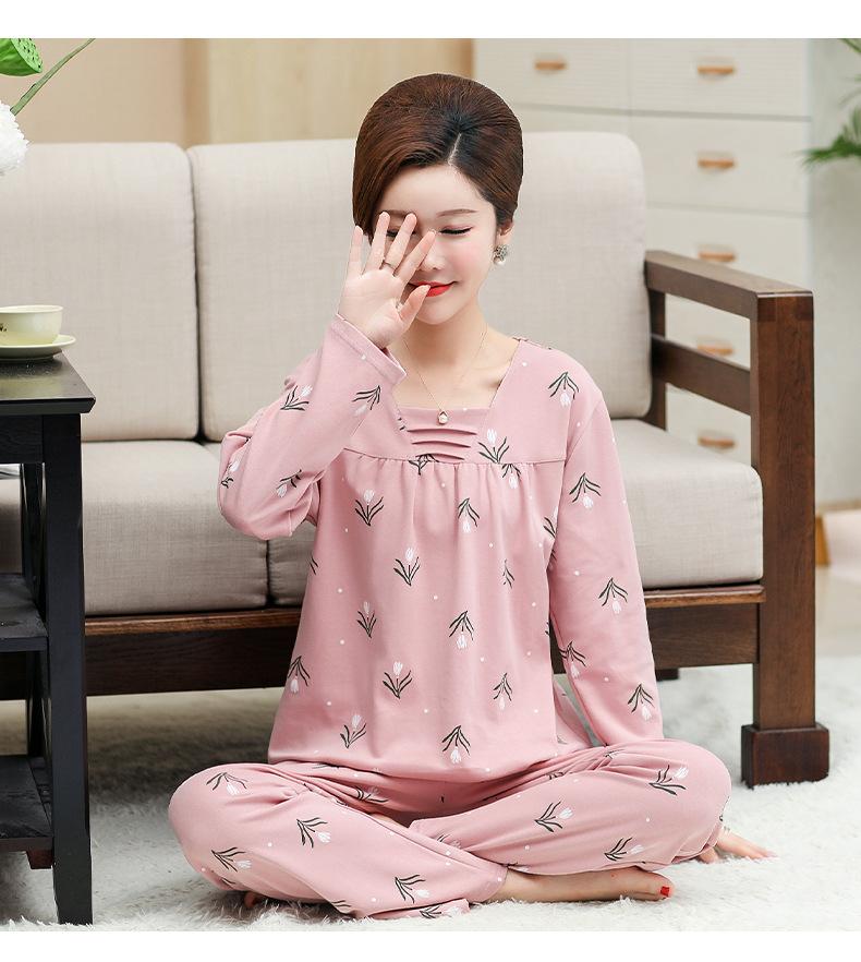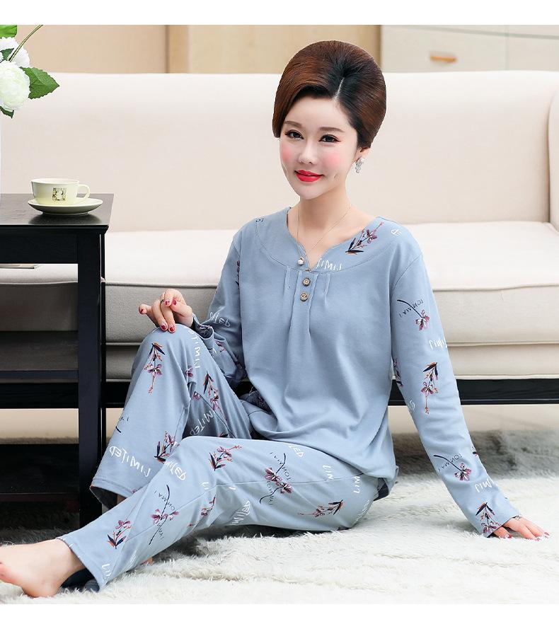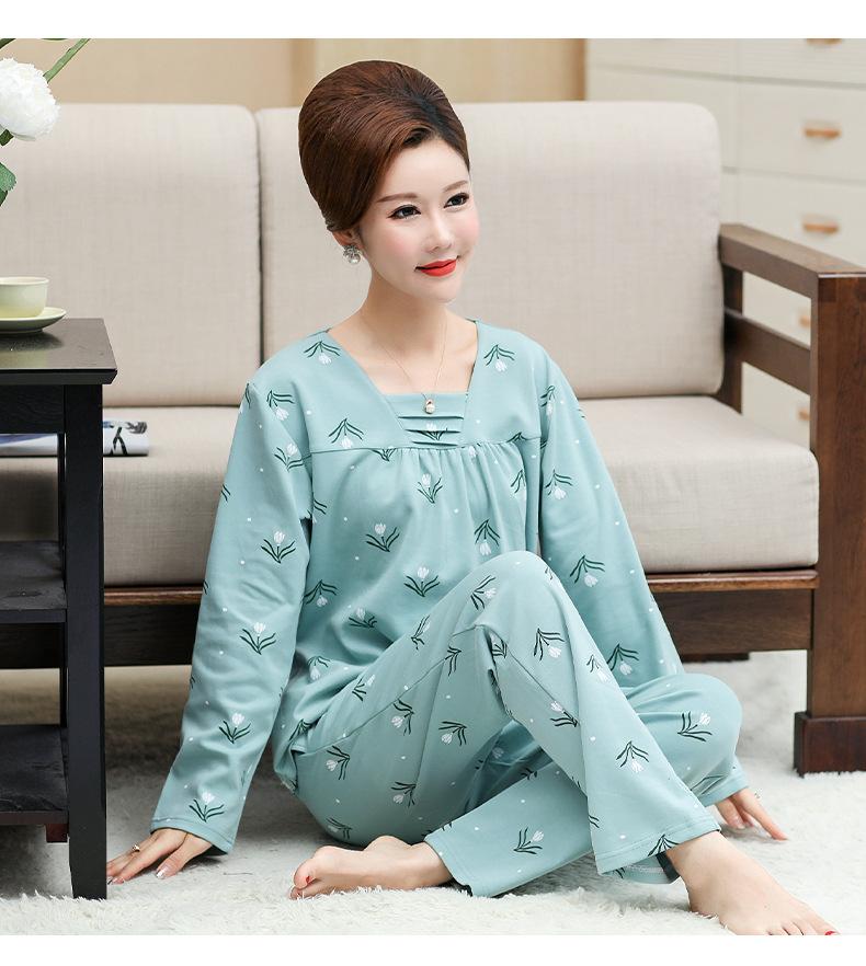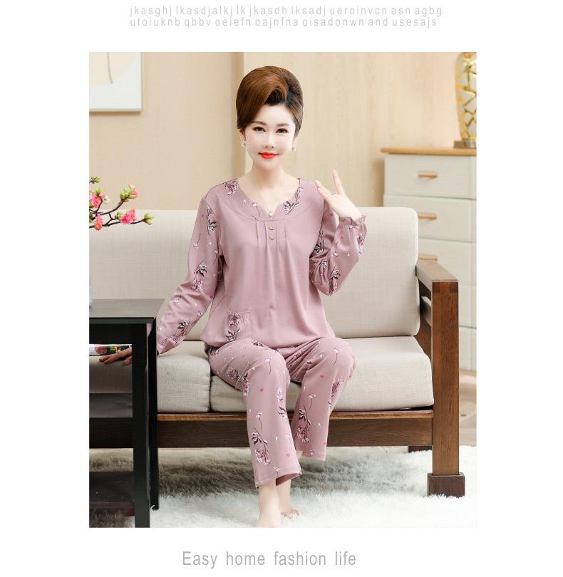 Pijama Nuevo Primavera y Otoño Manga Larga Traje para Suegra de Mediana Edad y Anciana Delgado Ropa para el Hogar para Usar Afuera