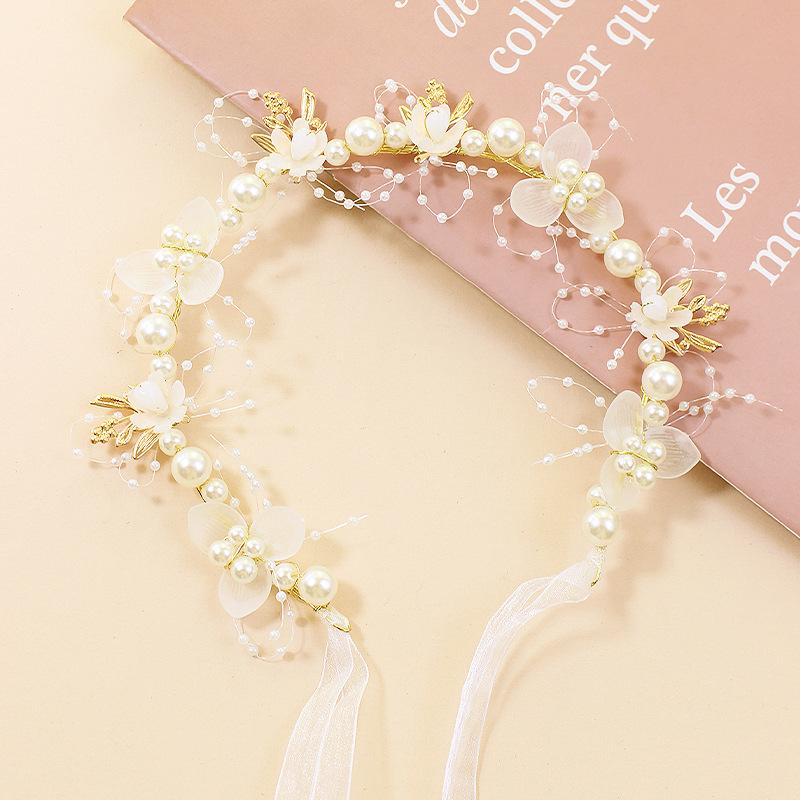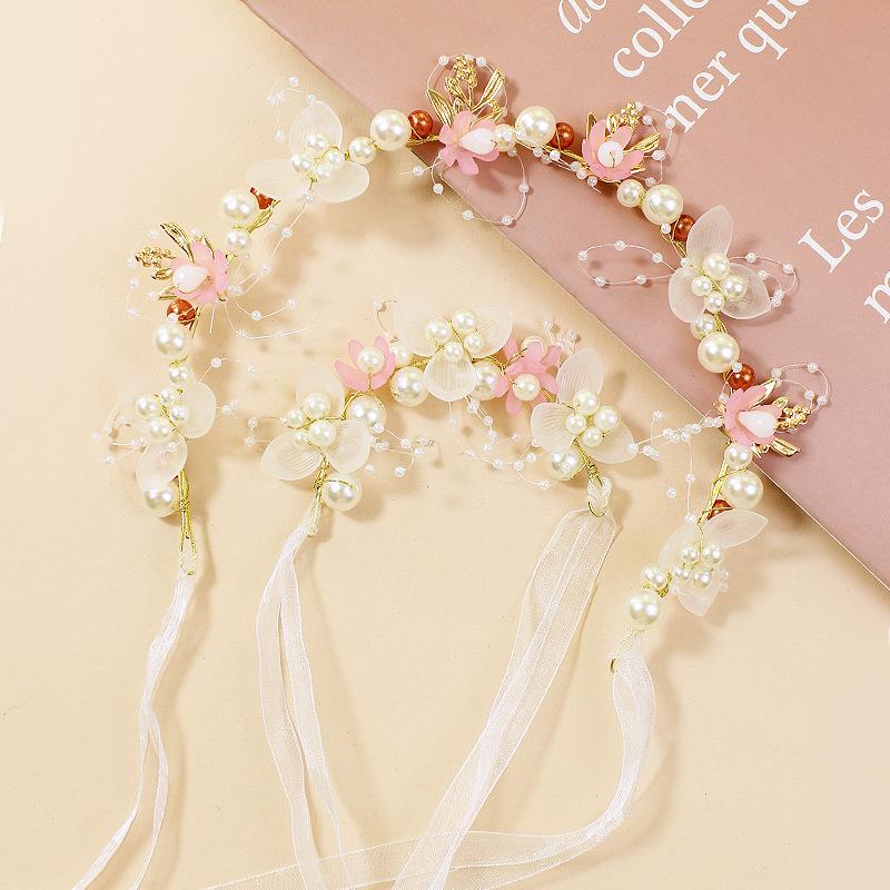 Diadema de perlas con guirnalda para niña, corona de princesa, tocado de estilo coreano, accesorios para niña de las flores, diadema Mori