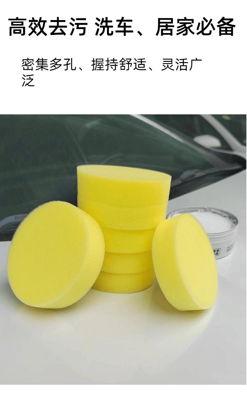 Esponja de limpieza amarilla de alta densidad para el cuidado del cuero, limpieza del automóvil, belleza, pulido y encerado, esponja redonda disponible.
